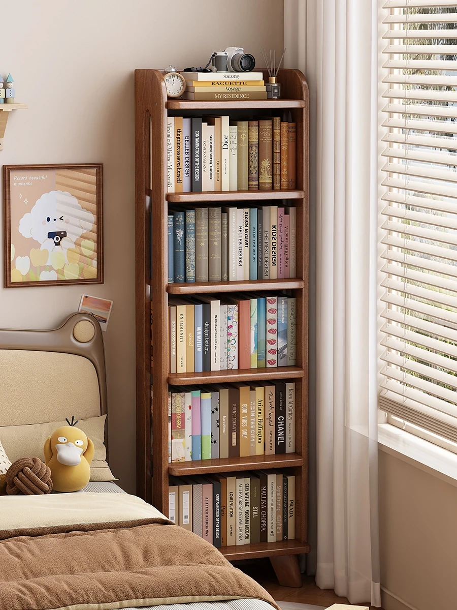 【魅力の木製】コーナー本棚 床置き収納ラック 壁の隙間活用!リビング・ベッドルームにもぴったり 木製スリムキャビネット 省スペース設計で小物収納に最適!