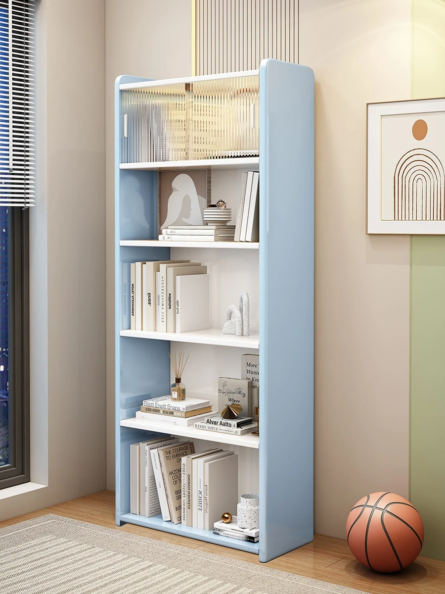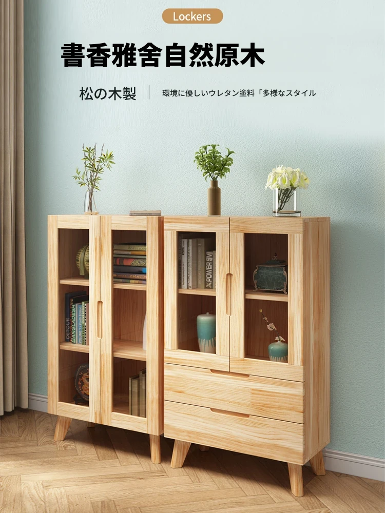 北欧風おしゃれ子供用本棚:簡単設置&省スペース!落ち着いたナチュラルウッド仕上げ、ガラス扉付きでリビングの魅力をアップ!収納力抜群のサイドキャビネットとしても活躍。