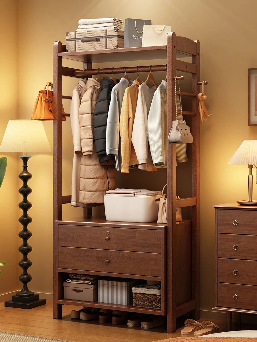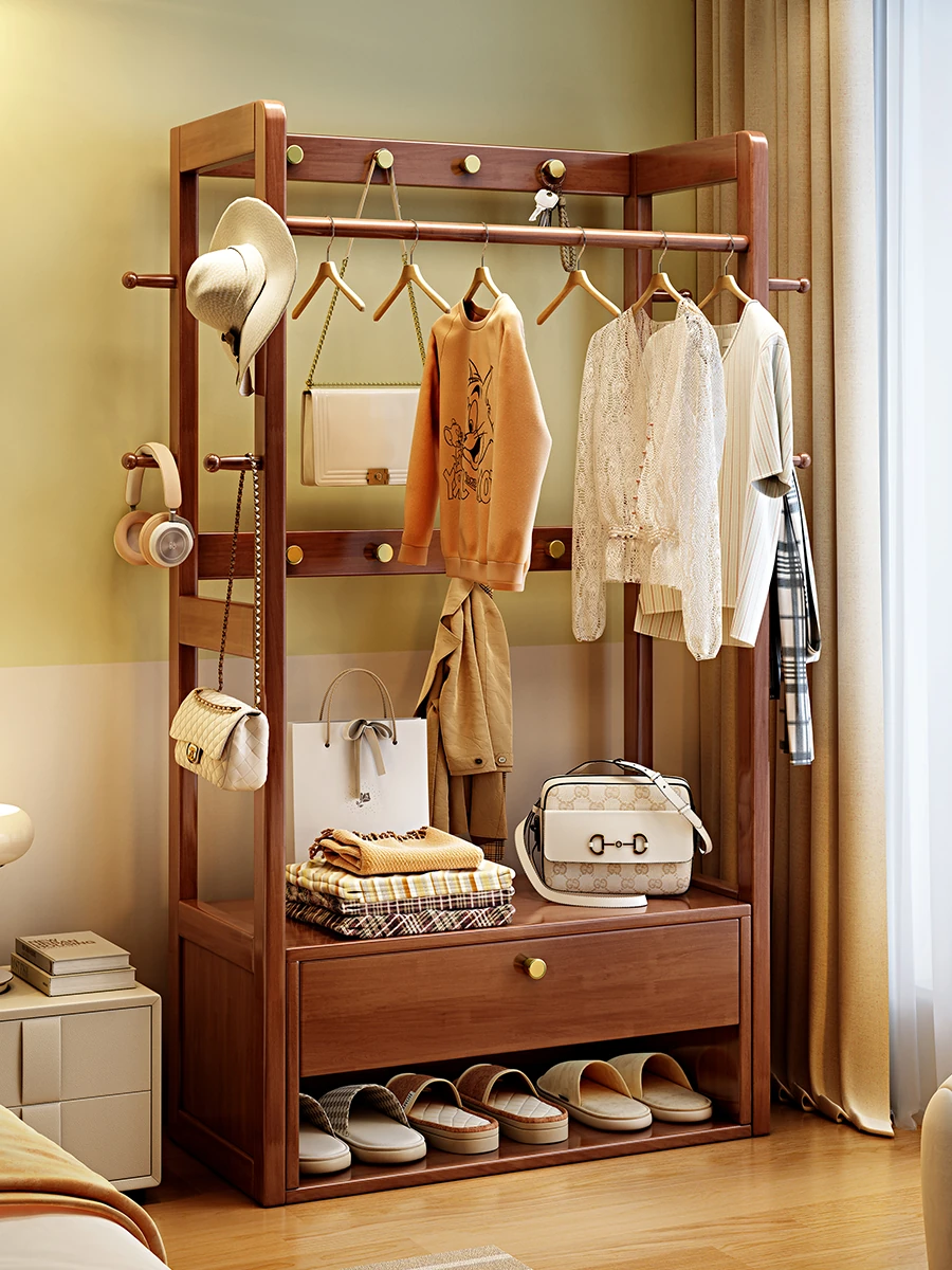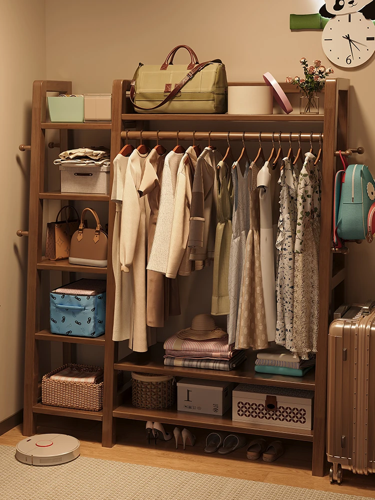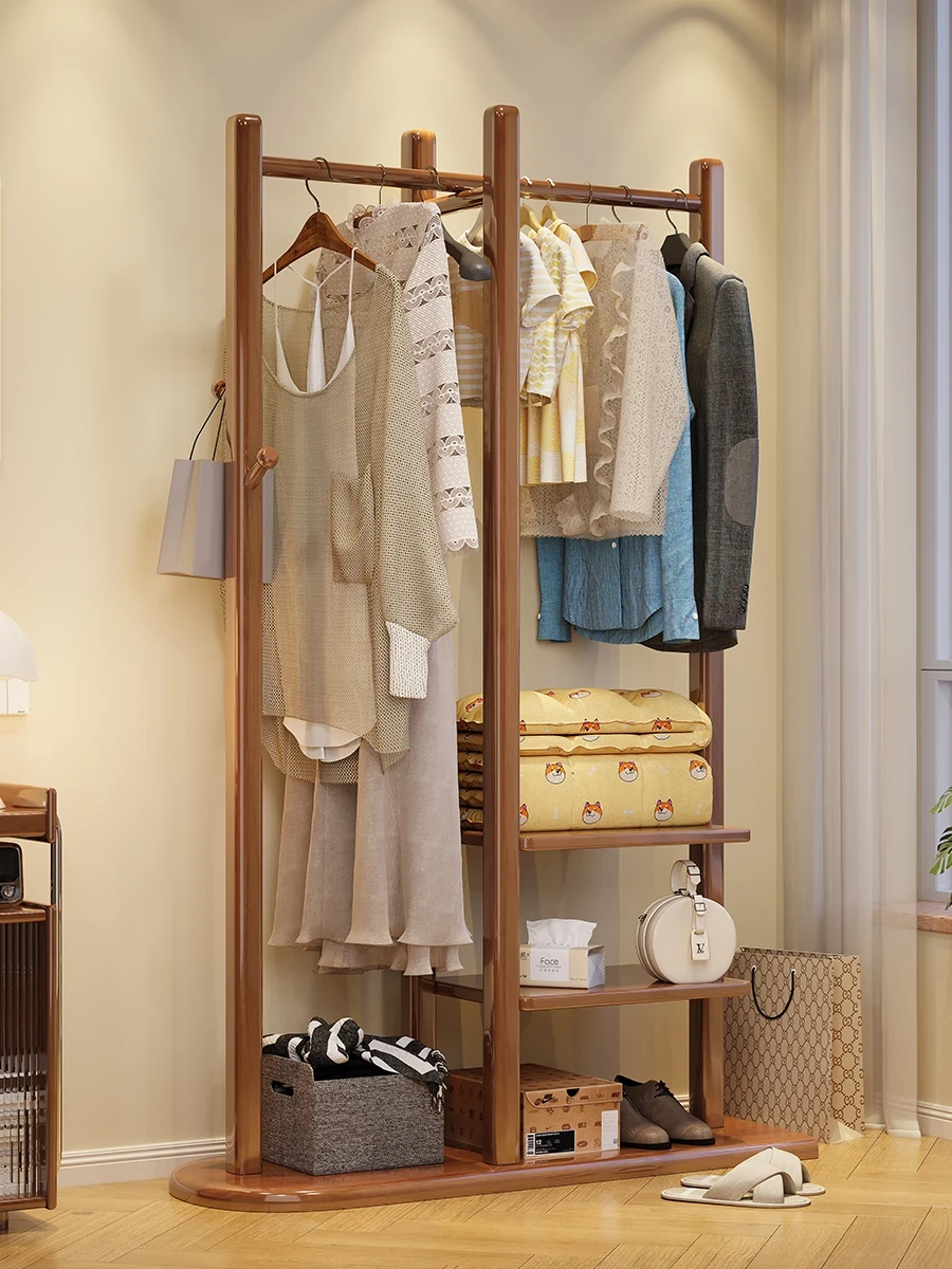 【省空间・洋溢现代新中式风情】天然木制創意ハンガーラック・おしゃれで実用的なリビング&ベッドルーム用衣類収納スタンド