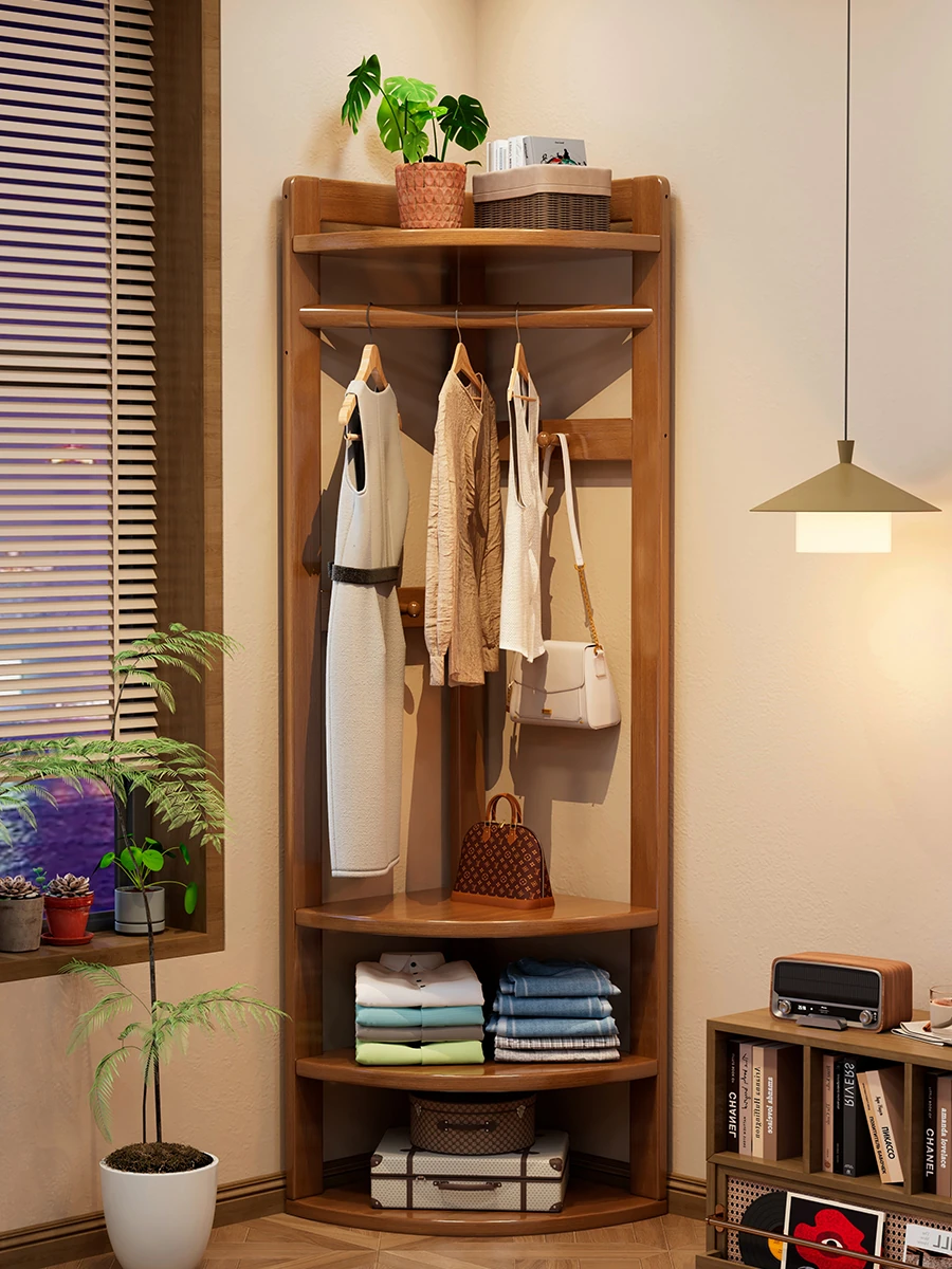省空间!おしゃれなコーナー用天然木製ハンガーラック