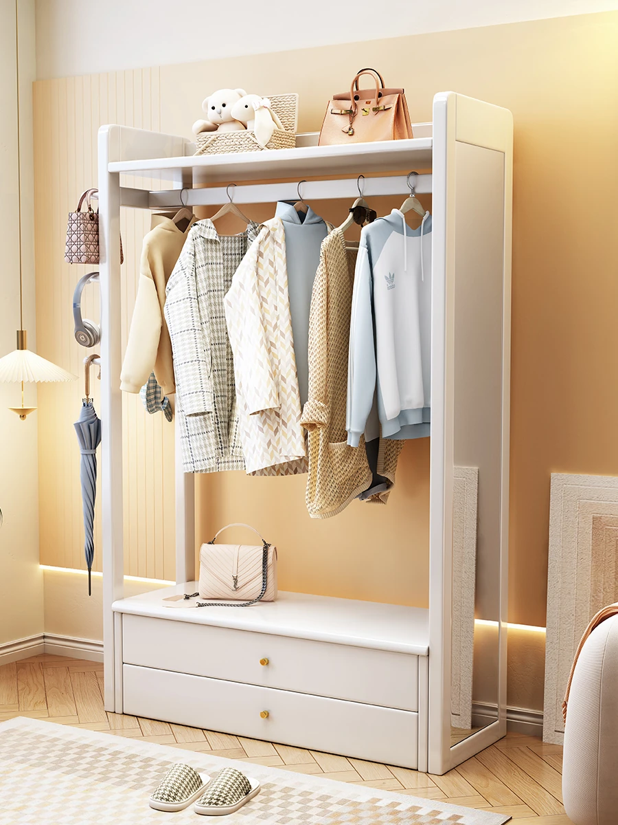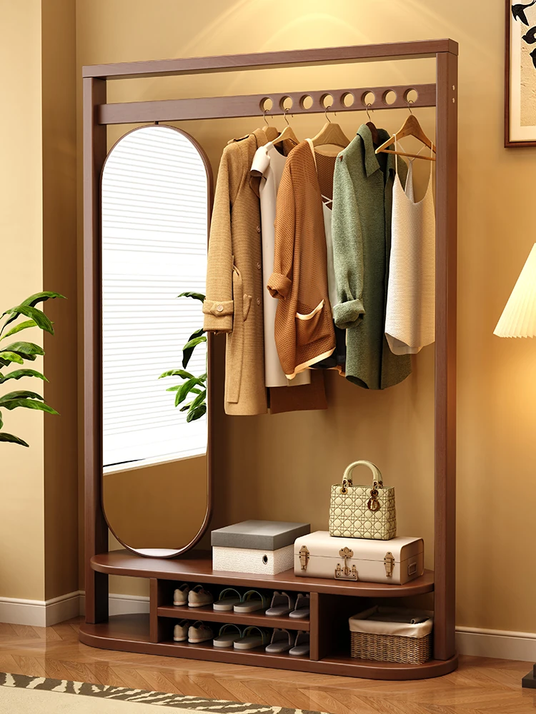 家庭用天然木製チェスト付き多機能ハンガーラック!鏡付きで完璧なコーディネートが可能、リビングや寝室の収納もおしゃれに解決!コンパクトでシンプルなデザインがどんなインテリアにもマッチ。베스트チョイス!