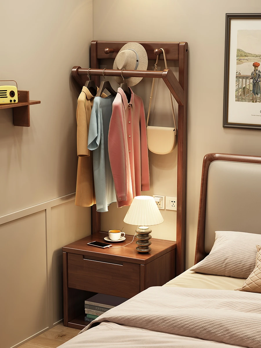 ナチュラル木製ハンガースタンド - シンプルな衣類収納ラック、ベッドサイド用一体型省スペースデザイン!小型ルームの角に最適な実用的な収納ソリューション。