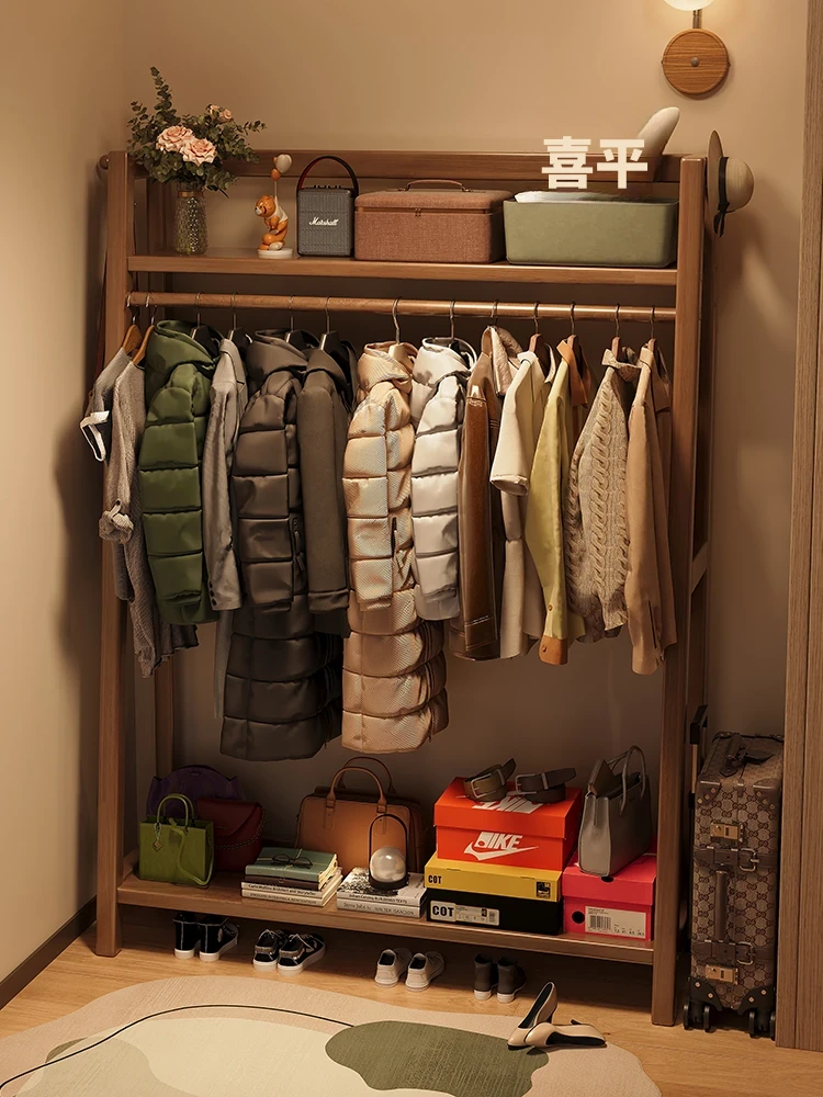 天然木制室内衣帽架:完美收纳省空间,卧室的理想选择!