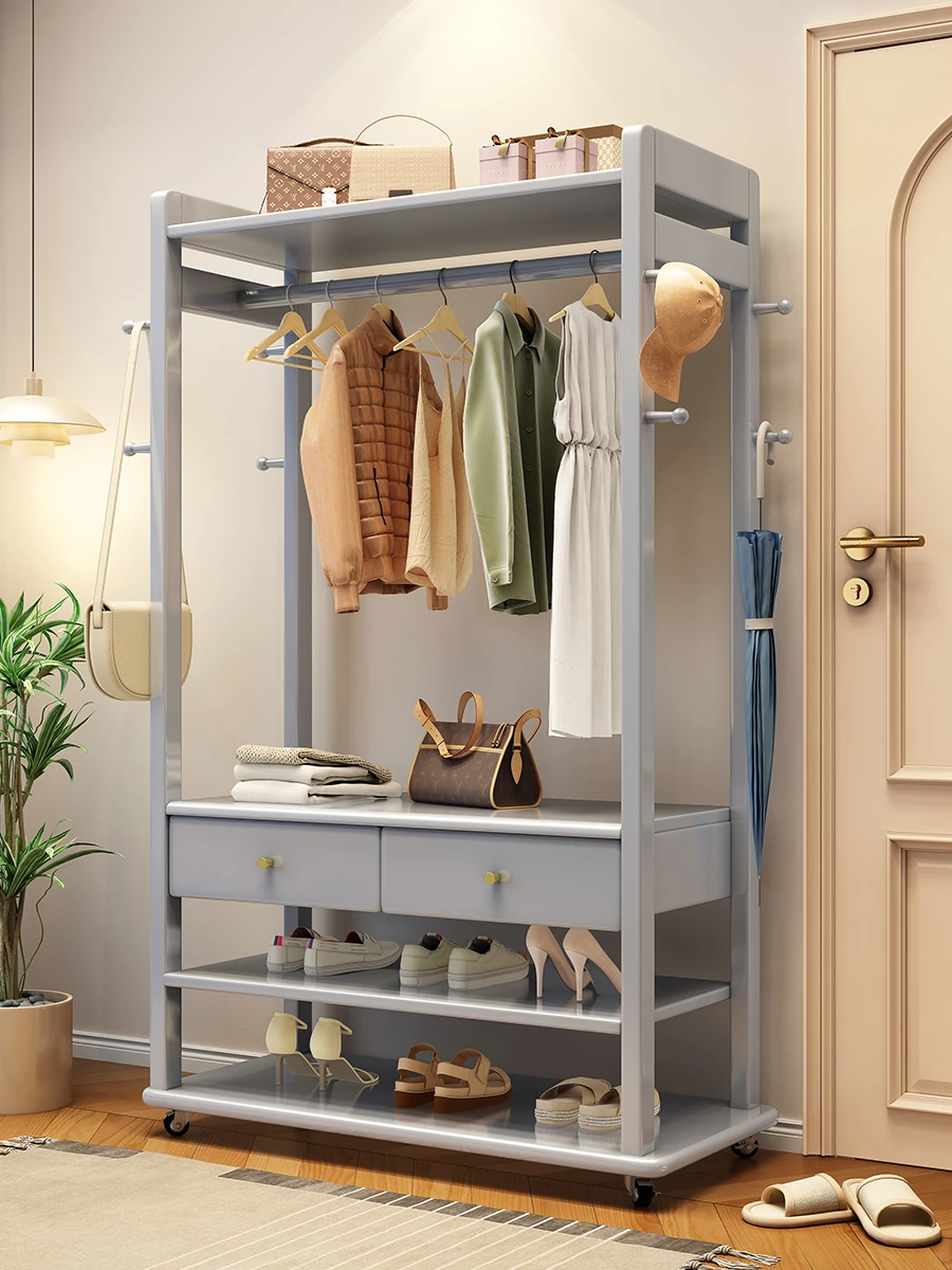 多機能!モダンなリビングルームにぴったりな移動可能な天然木製ハンガーラック - シンプルでおしゃれなデザイン、寝室や玄関にも最適な収納ラック