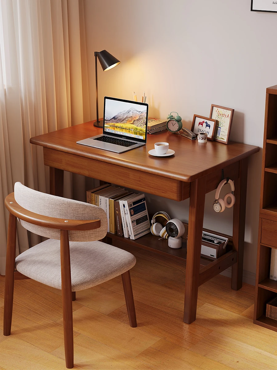 【多機能】学生・家庭用・天然木製デスク - 寝室にもぴったり!