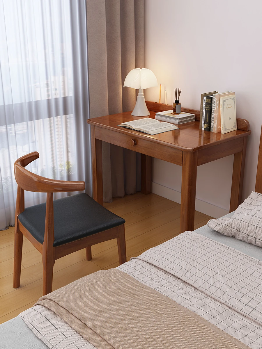 内容:天然木材で作られた多機能コンパクトデスク - シンプルさと美しさが融合したドレッサーテーブル、限られたスペースに最適な書斎机、寝室やベッドサイドでのPC作業や勉強にぴったり!