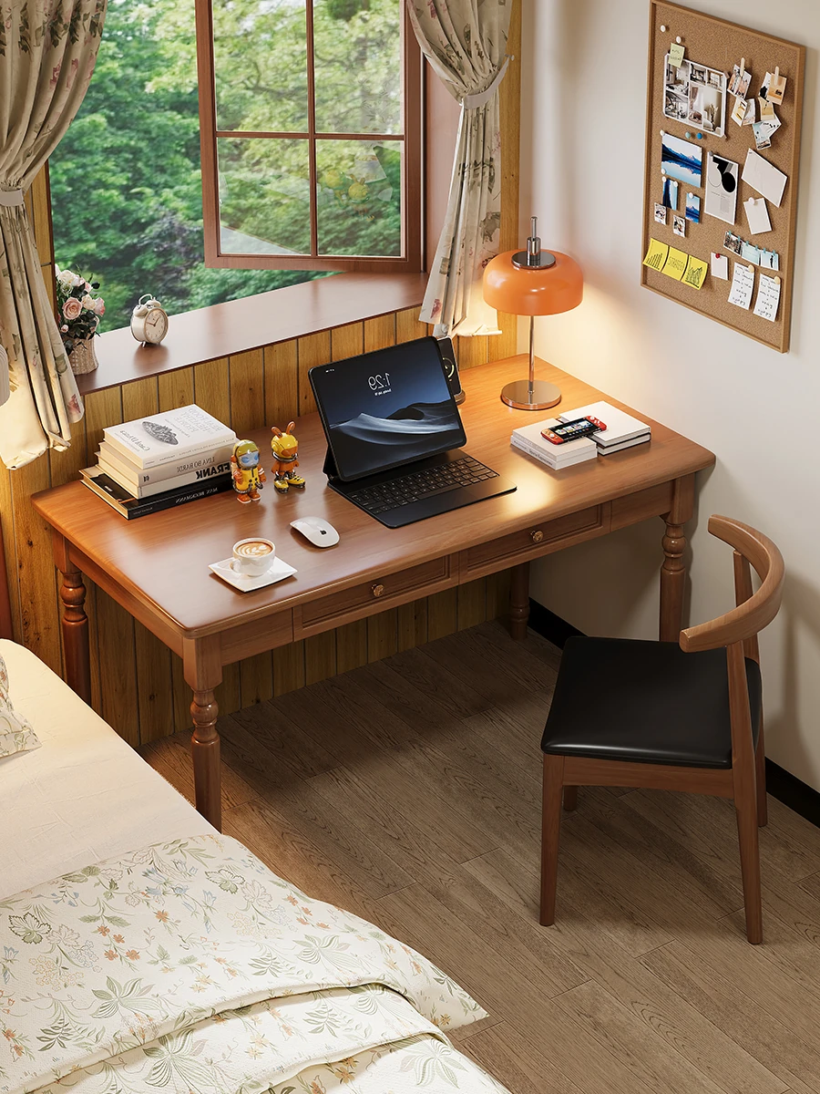 Vintage American Wooden Desk - Retro French Style for Bedroom & Home Office, Ideal for Small Spaces, Simple & Elegant Study Table, Perfect for Learning and Work.