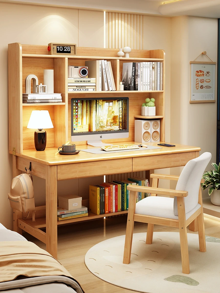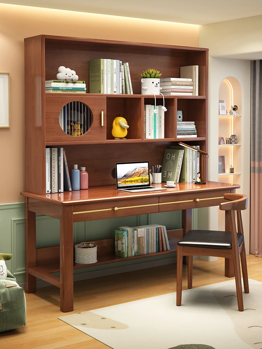 "Multifunctional Solid Wood Desk and Bookshelf Combo - Stylish Computer Office Table for Home, Bedroom, or Children's Study Room – Perfect for Students and Writing"