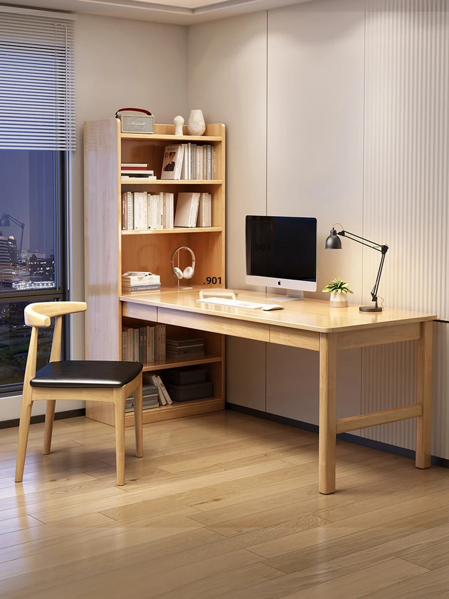 Solid Wood Integrated Desk and Bookshelf - Minimalist Modern Computer Office Desk, Perfect for Home and Kids' Study, Ideal for Elementary School Students' Writing and Learning Needs
