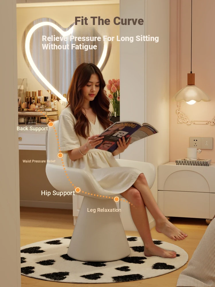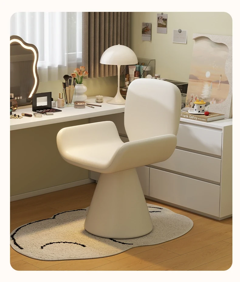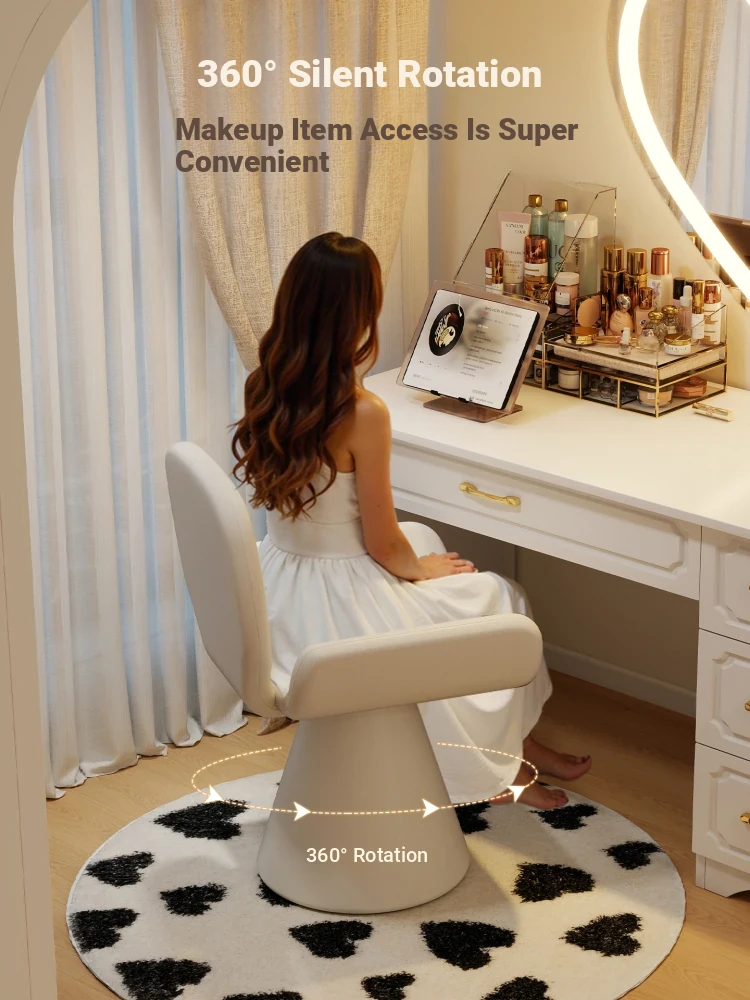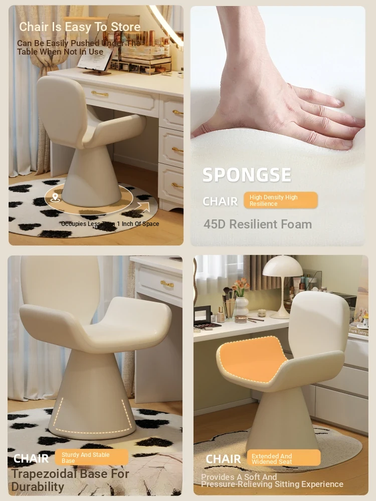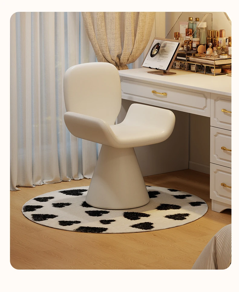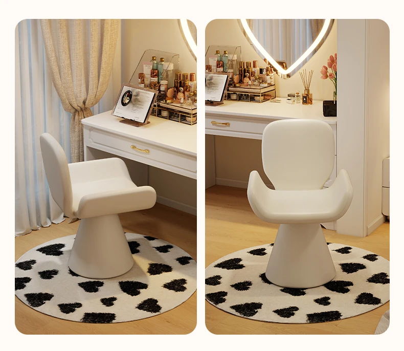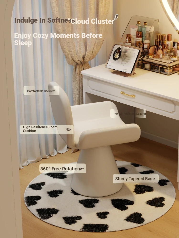 Elegant Cream Vanity Stool for Women - Rotating Makeup Chair Perfect for Bedrooms and Nail Art, Combining Luxury with Modern Design