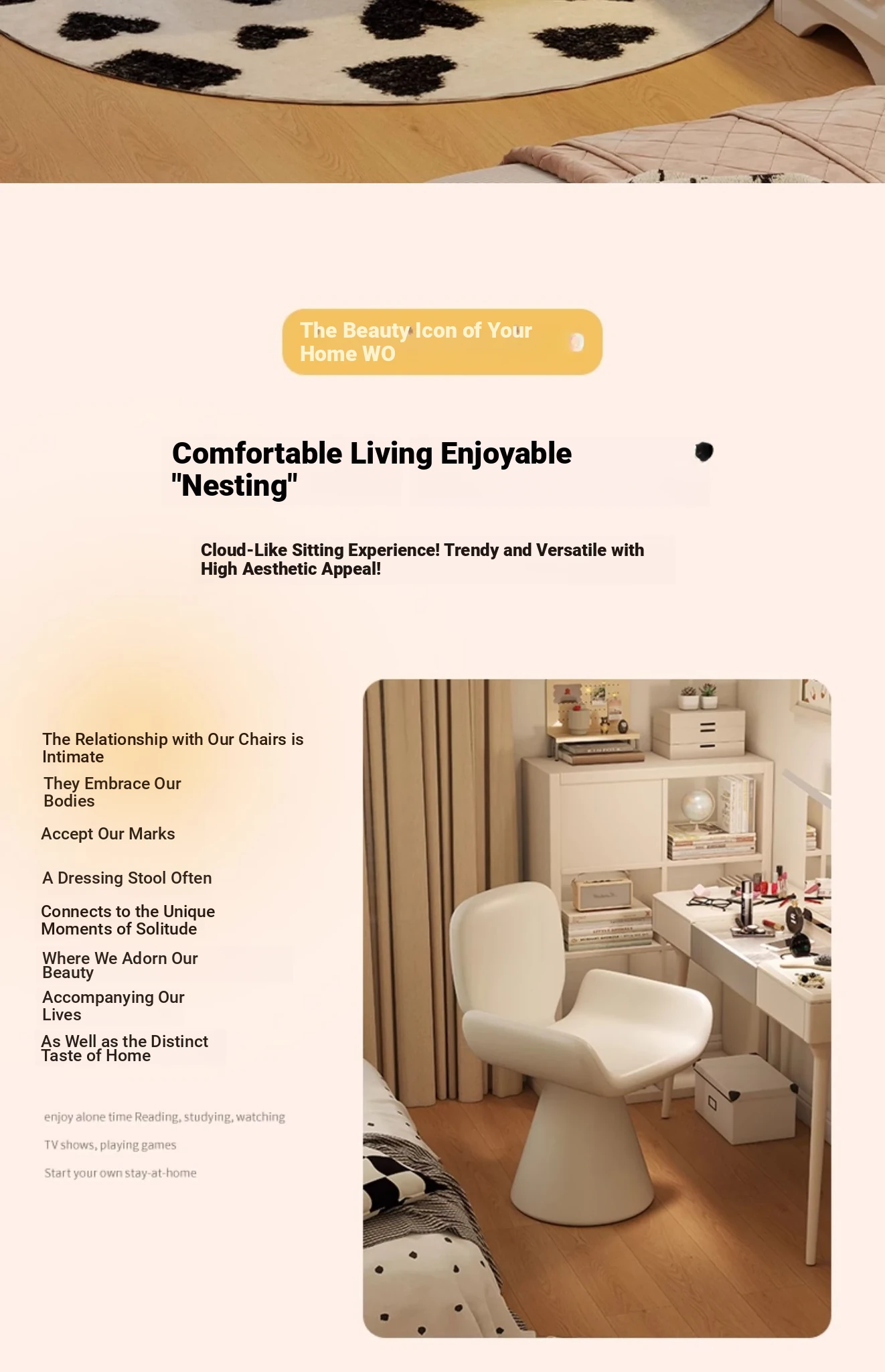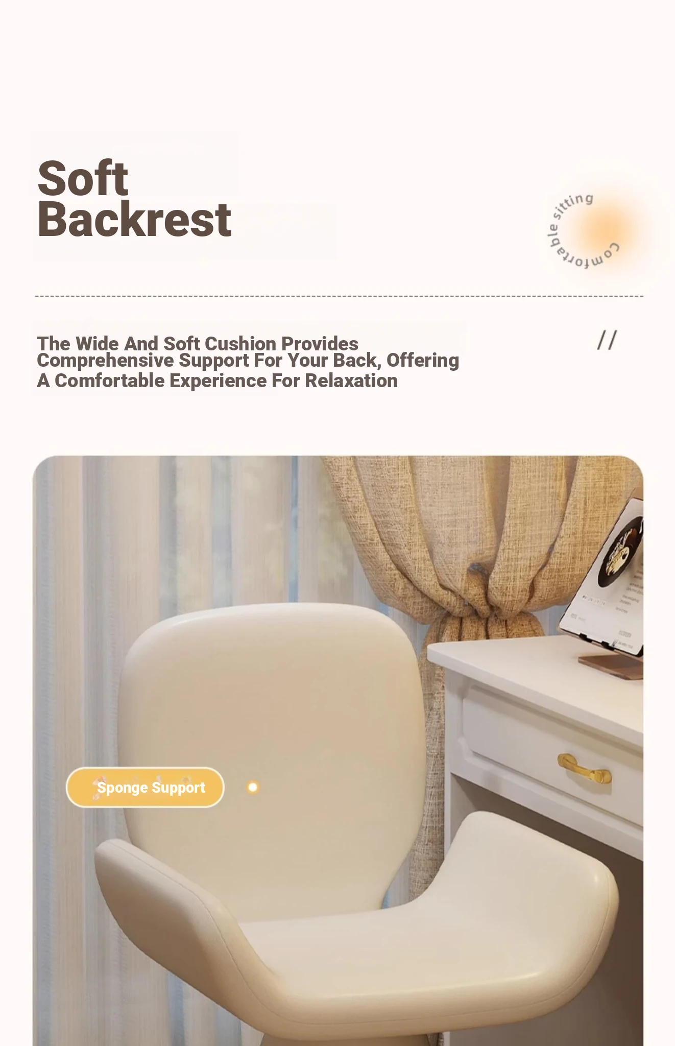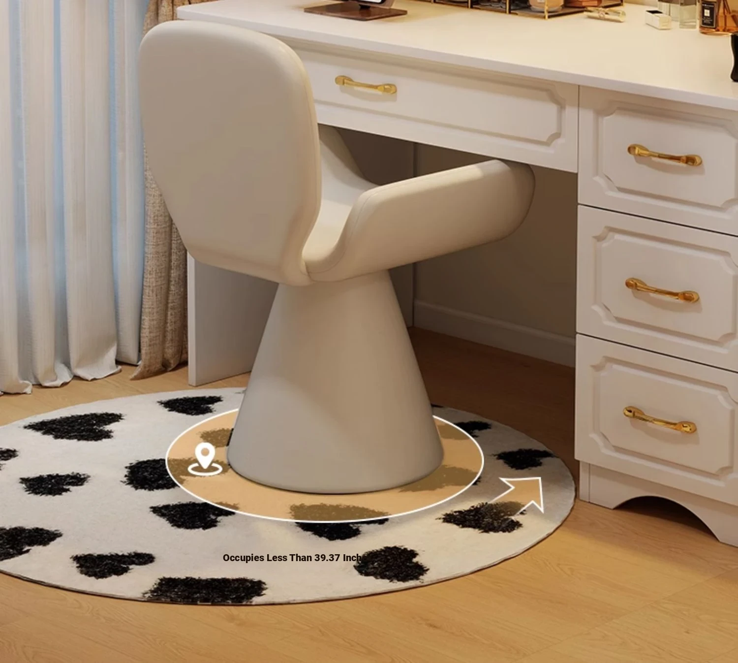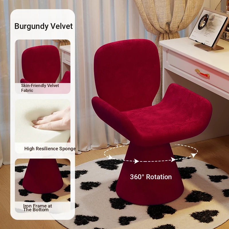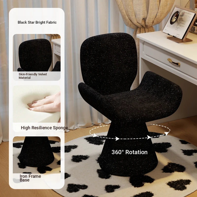 Elegant Cream Vanity Stool for Women - Rotating Makeup Chair Perfect for Bedrooms and Nail Art, Combining Luxury with Modern Design