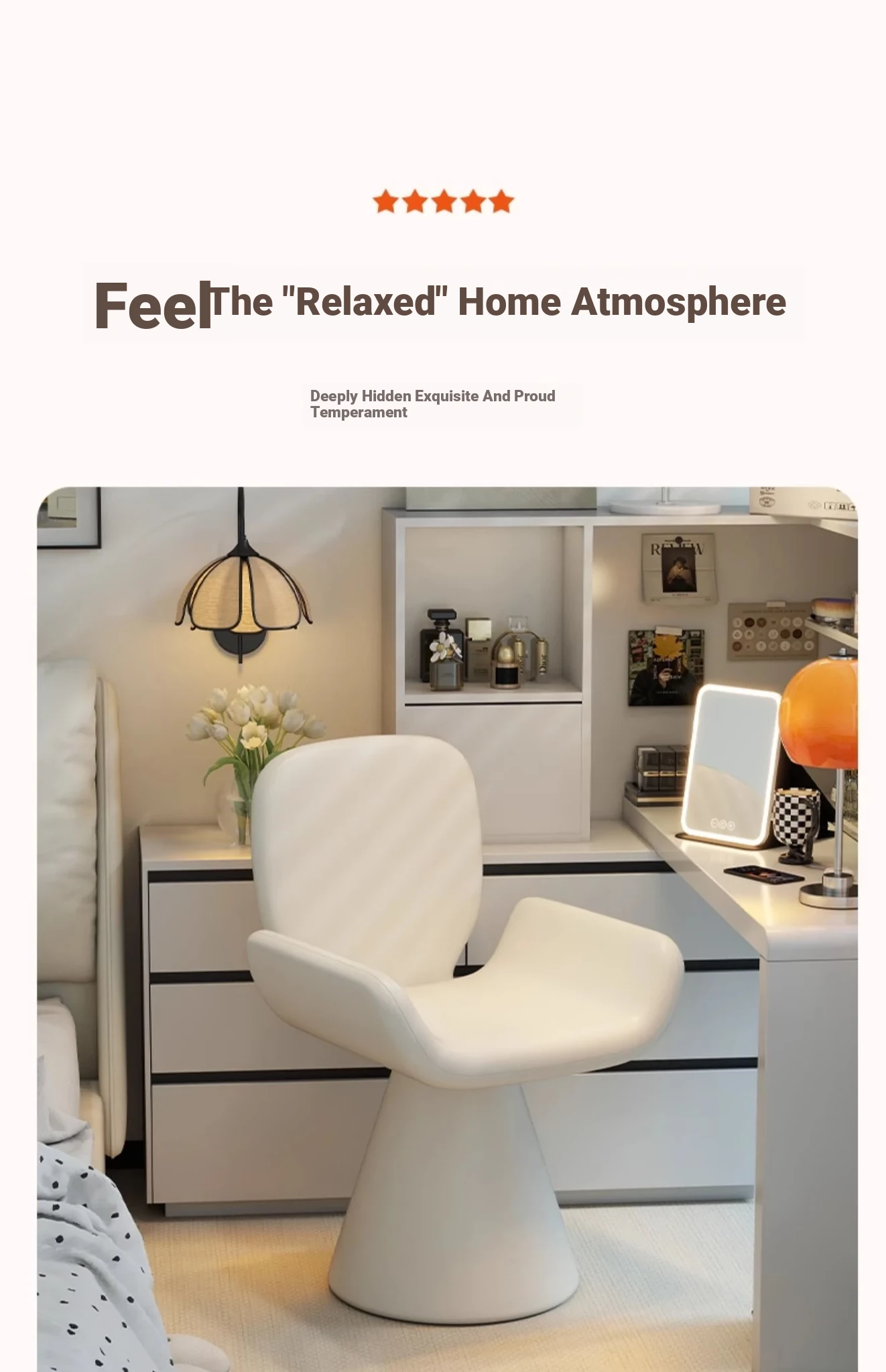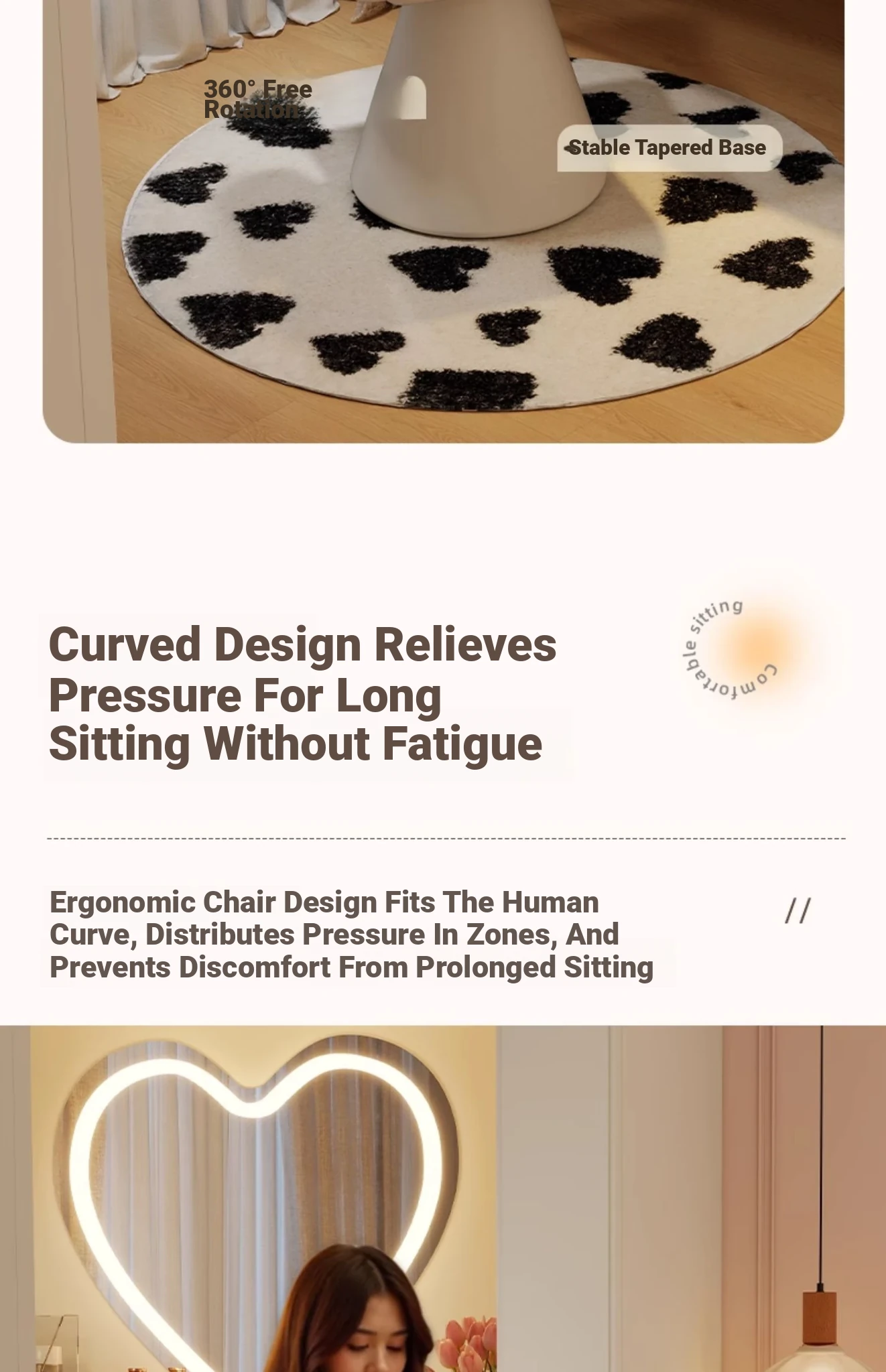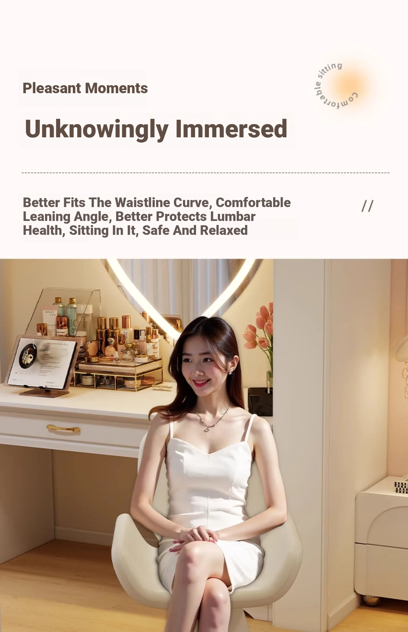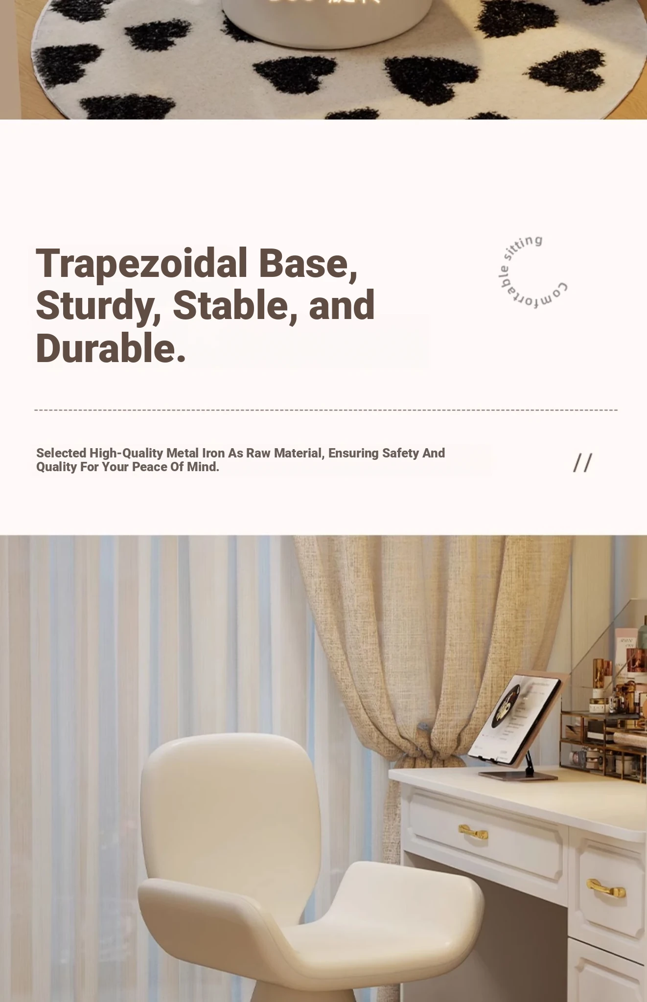 Elegant Cream Vanity Stool for Women - Rotating Makeup Chair Perfect for Bedrooms and Nail Art, Combining Luxury with Modern Design