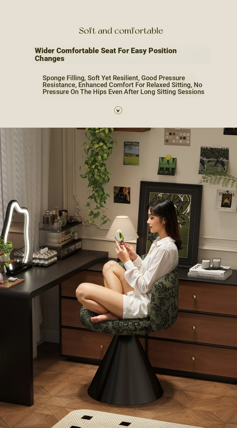 French Vintage Makeup Chair - Luxurious and Elegant Dressing Room Stool for Small Spaces, Rotatable Vanity Chair with Backrest