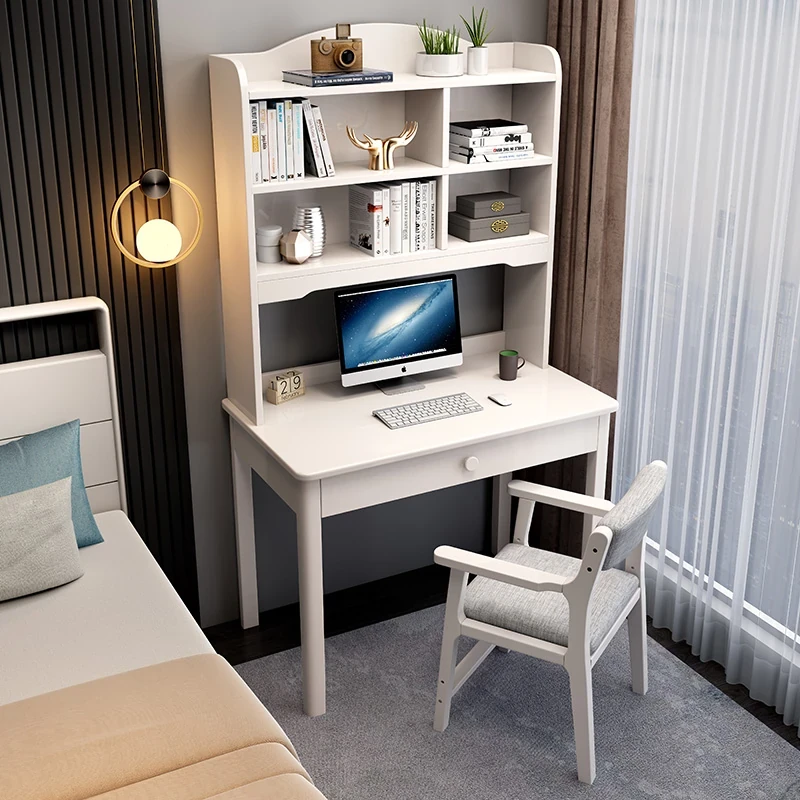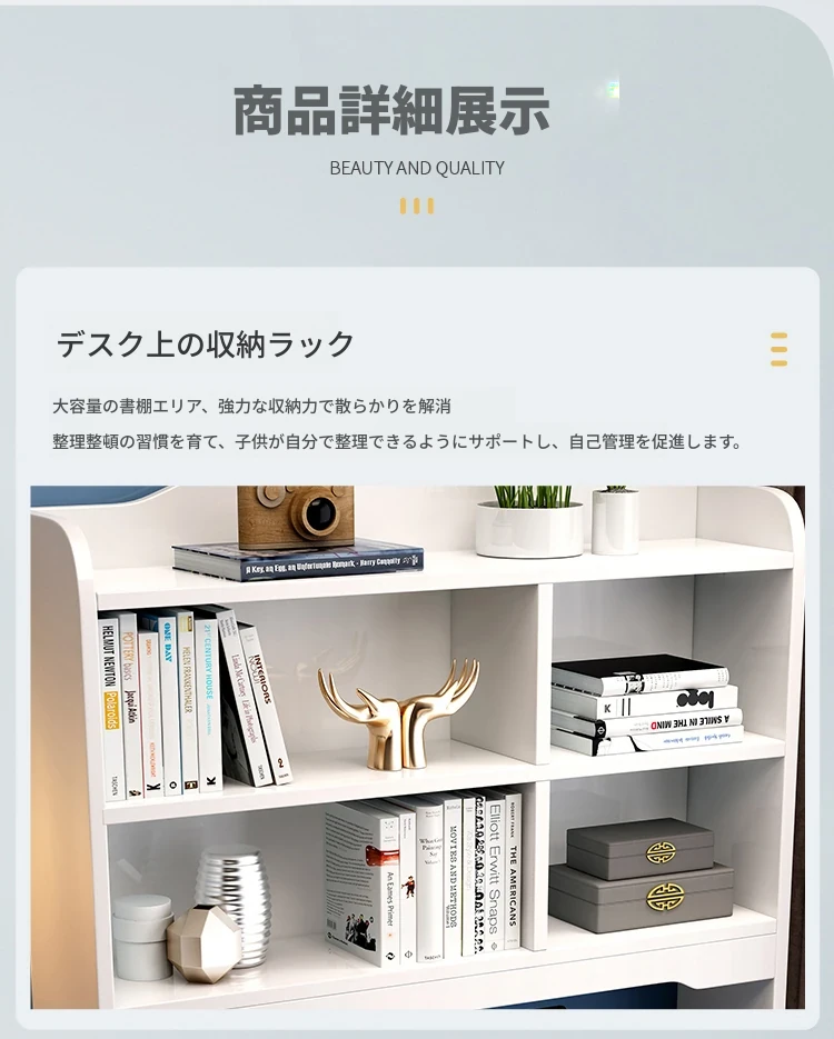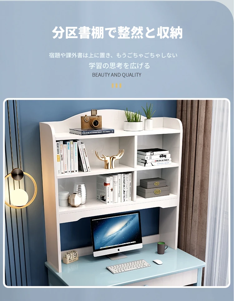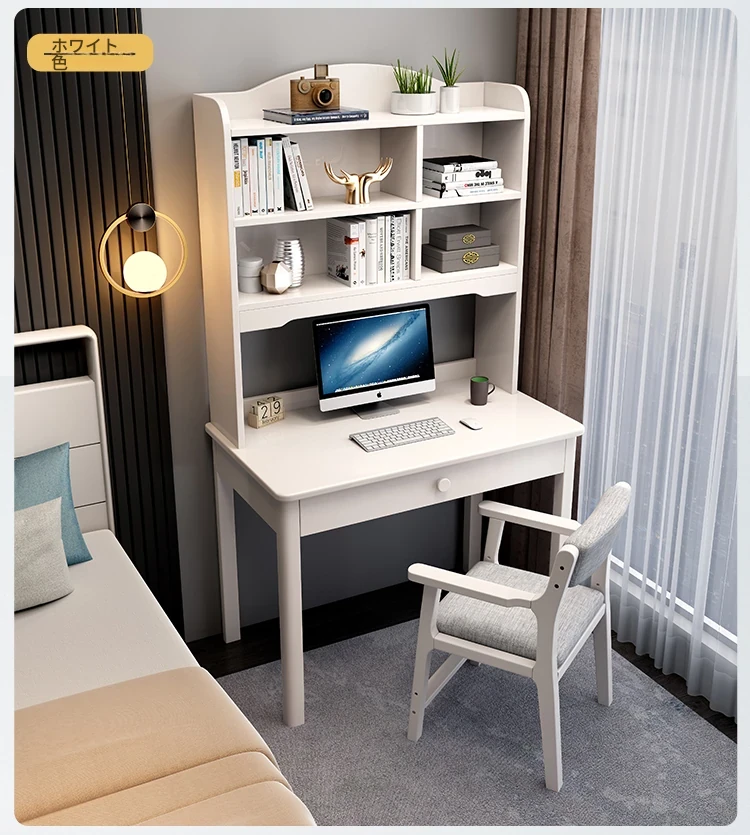 5022#デスク アイボリーホワイト 単品デスク デスクと本棚一体型デザイン