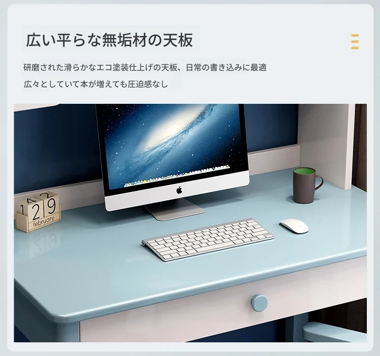 5022#ブルーとホワイトのデスク 一体型デスク&シェルフデザイン