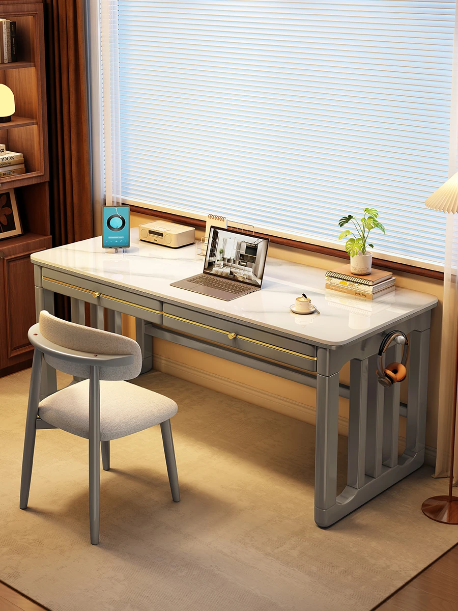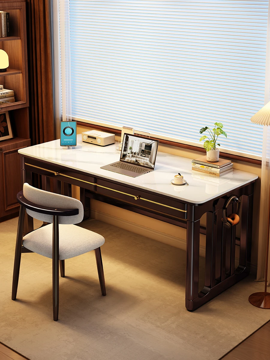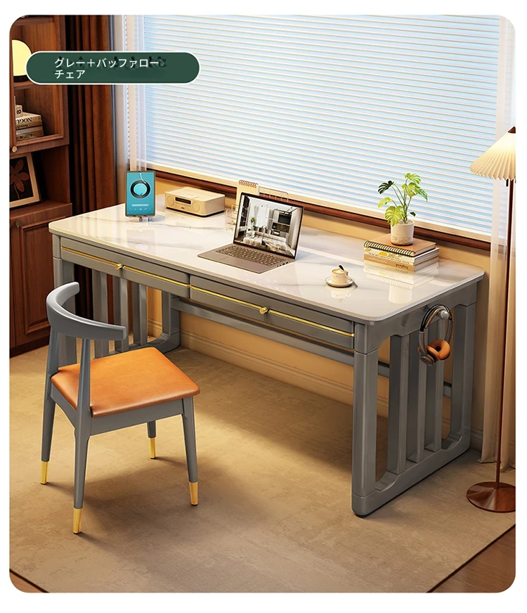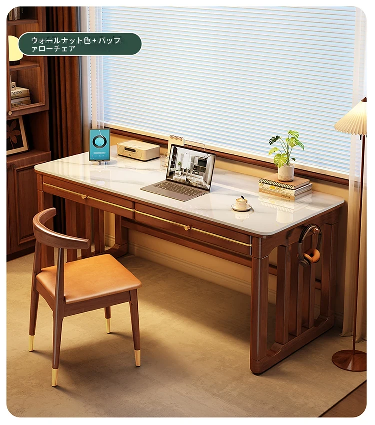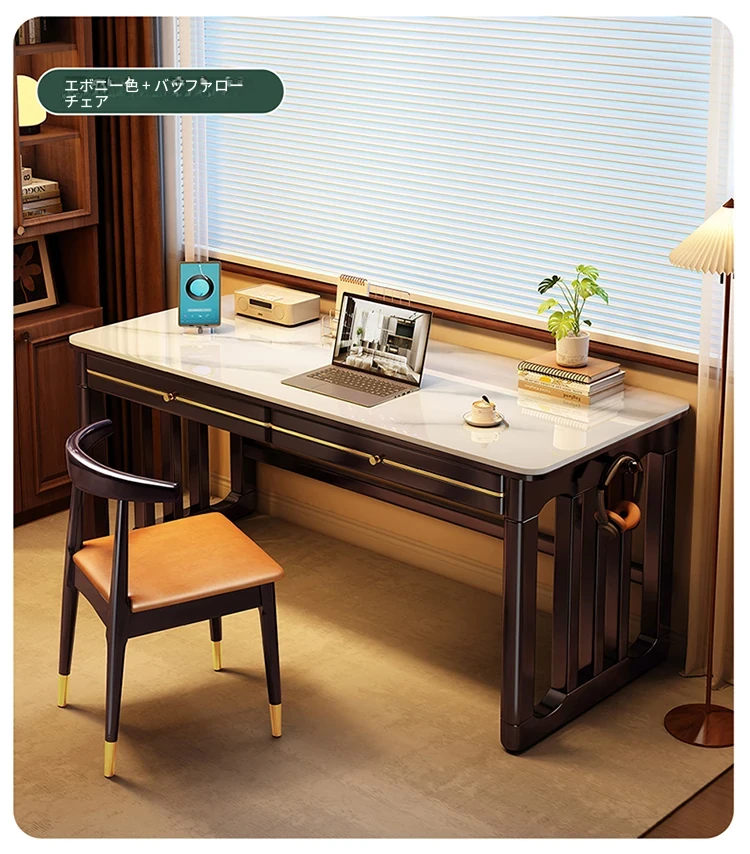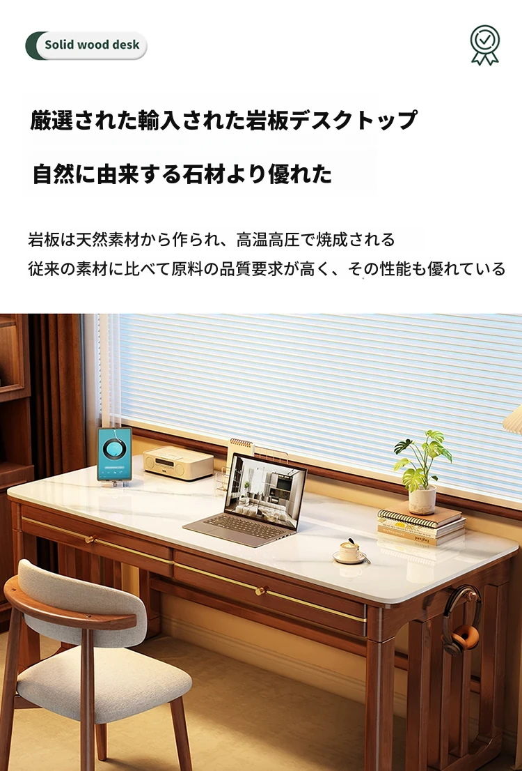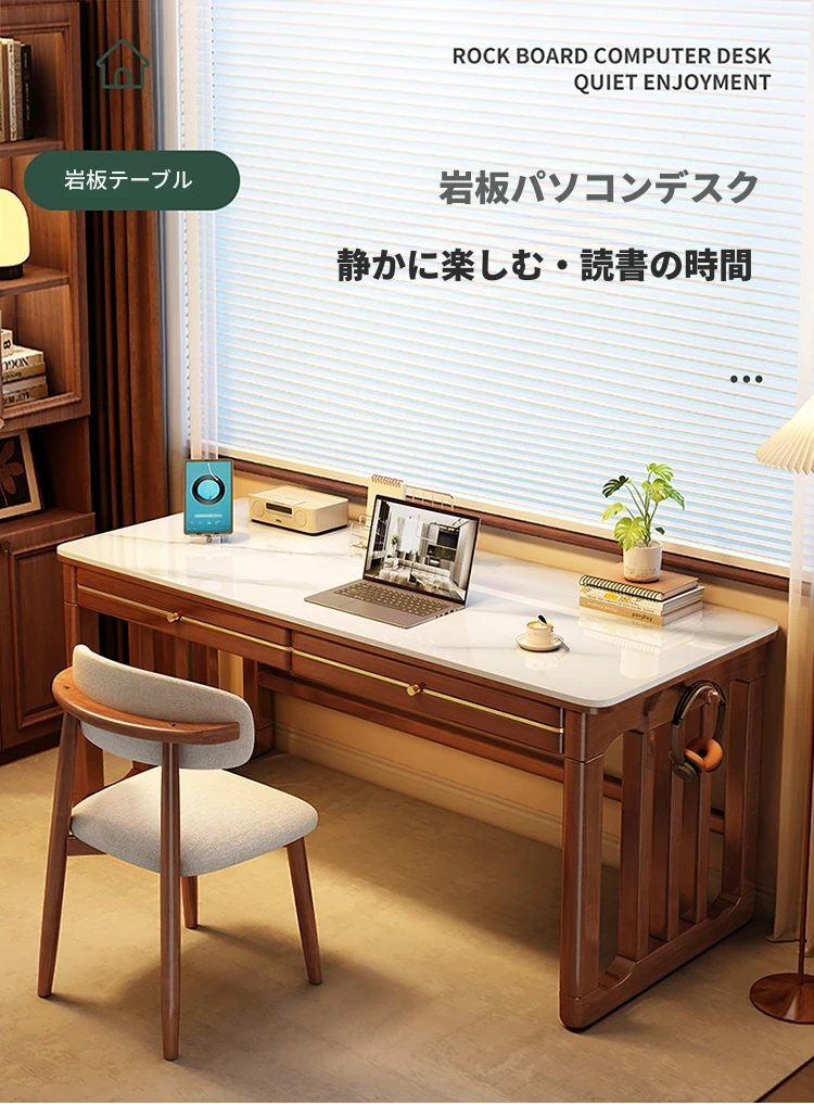 家庭用シンプル岩板無垢材デスク - コンパクトな小型書斎に最適!大人の勉強や仕事に。オフィスや寝室にもぴったりの簡易パソコンデスク!