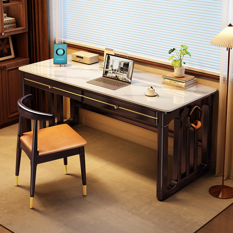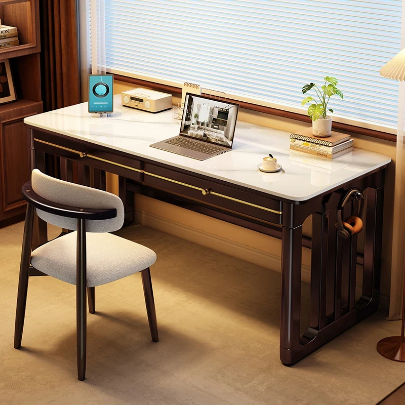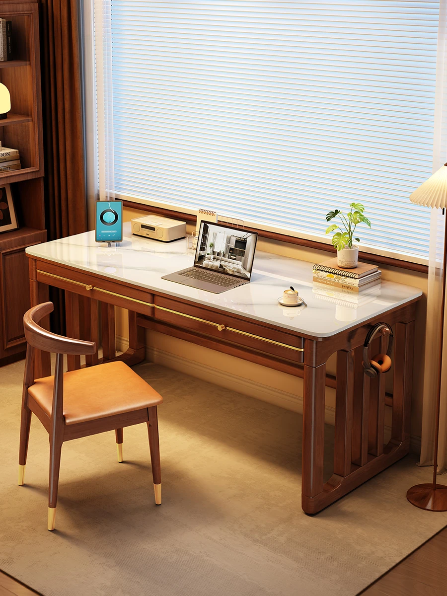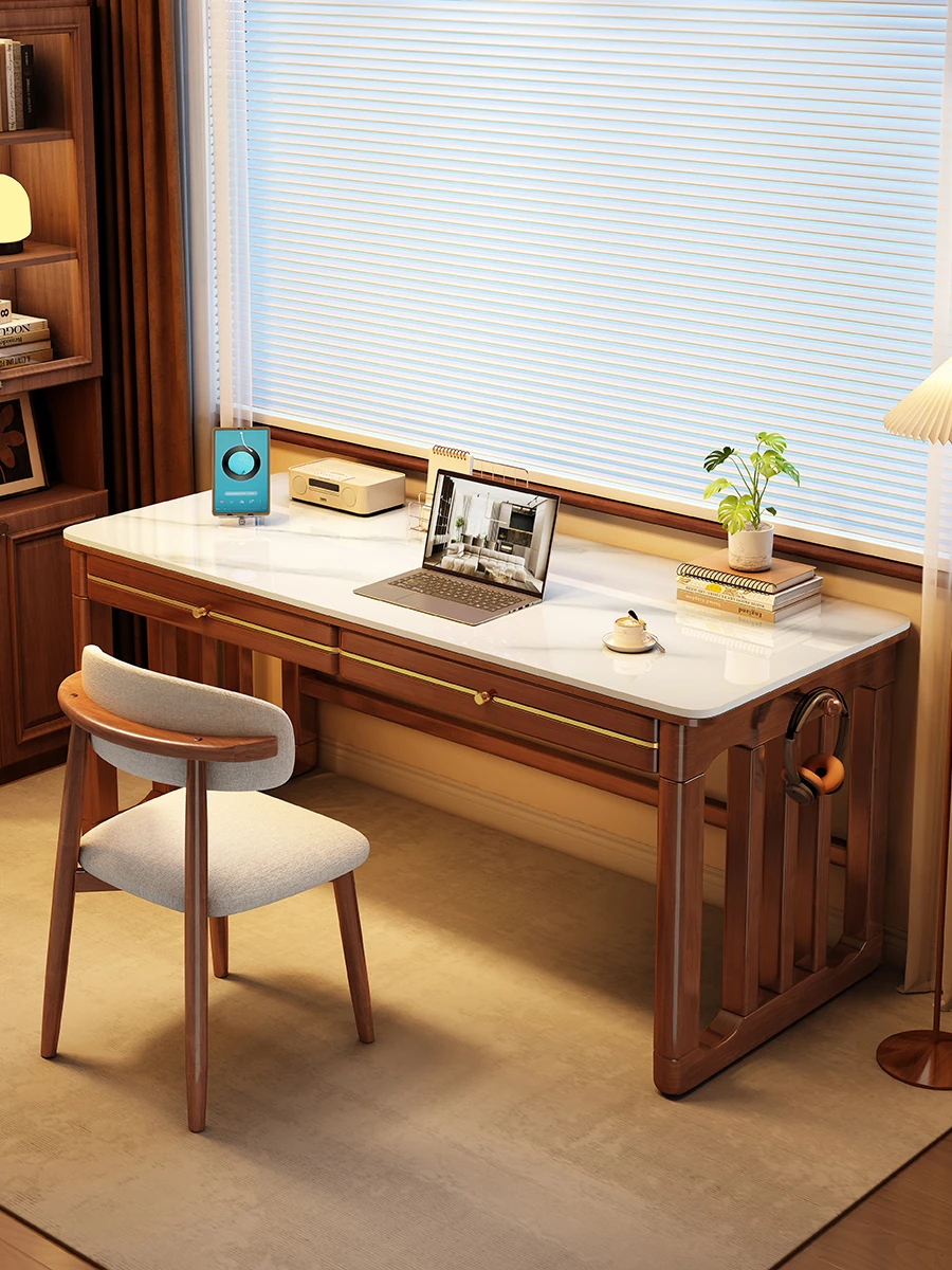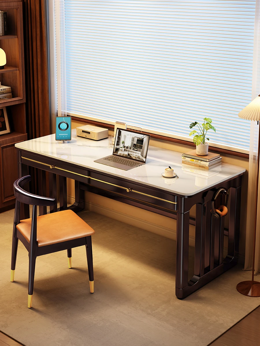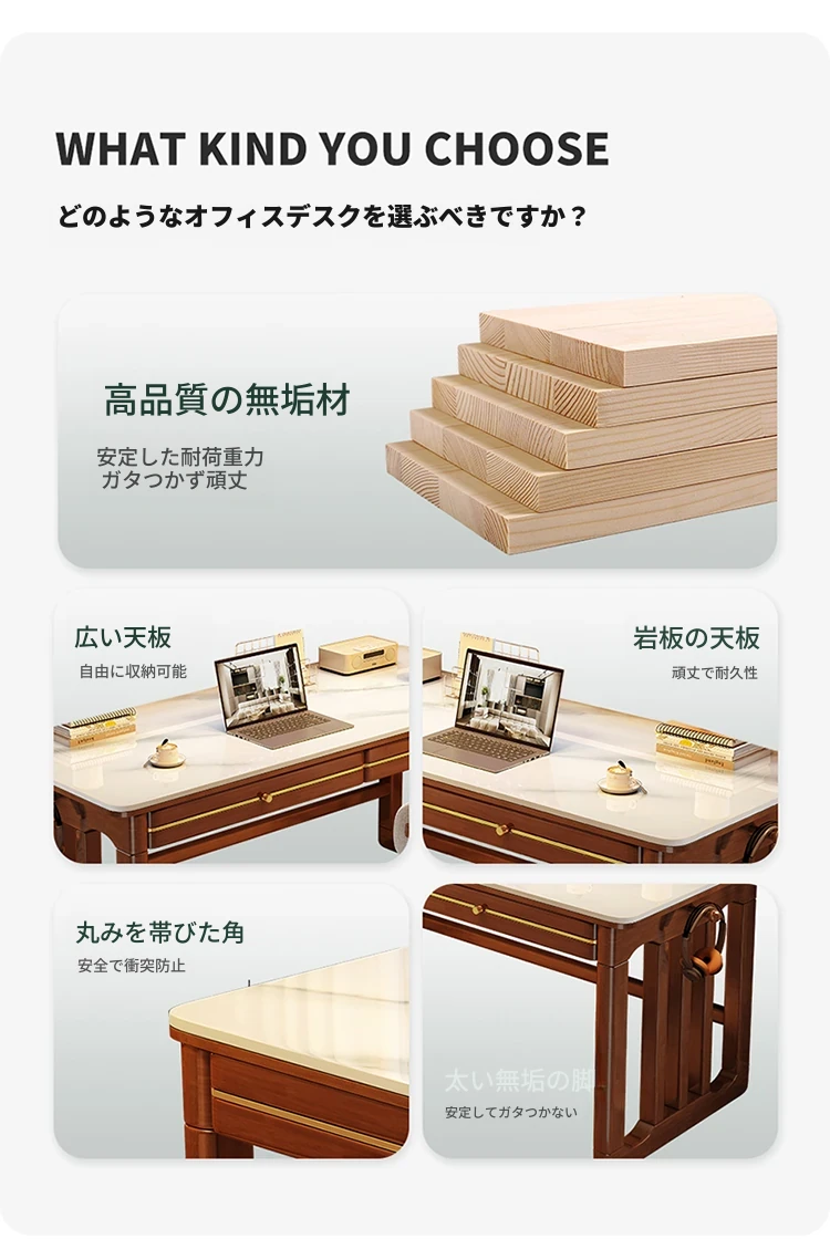 家庭用シンプル岩板無垢材デスク - コンパクトな小型書斎に最適!大人の勉強や仕事に。オフィスや寝室にもぴったりの簡易パソコンデスク!