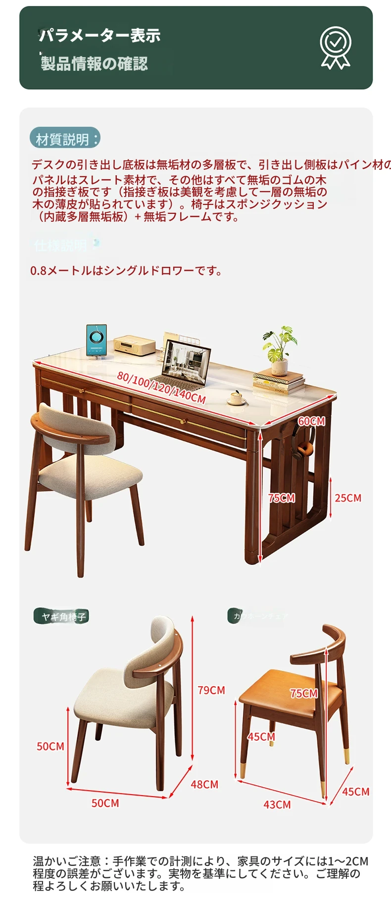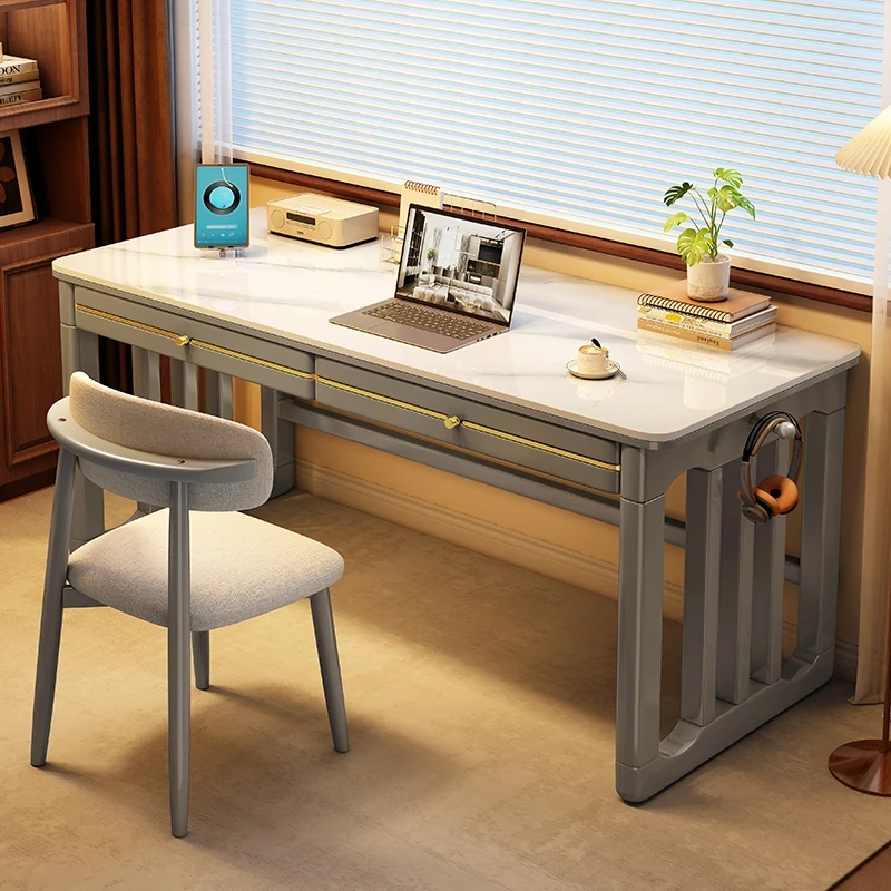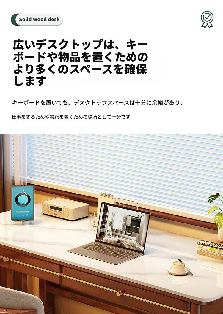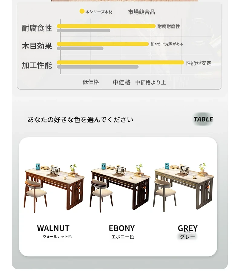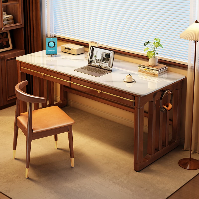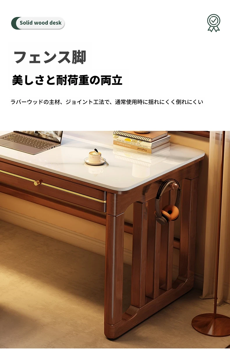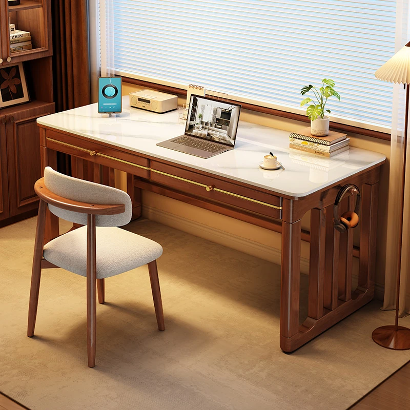 家庭用シンプル岩板無垢材デスク - コンパクトな小型書斎に最適!大人の勉強や仕事に。オフィスや寝室にもぴったりの簡易パソコンデスク!