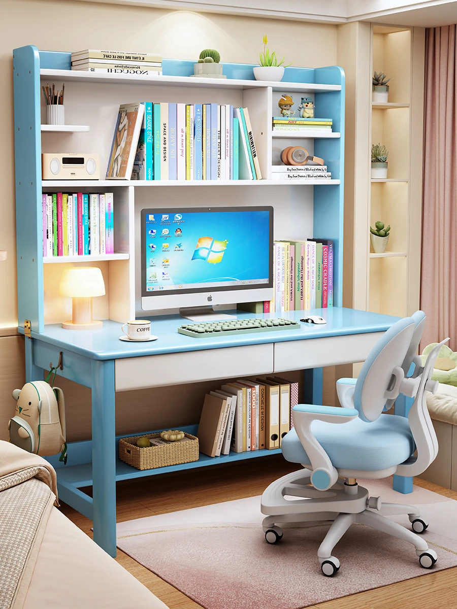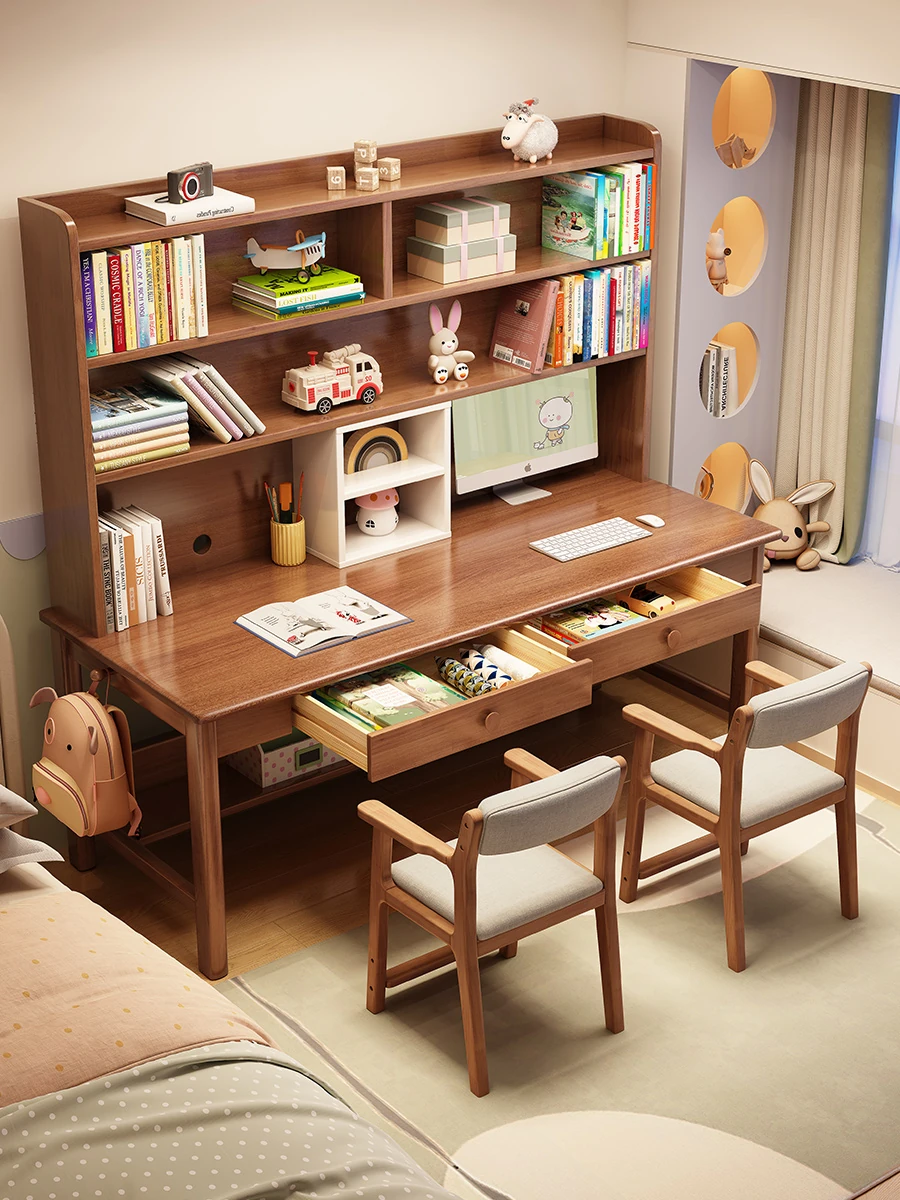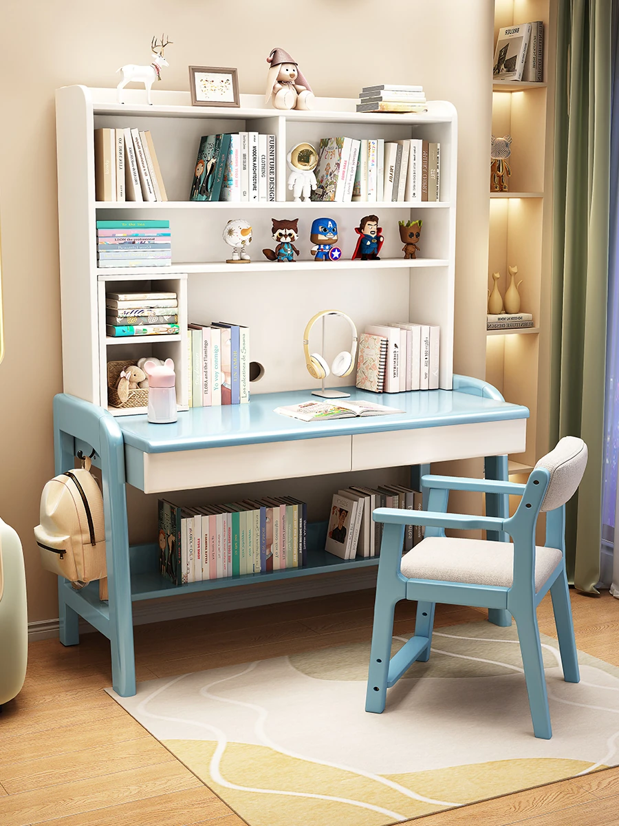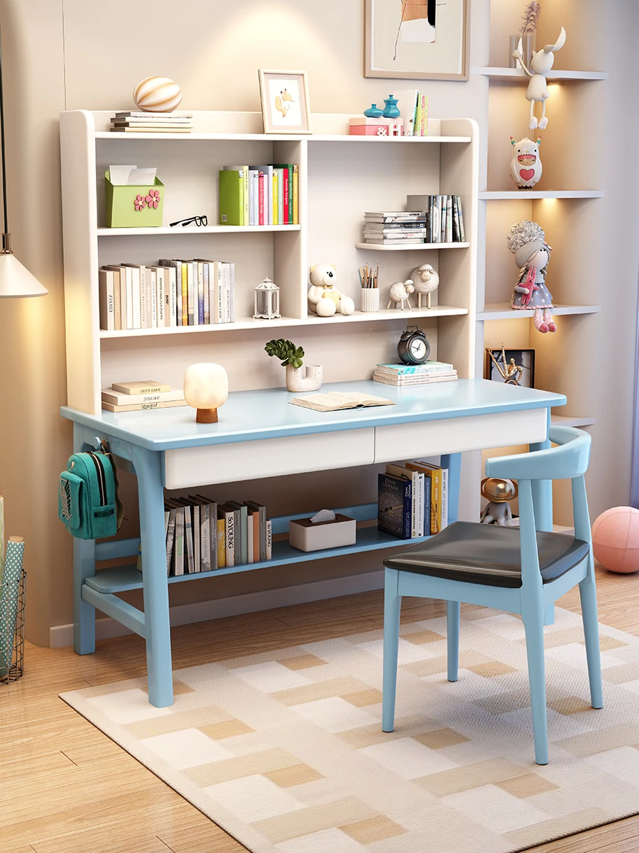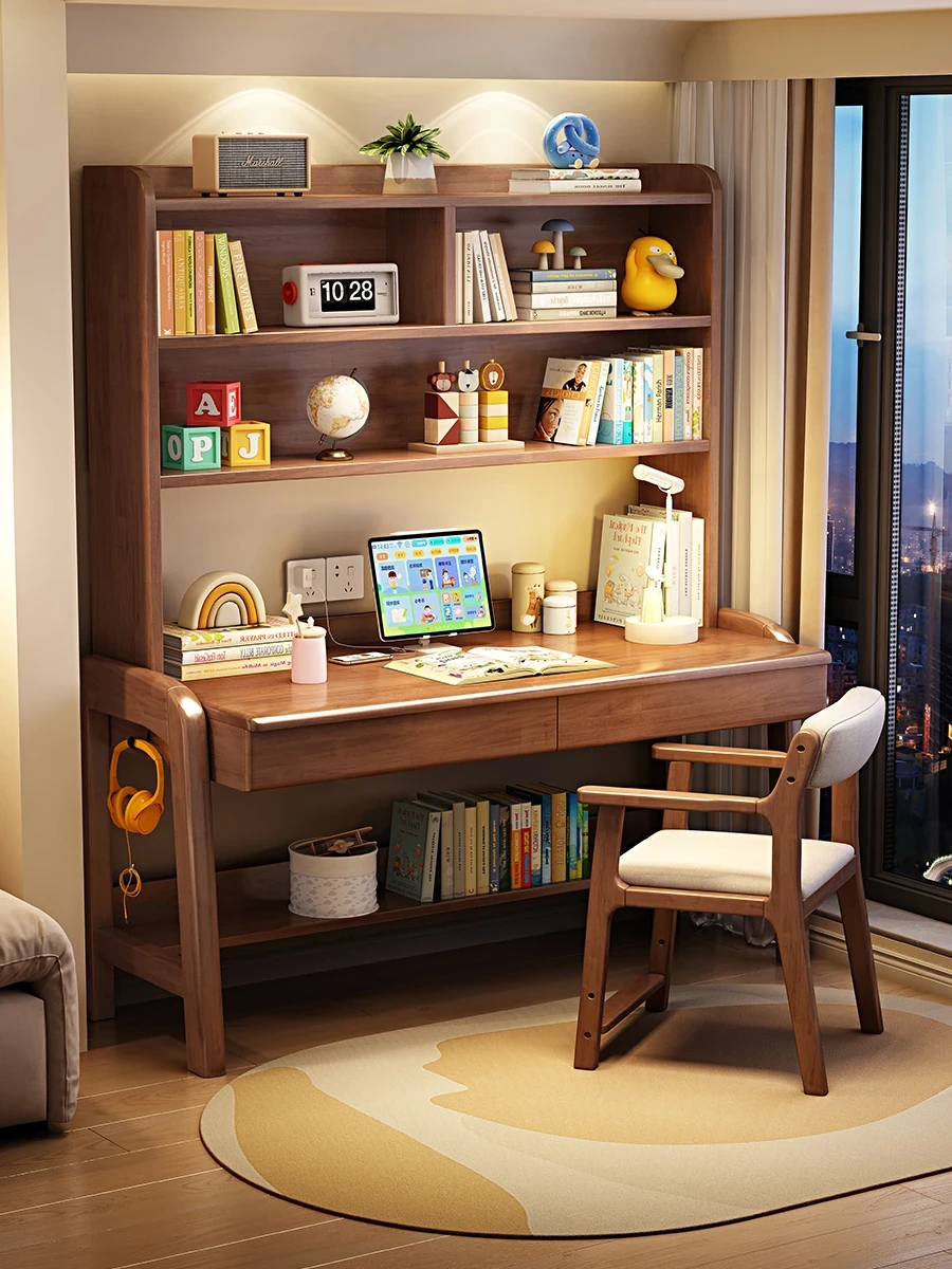 Minimalist Modern Children's Study Desk with Bookshelf – Versatile Writing Table for Home Use – Solid Wood Student Learning and Computer Desk