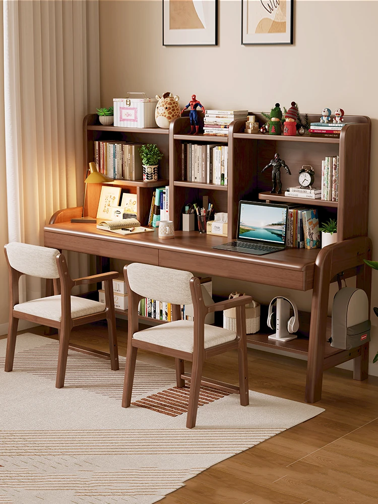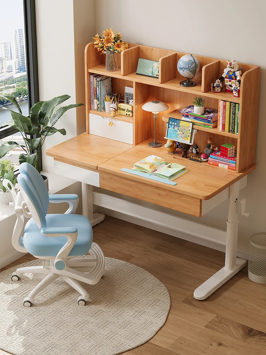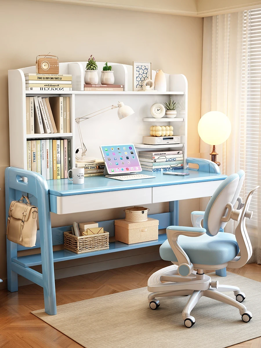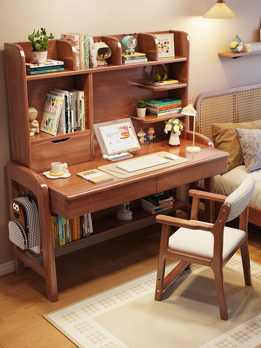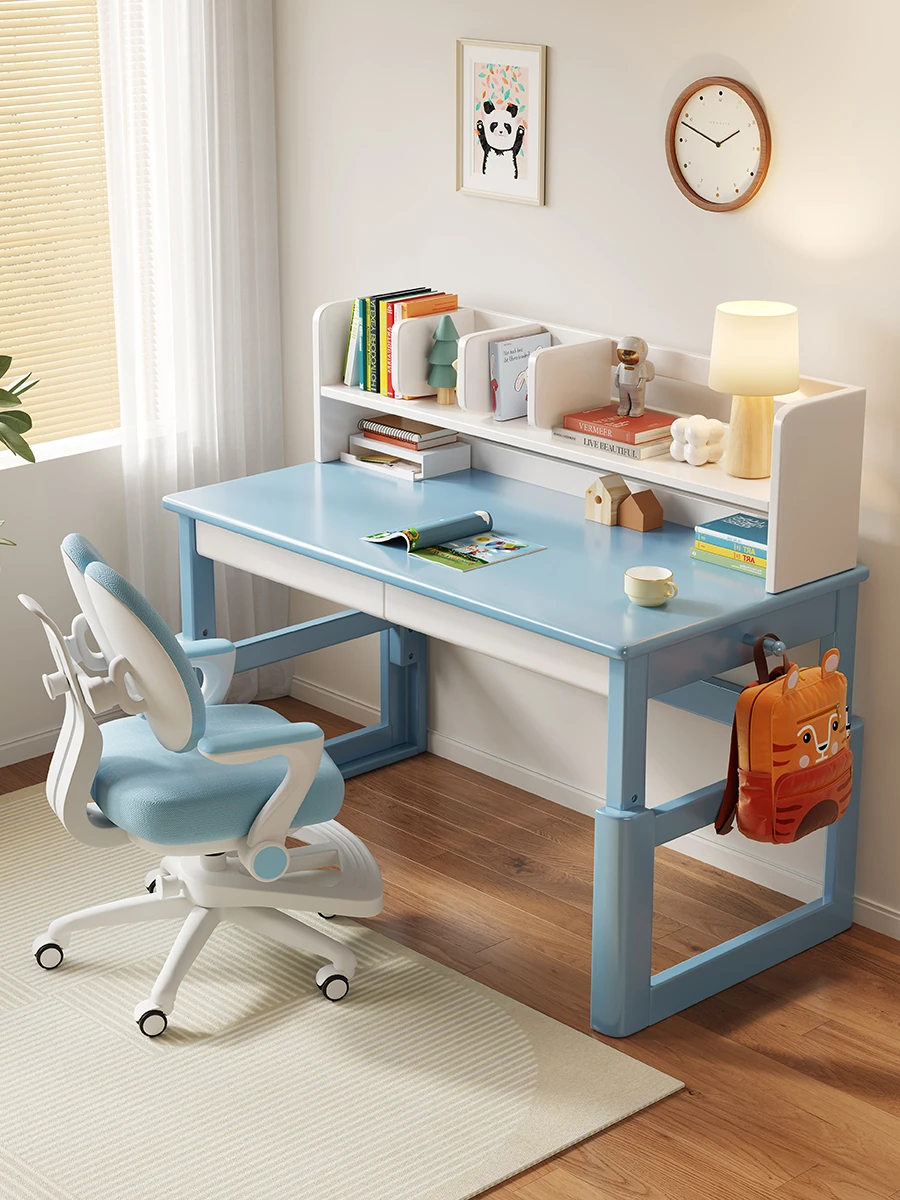Minimalist Modern Children's Study Desk with Bookshelf – Versatile Writing Table for Home Use – Solid Wood Student Learning and Computer Desk