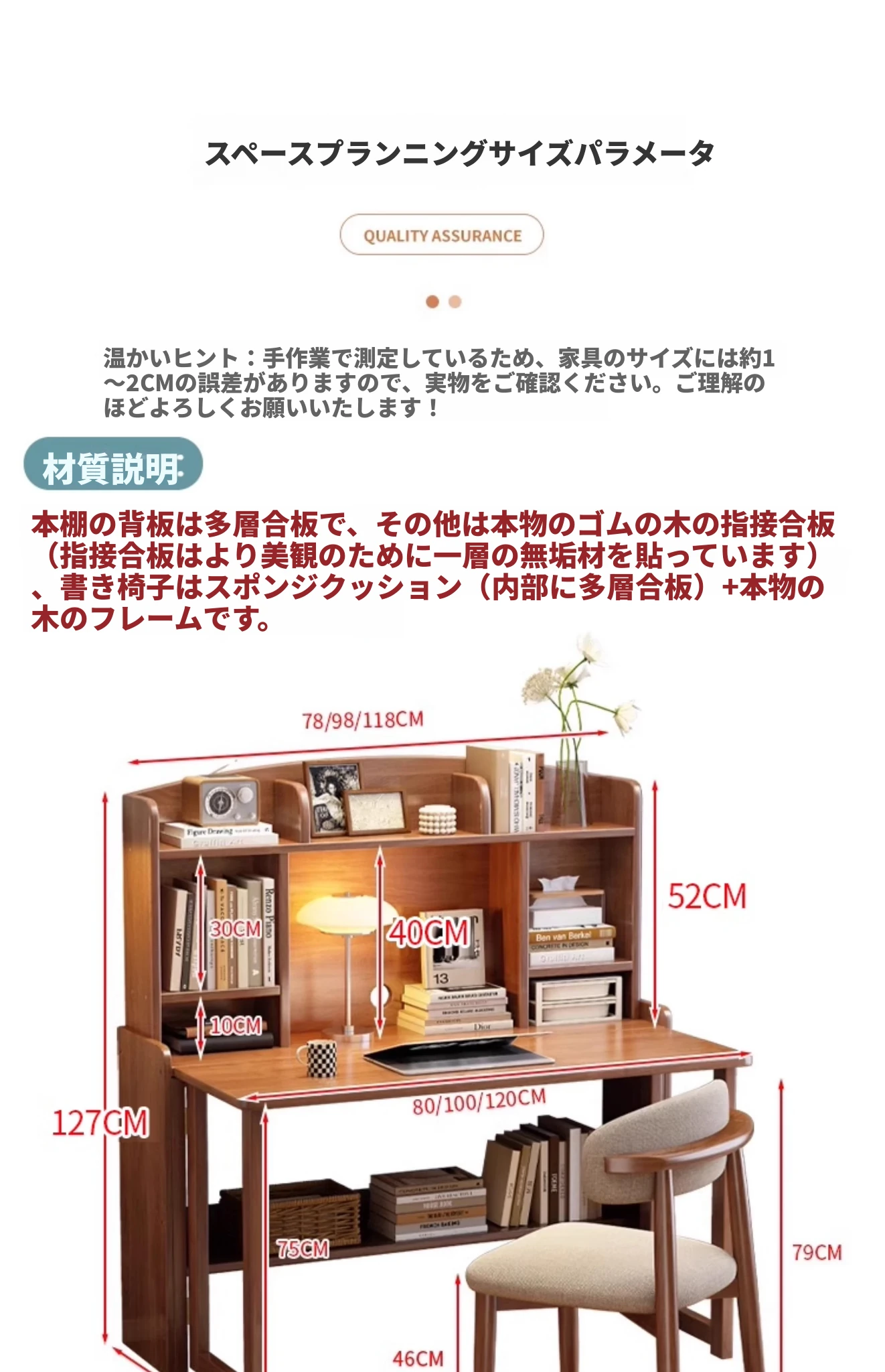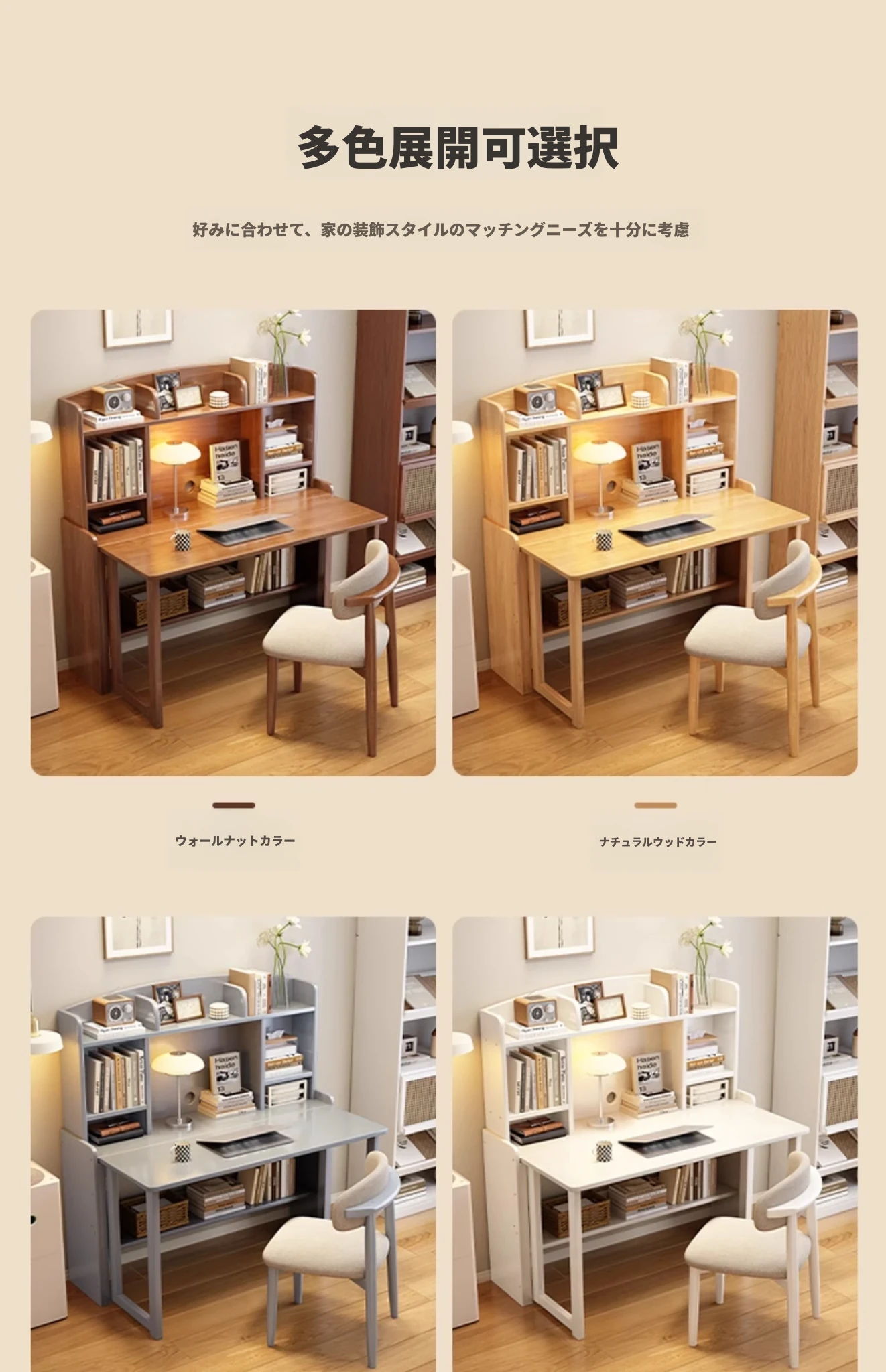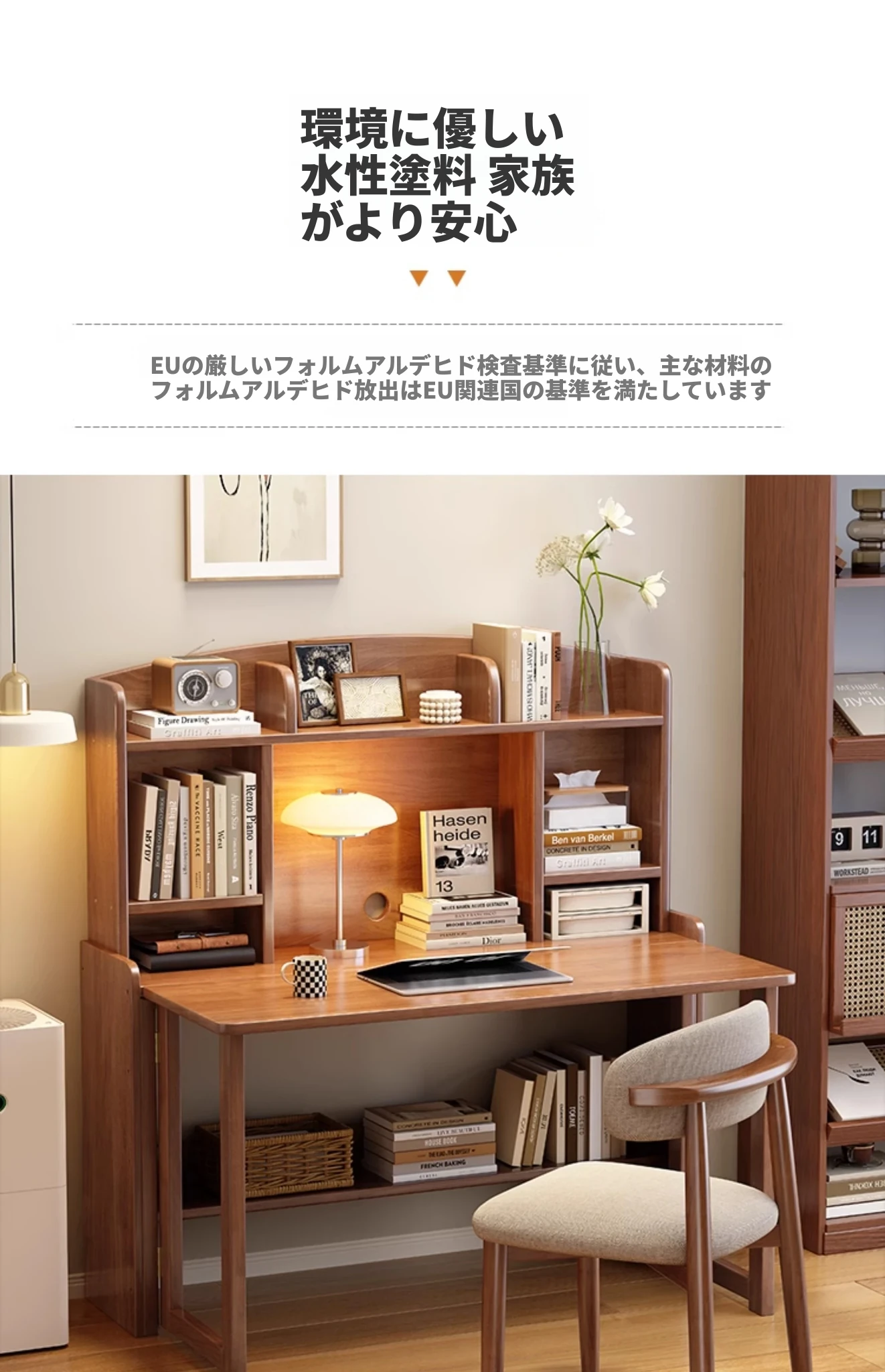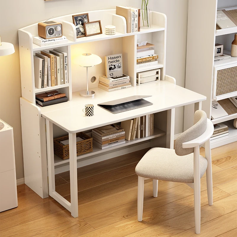北欧風無垢材コンパクト多機能デスク:折りたたみ式書棚付き、省スペース小型伸縮式デザインで、リビングやベッドルームにも最適なスタディ&オフィス用PCデスク!