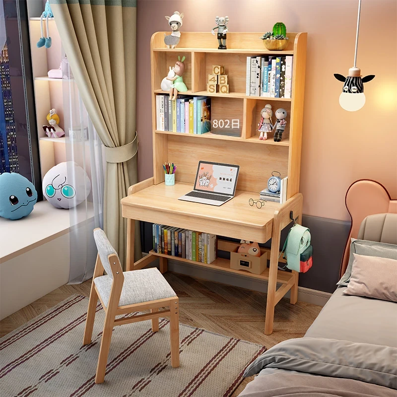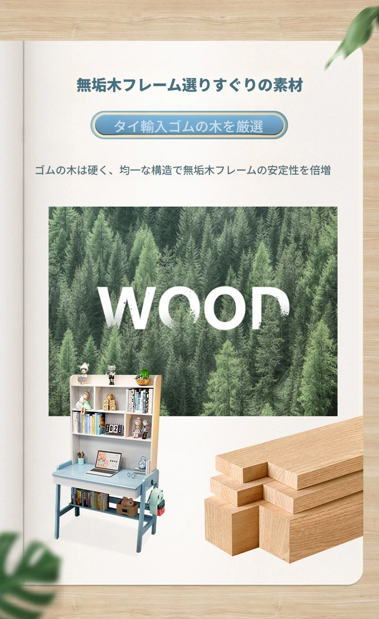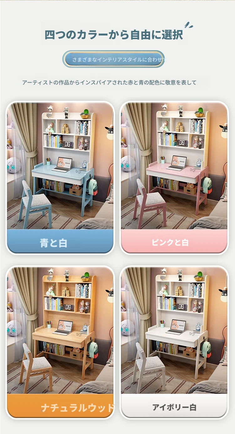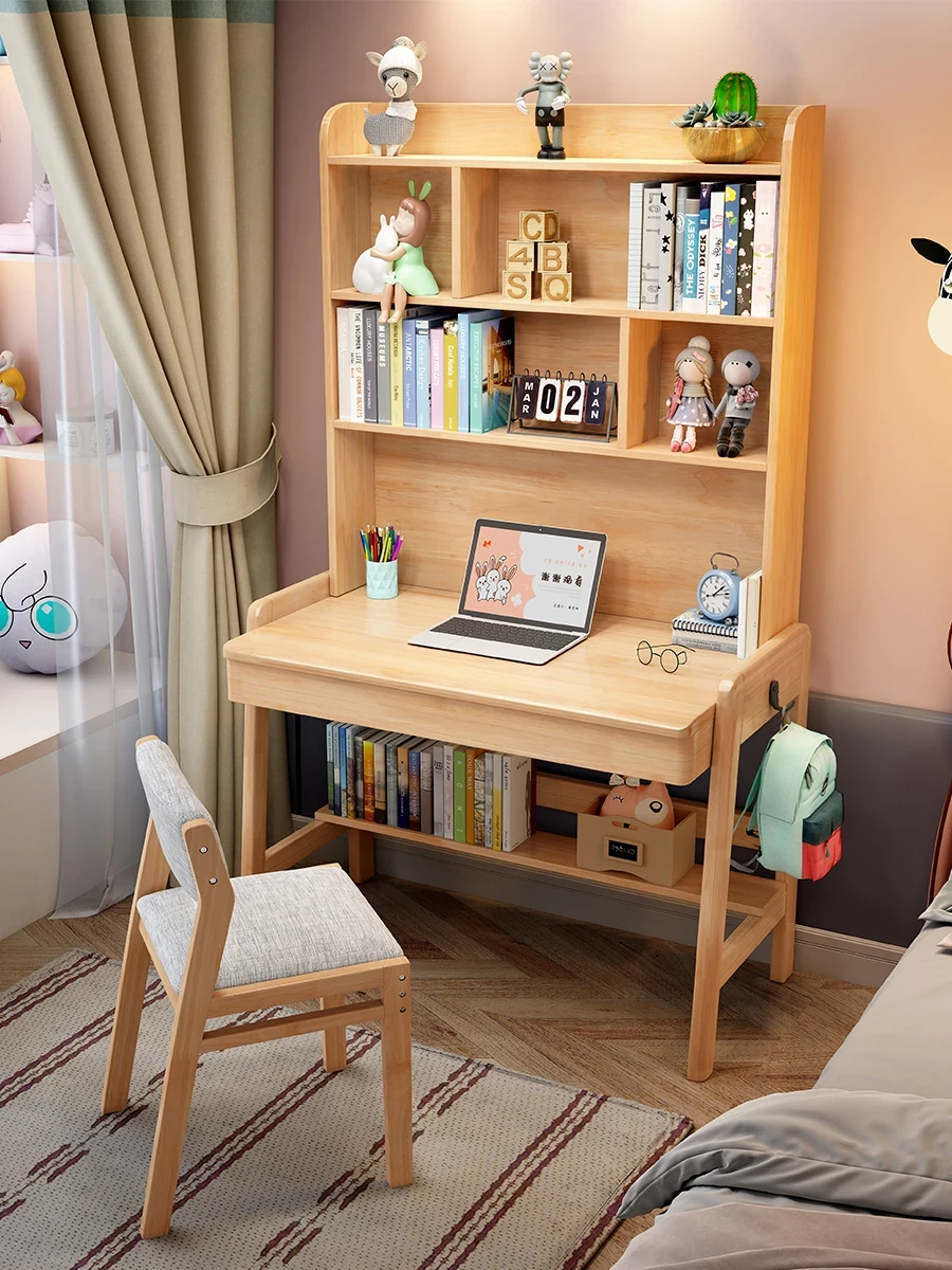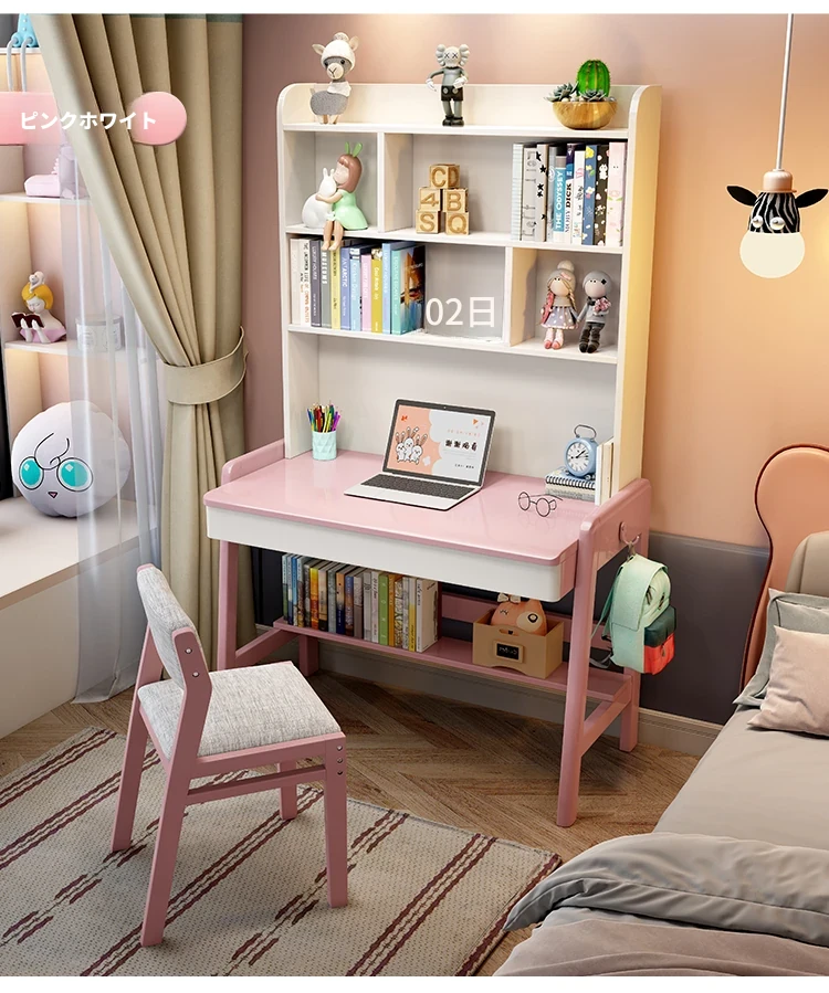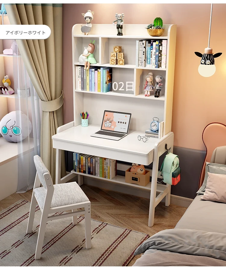 ナチュラルウッドの多機能デスク&シェルフセット - 小スペースに最適!シンプルデザインの学生用パソコンデスク、子供の学習にぴったり!