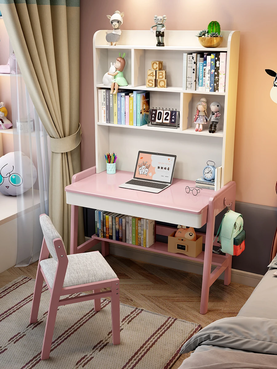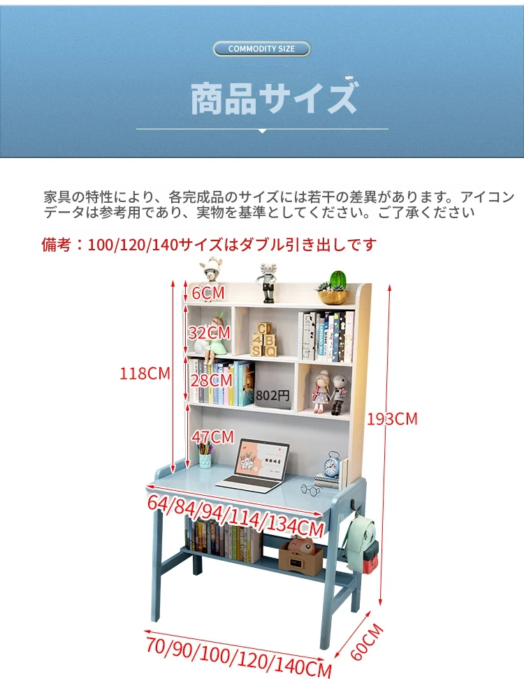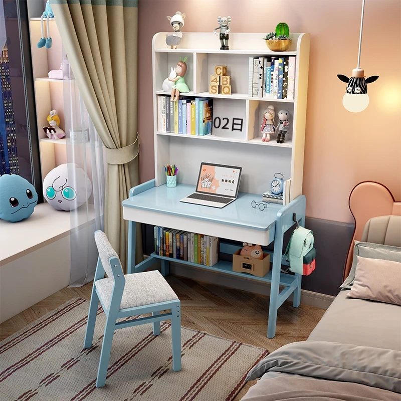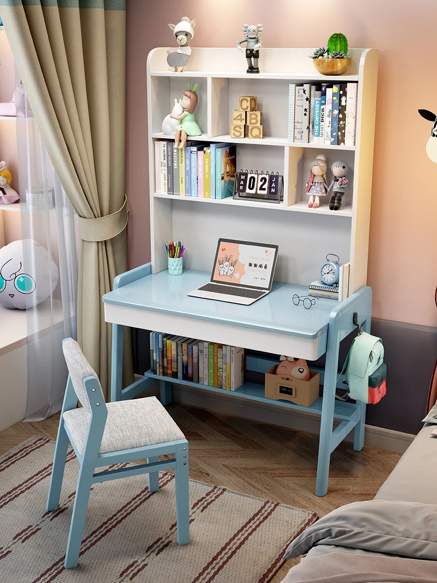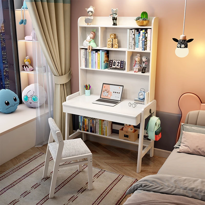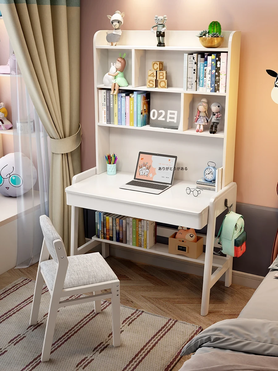 ナチュラルウッドの多機能デスク&シェルフセット - 小スペースに最適!シンプルデザインの学生用パソコンデスク、子供の学習にぴったり!