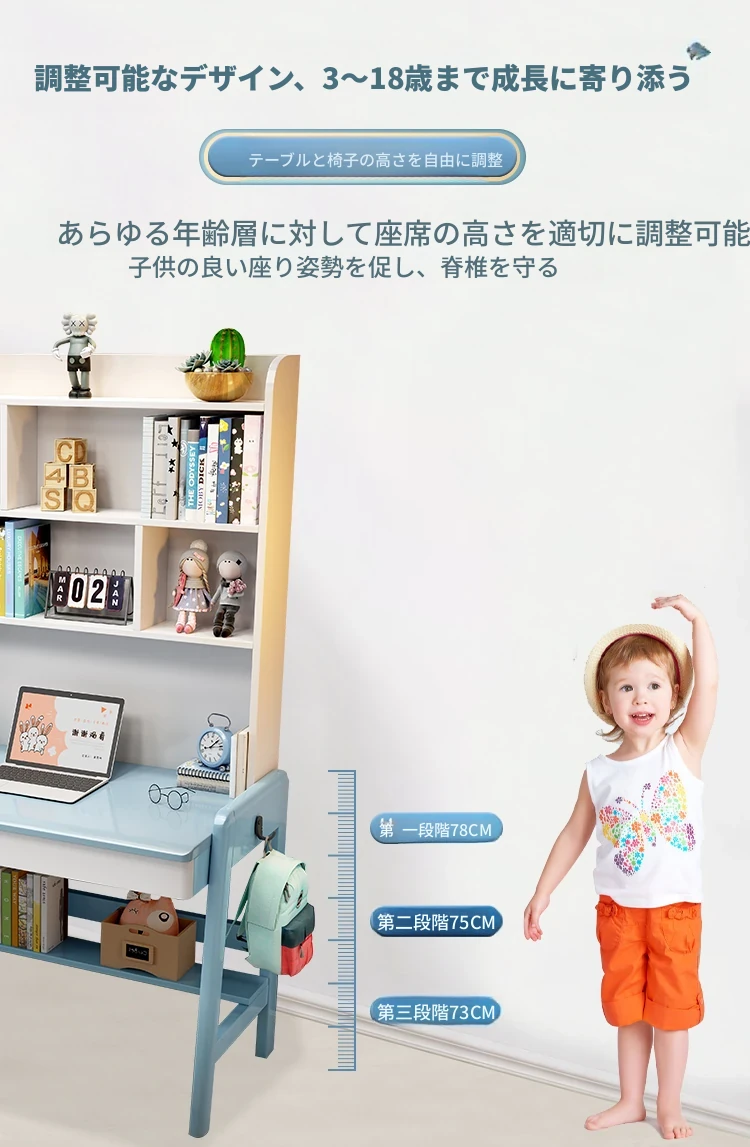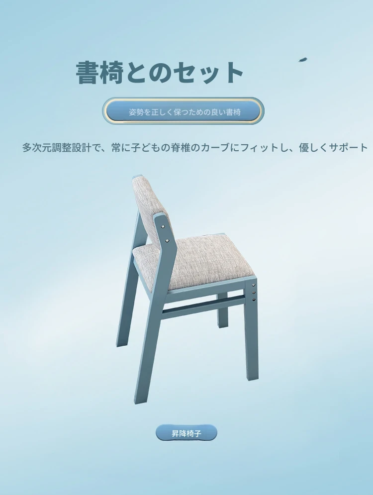 HJL8012#青と白のテーブル+昇降チェア