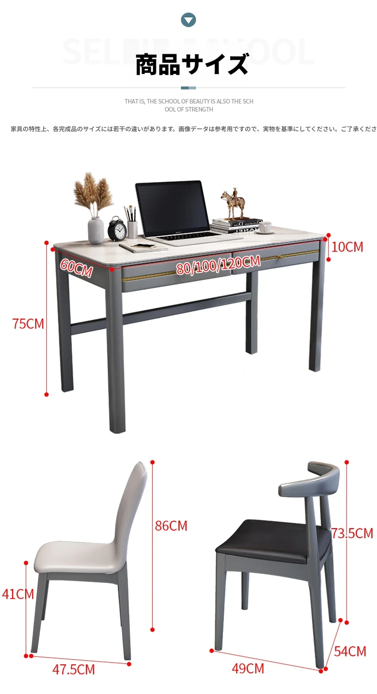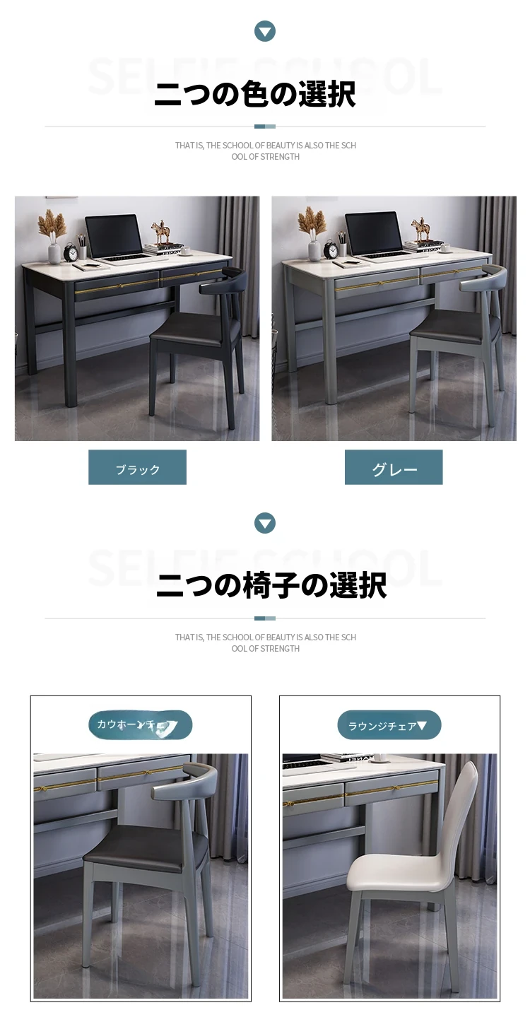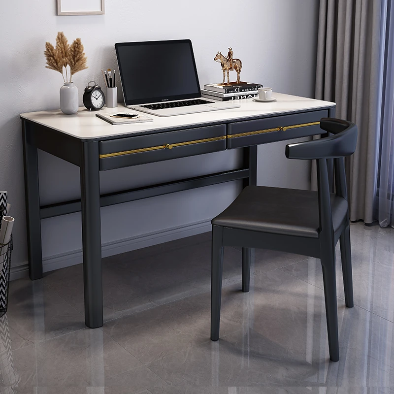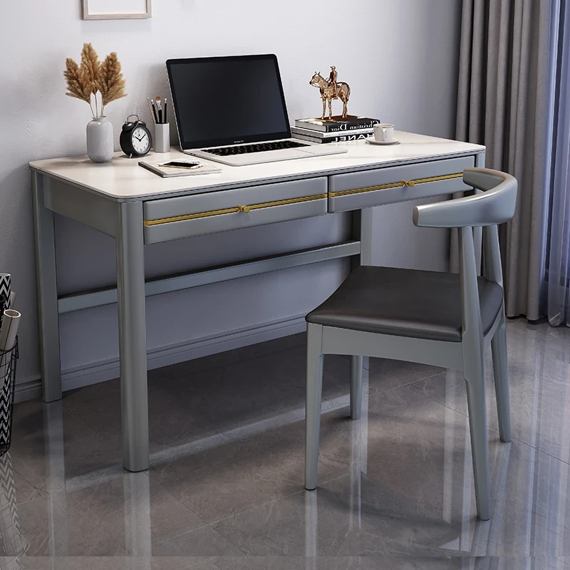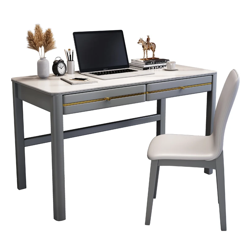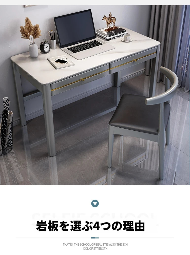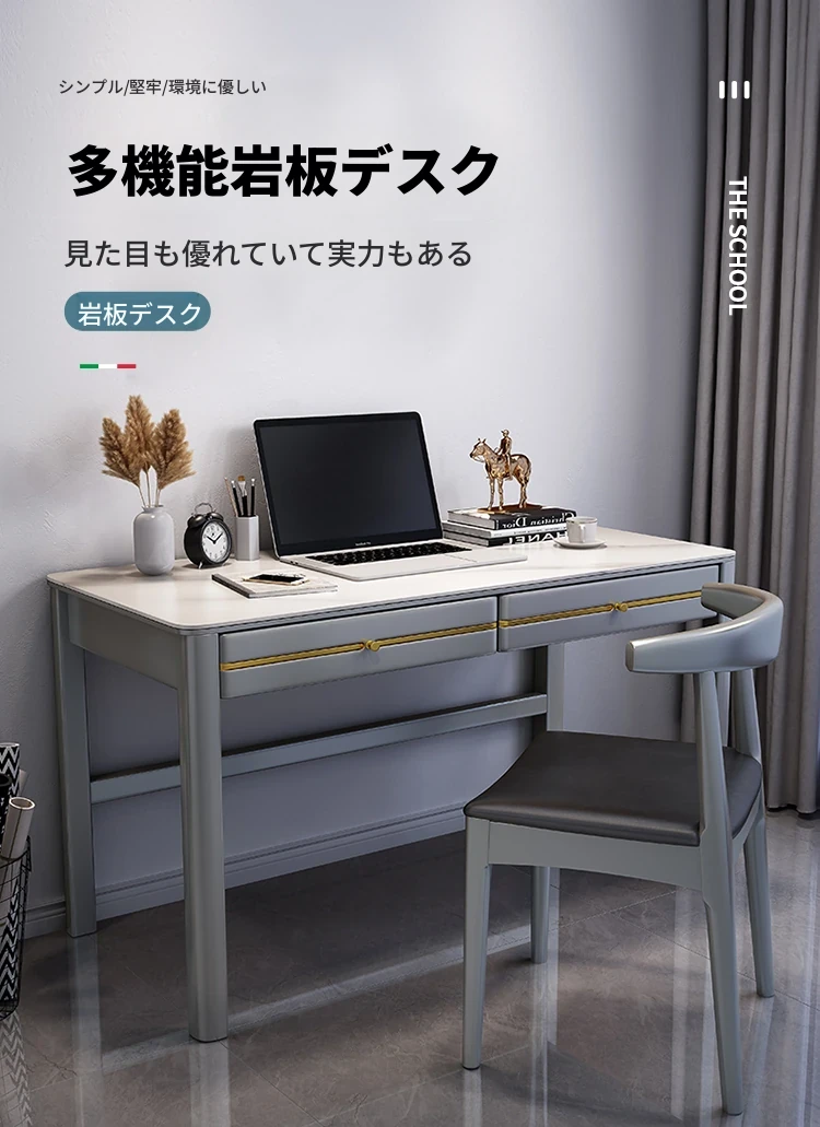 919# 岩板デスク0.8メートル高級グレー+牛角椅子 実木フレーム岩板天板