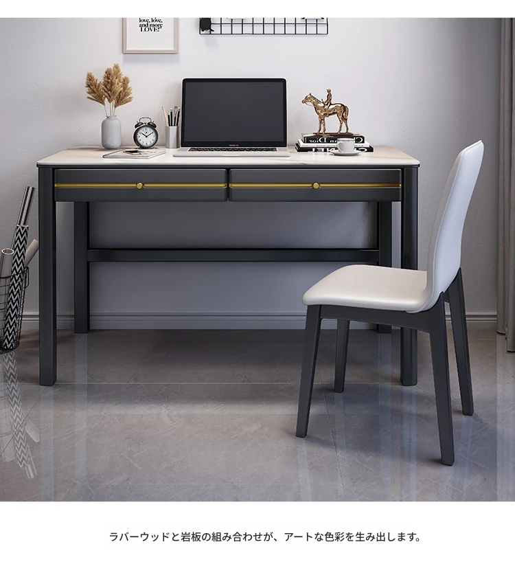 919# 岩板デスク 1.4メートル テクスチャーブラック シングルデスク 無垢材フレーム 岩板天板