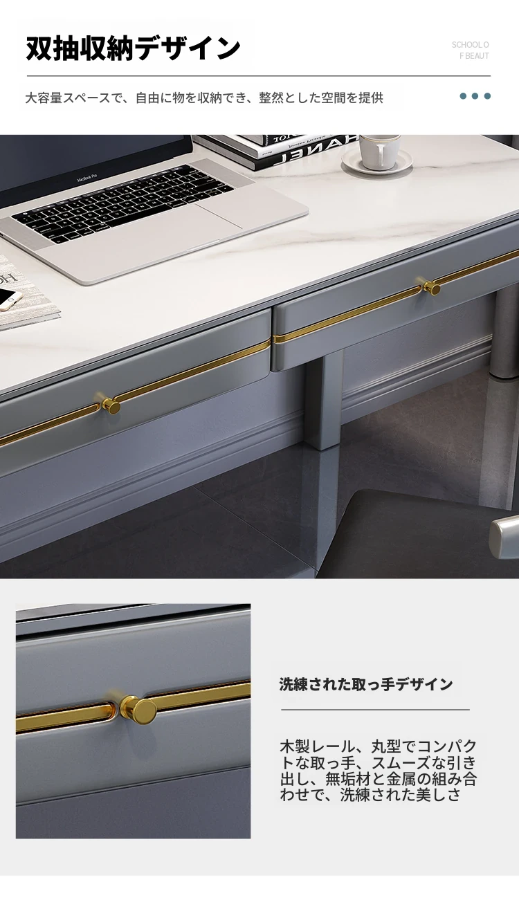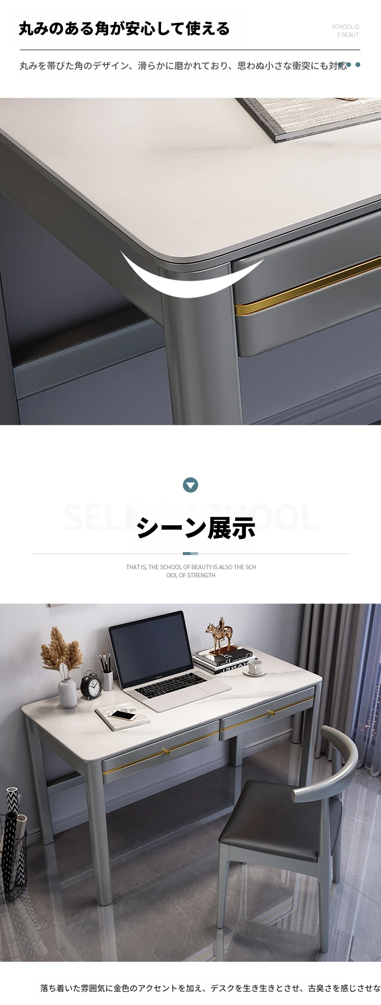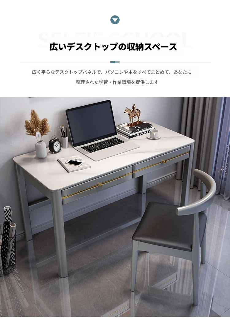 【高級シンプルな北欧風石製デスク】家庭用軽量ラグジュアリースタイルのモダンデザイン、一体型ノートパソコンデスク、優雅な空間を演出