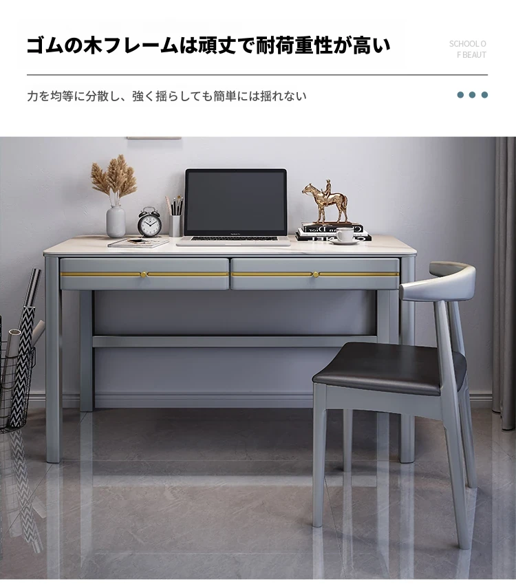 919# 岩板デスク 1.4メートル 高級グレー 単品デスク 無垢材フレーム 岩板テーブルトップ