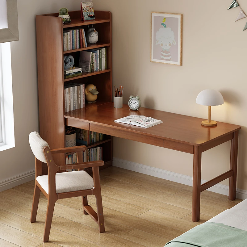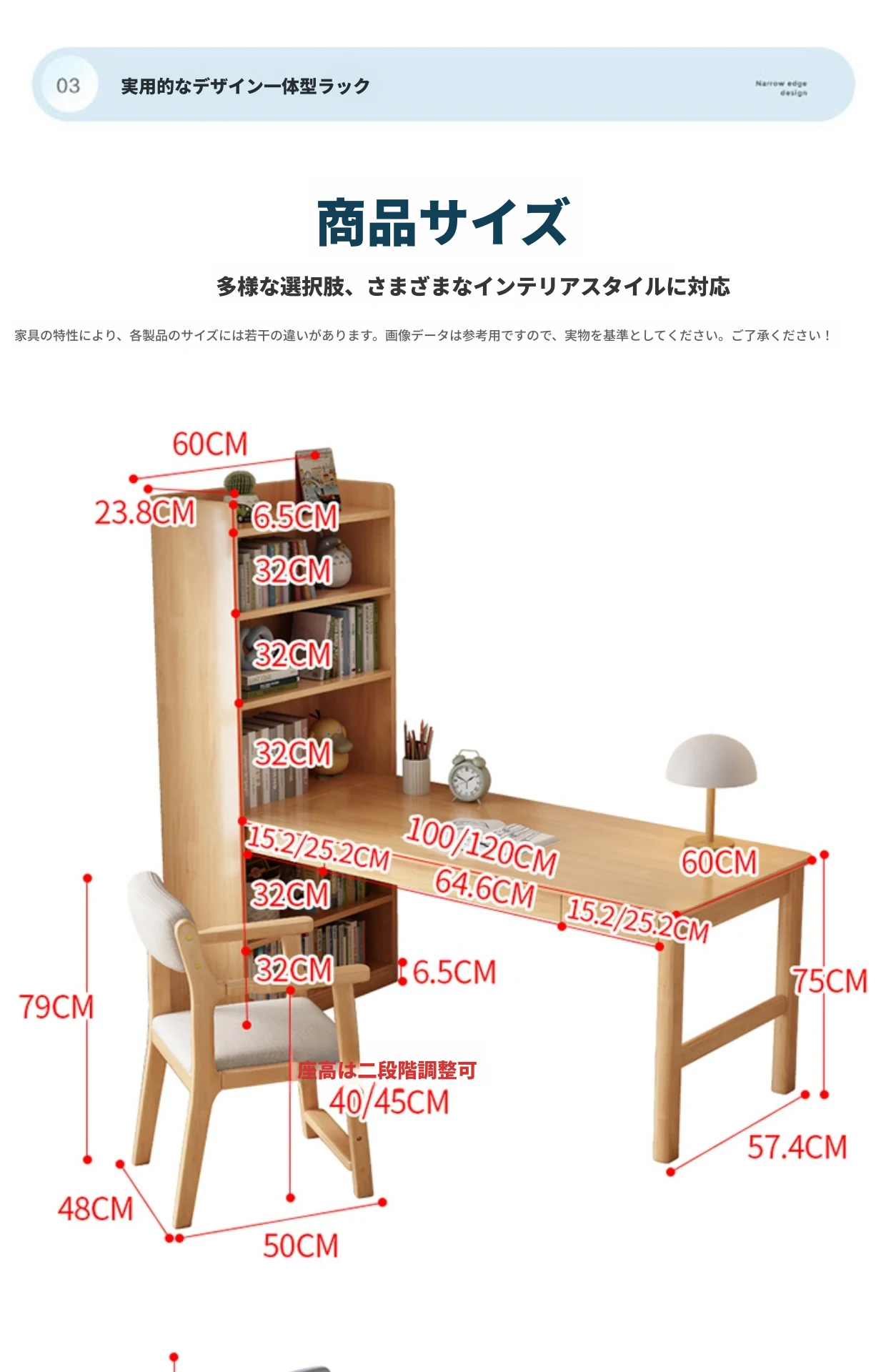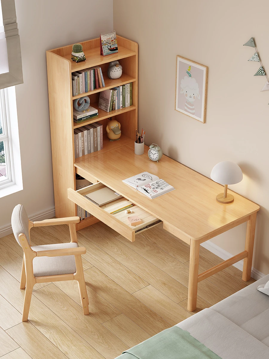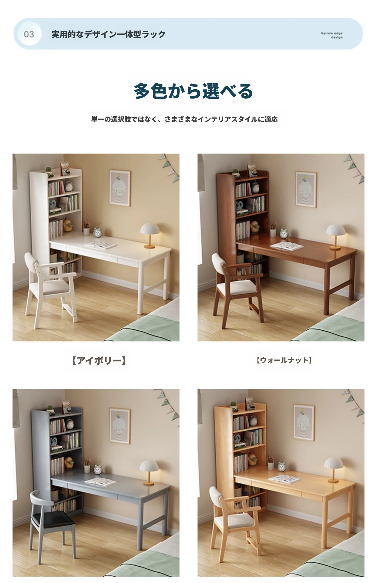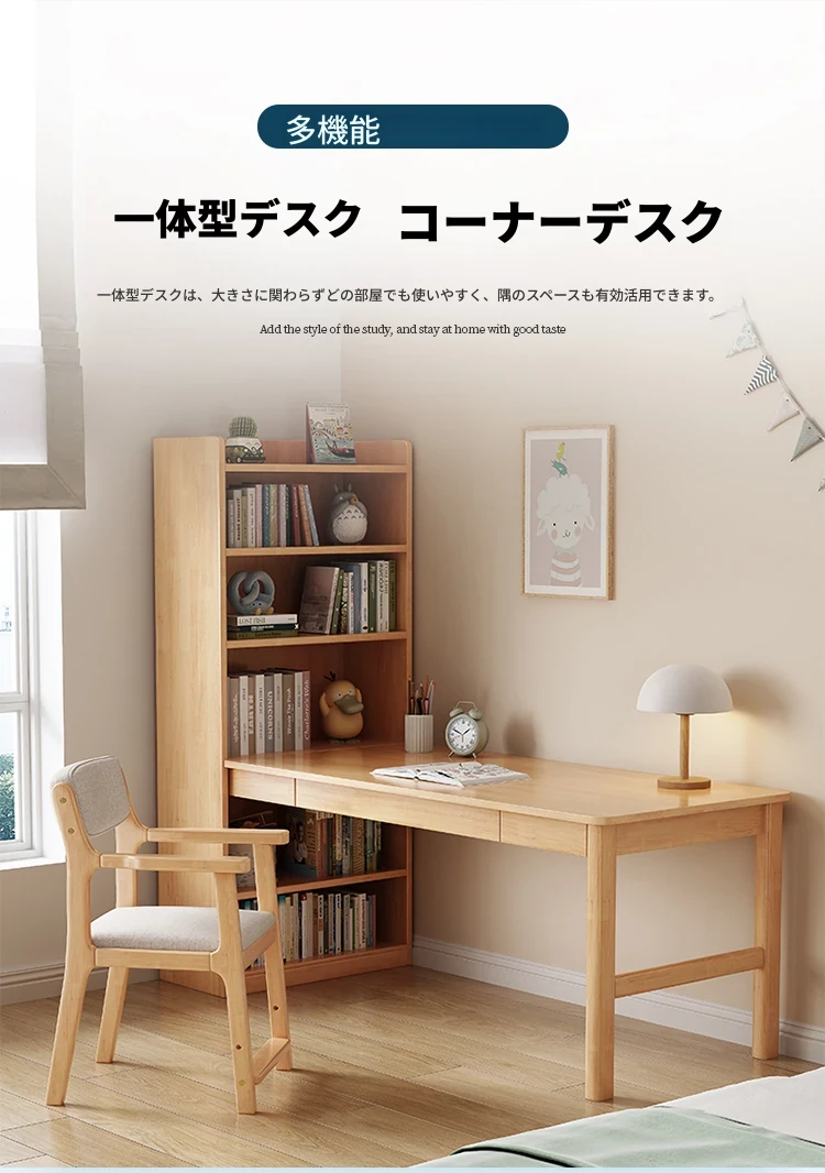 天然木材のシンプルなデザイン!子供の学習に最適な多機能デスクセット:書棚・パソコンデスク一体型、コーナー配置可能なスタイリッシュホームオフィスデスク