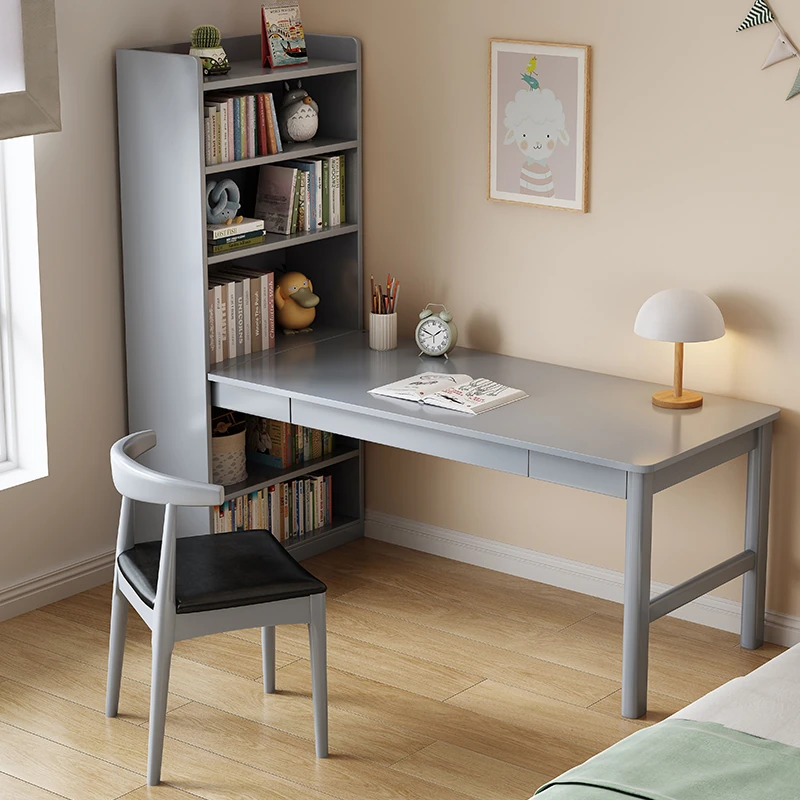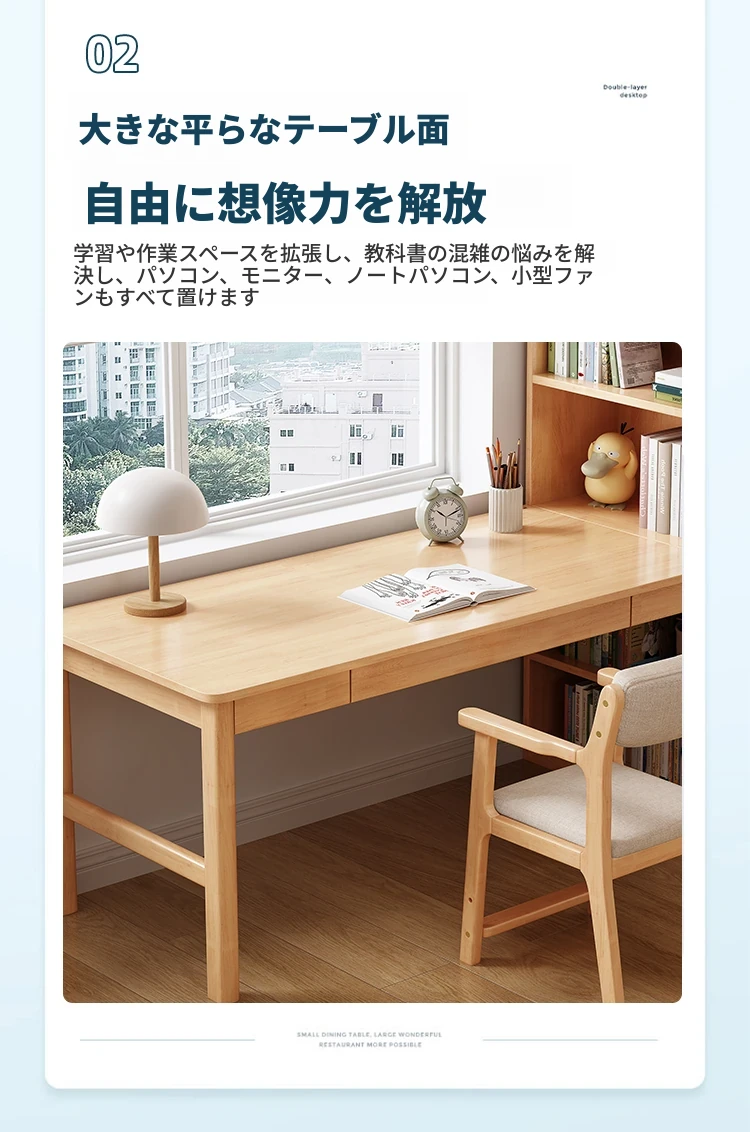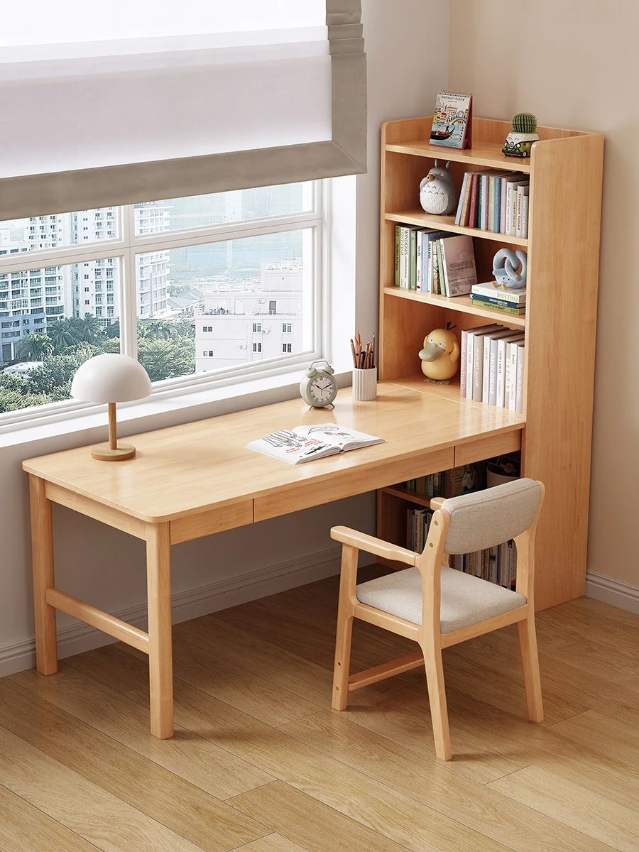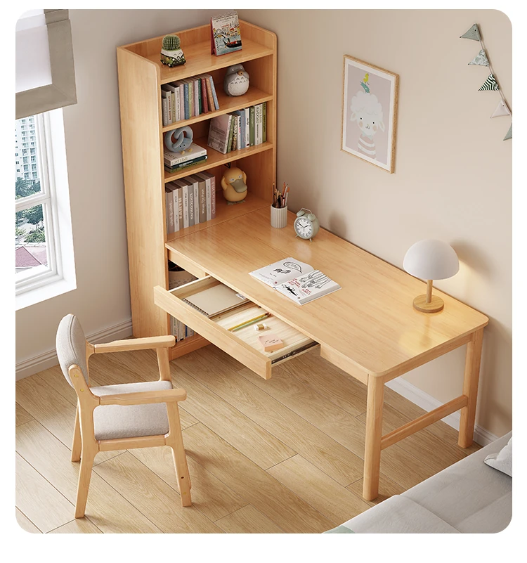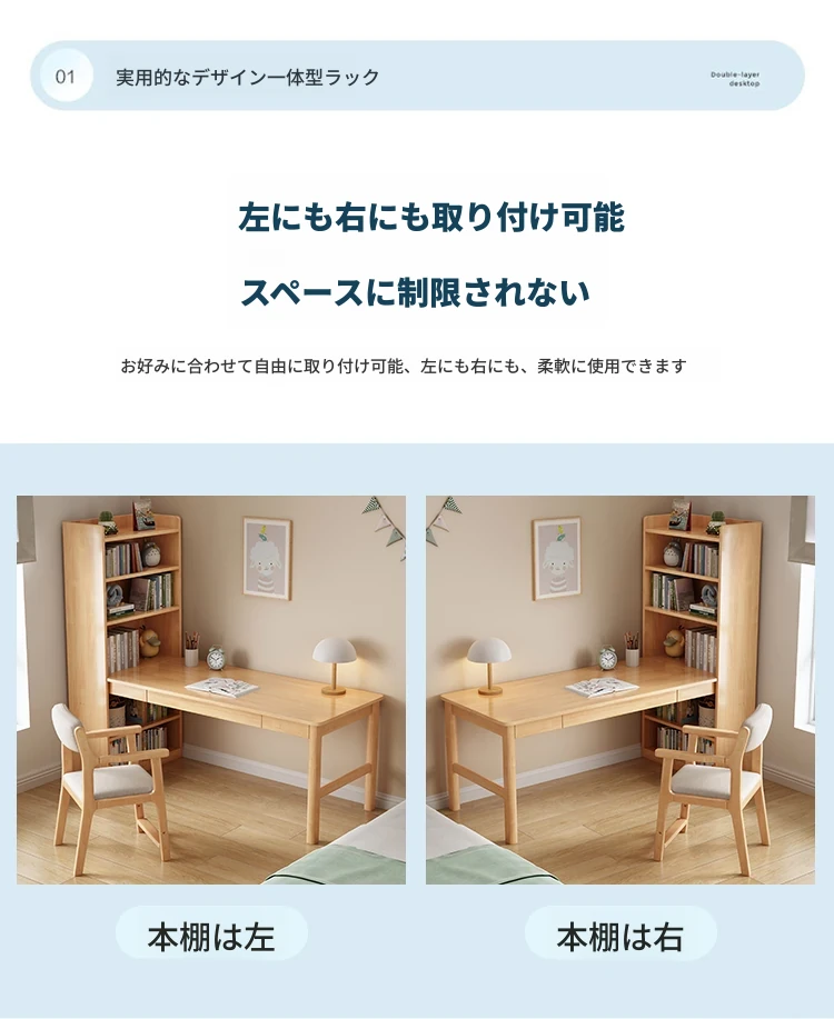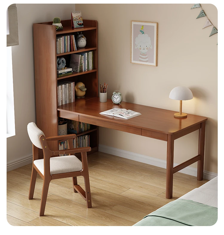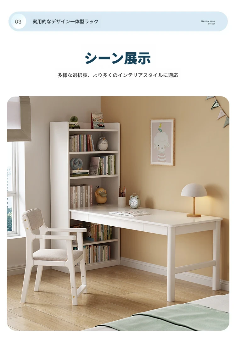 天然木材のシンプルなデザイン!子供の学習に最適な多機能デスクセット:書棚・パソコンデスク一体型、コーナー配置可能なスタイリッシュホームオフィスデスク