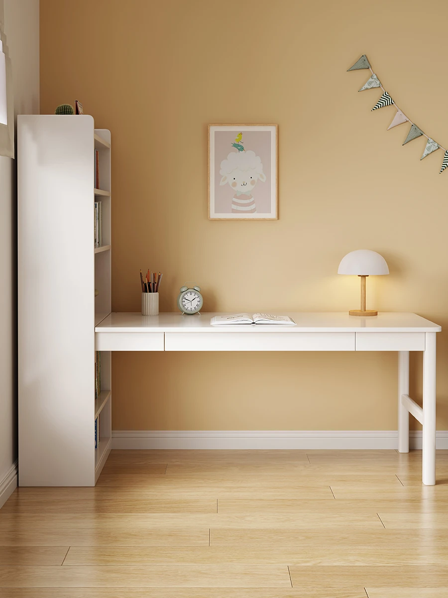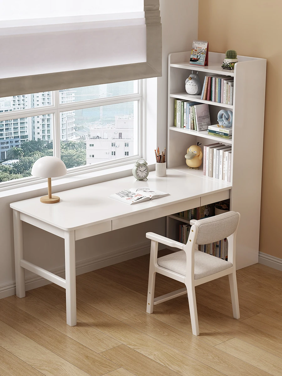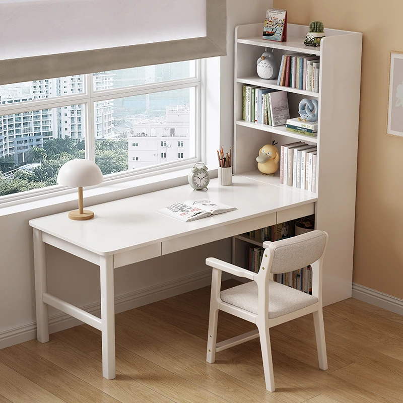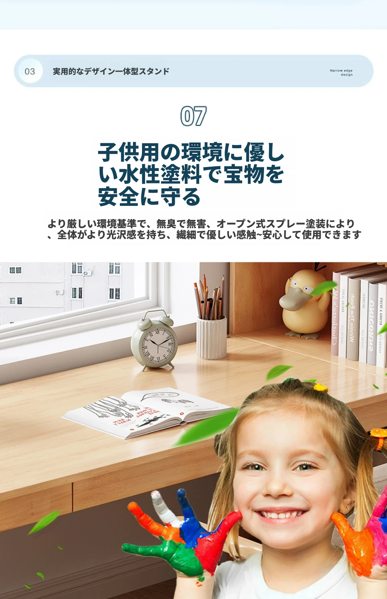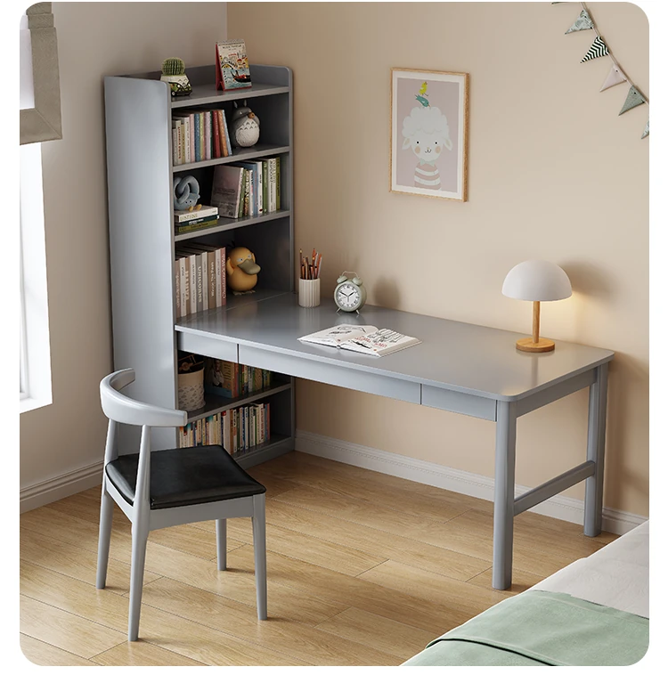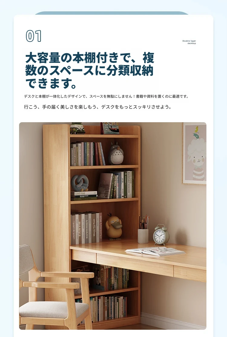 天然木材のシンプルなデザイン!子供の学習に最適な多機能デスクセット:書棚・パソコンデスク一体型、コーナー配置可能なスタイリッシュホームオフィスデスク