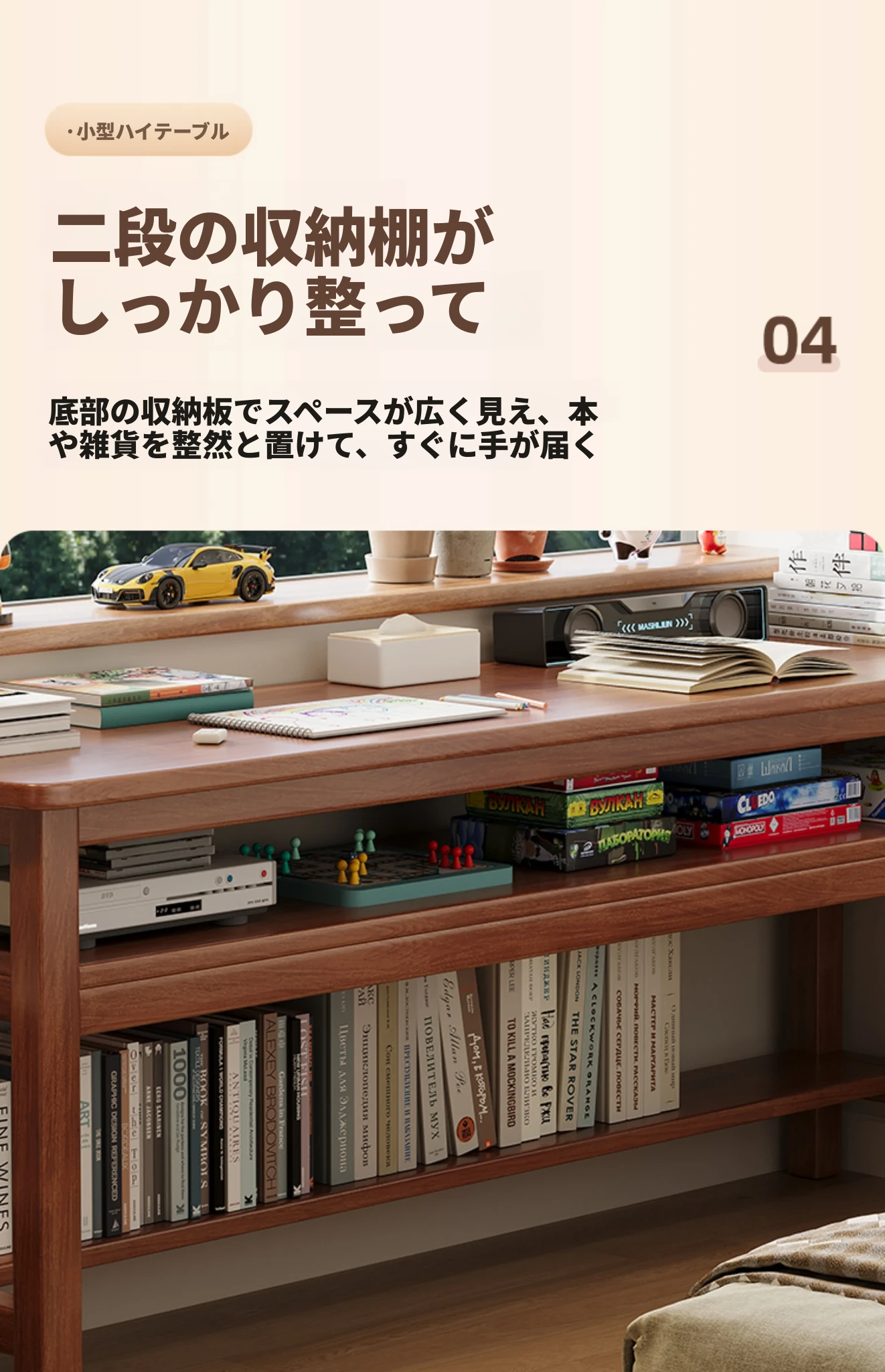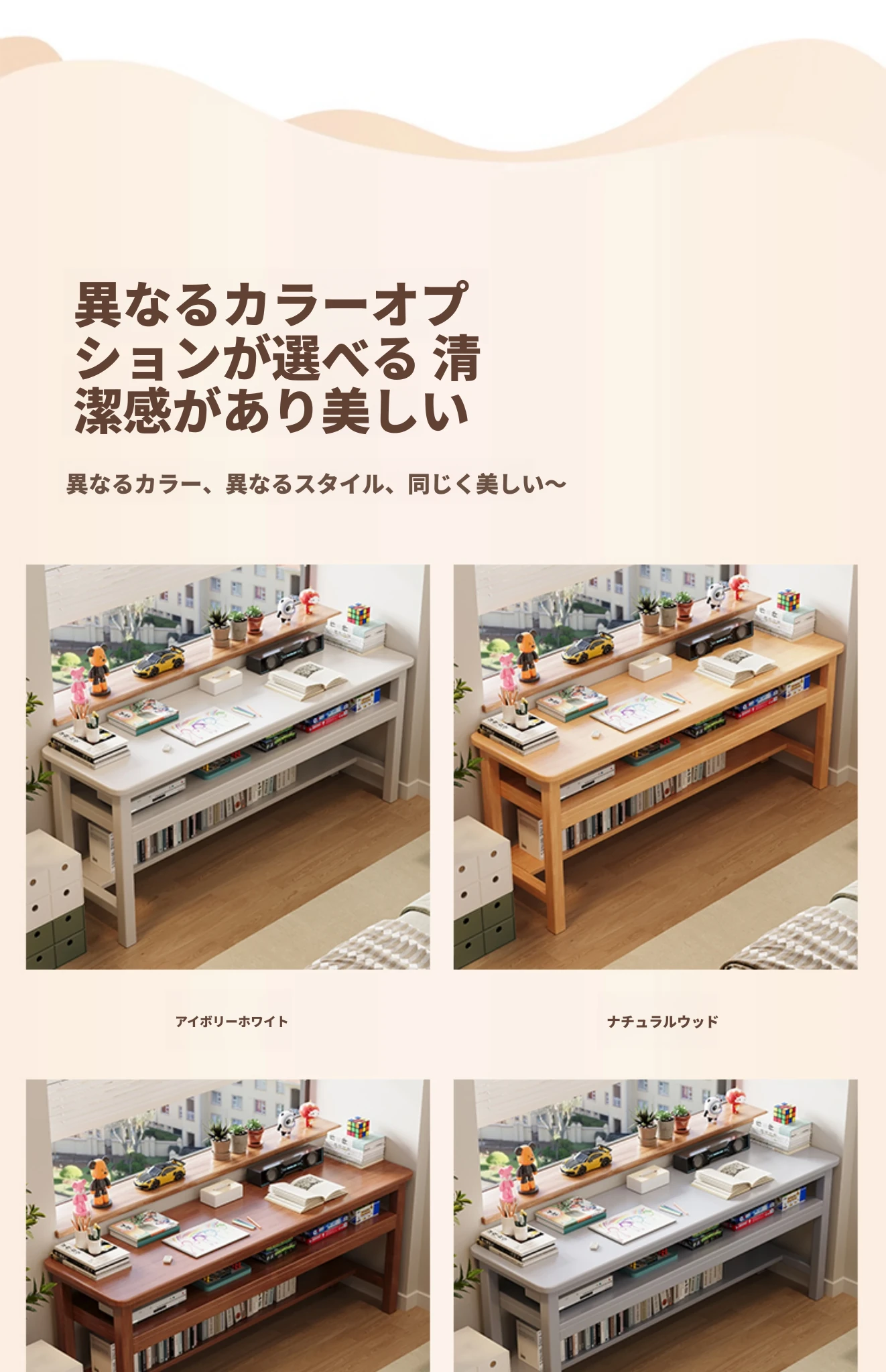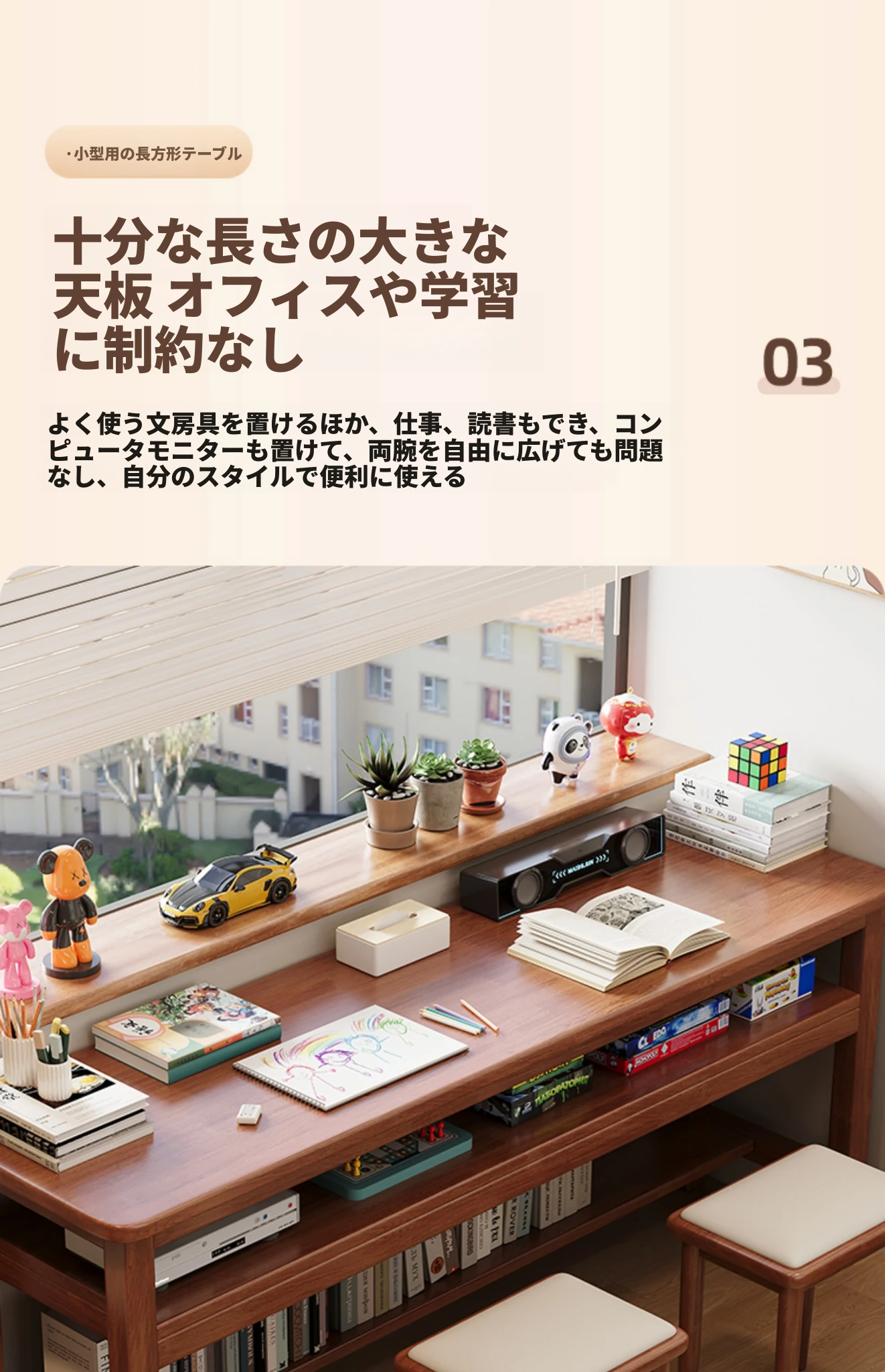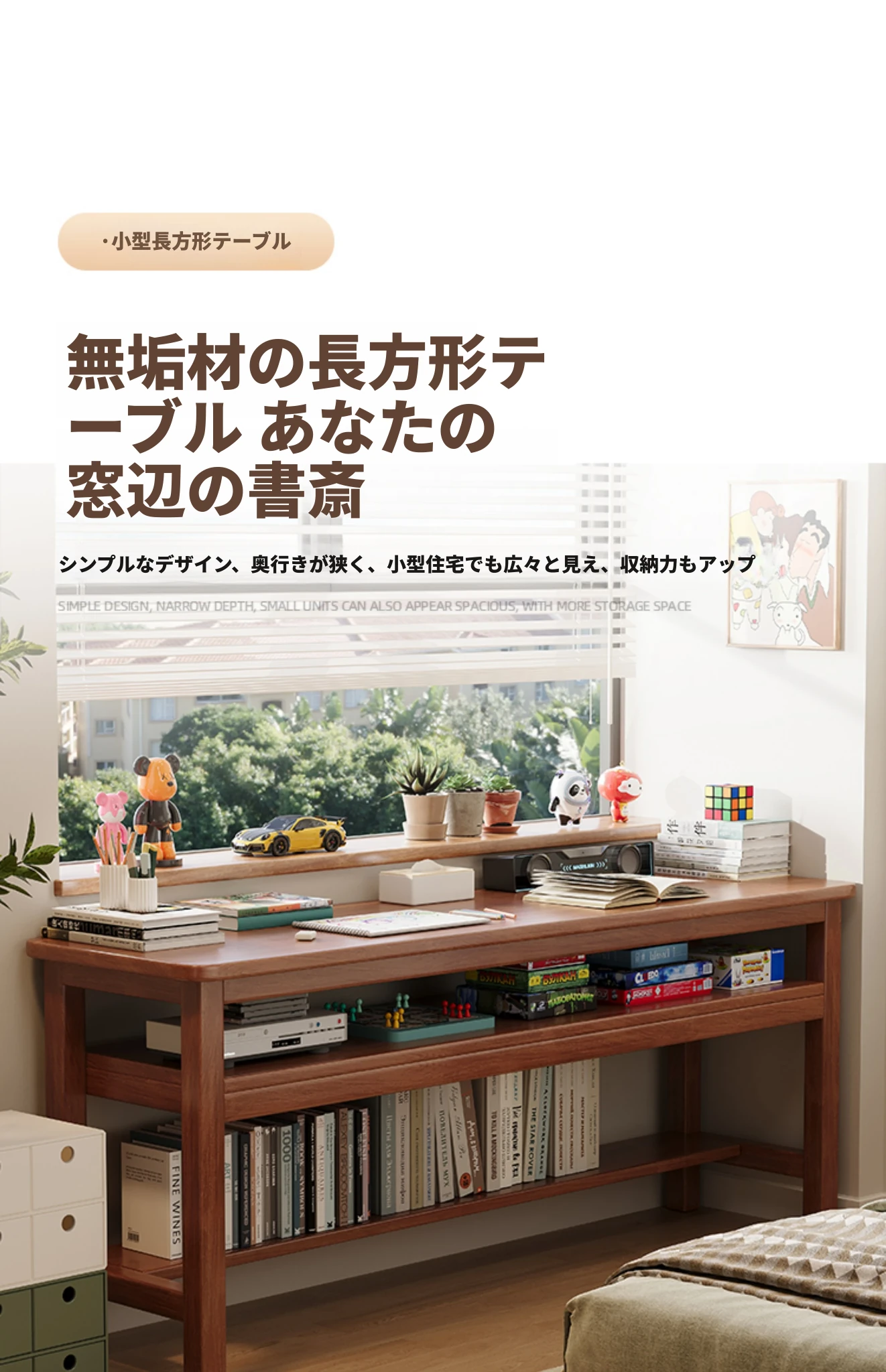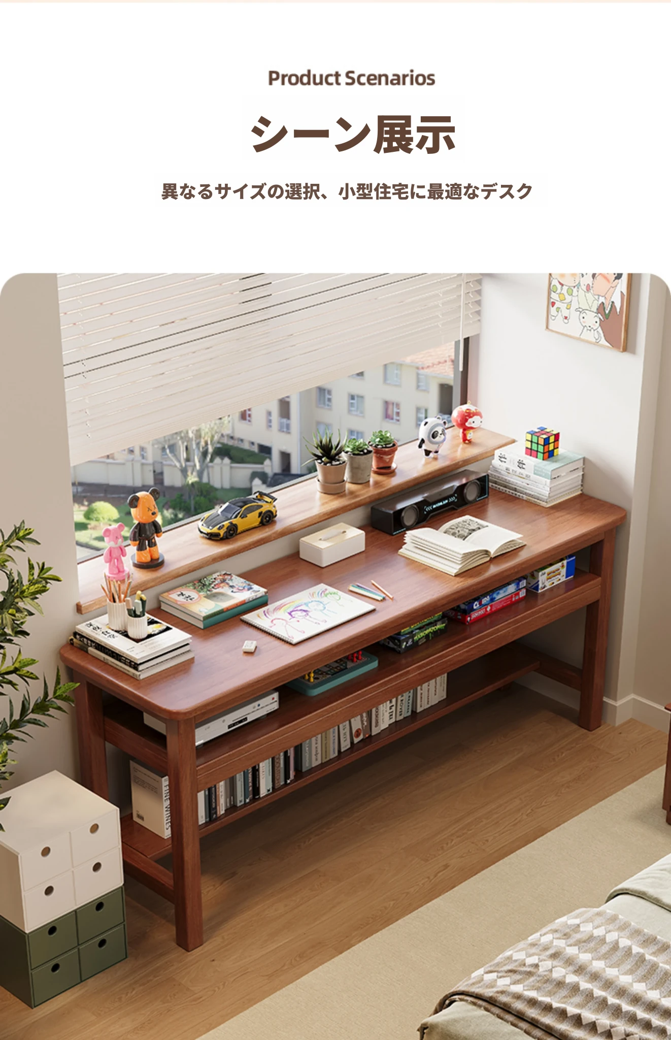 【天然木材の魅力】全実木製デスク 二段式パソコンデスク 学生向け 家庭用 寝室用スリムデスク 壁際設置 小スペースに最適なライティングテーブル