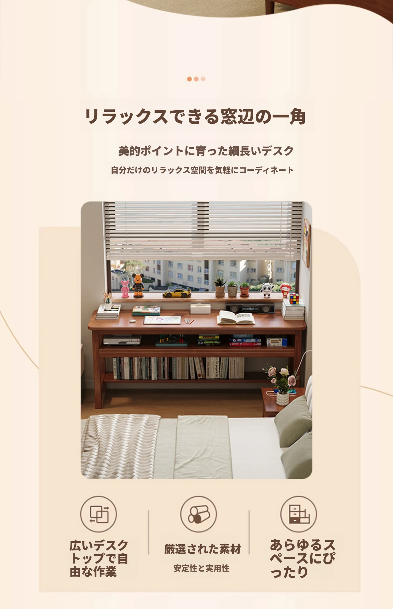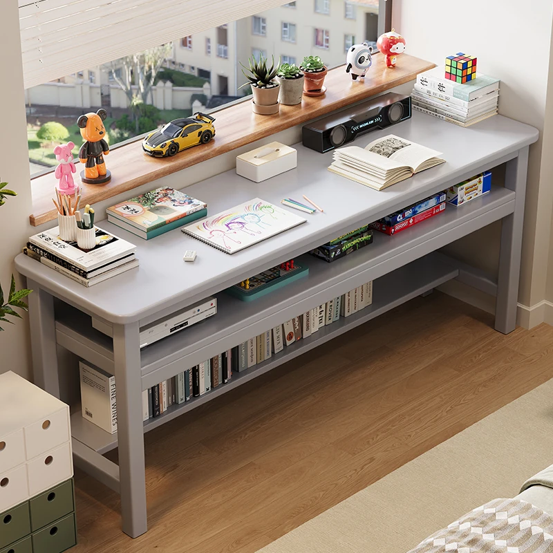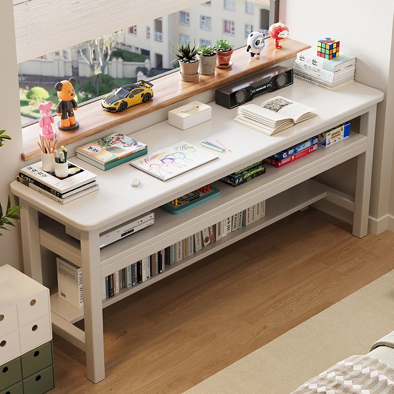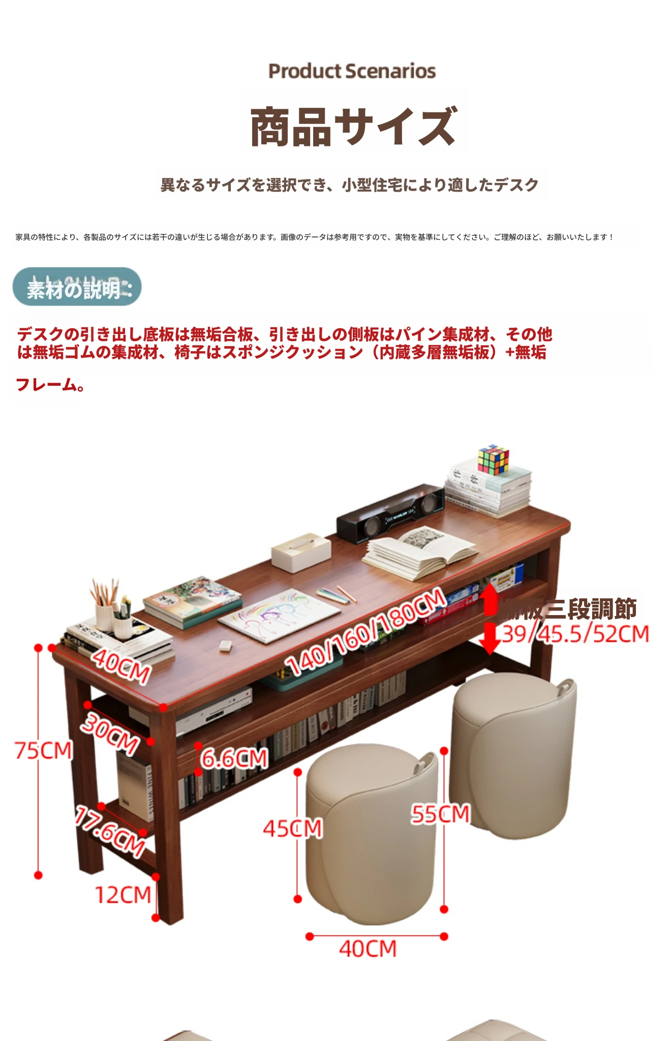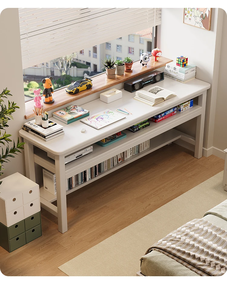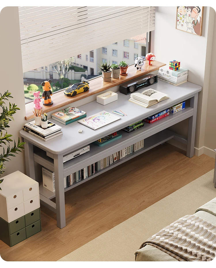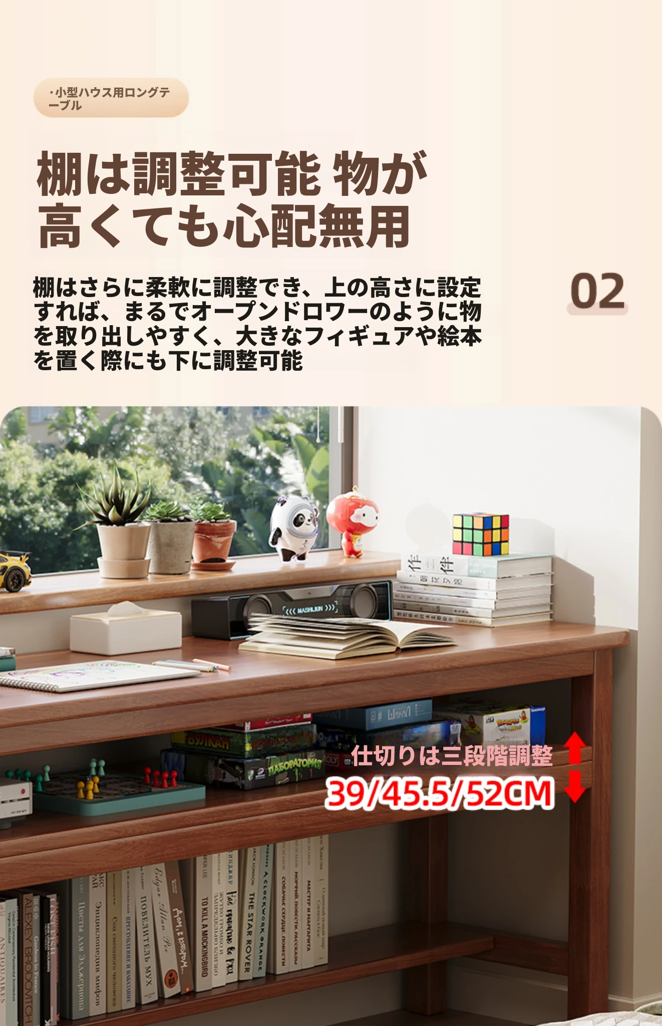 【天然木材の魅力】全実木製デスク 二段式パソコンデスク 学生向け 家庭用 寝室用スリムデスク 壁際設置 小スペースに最適なライティングテーブル