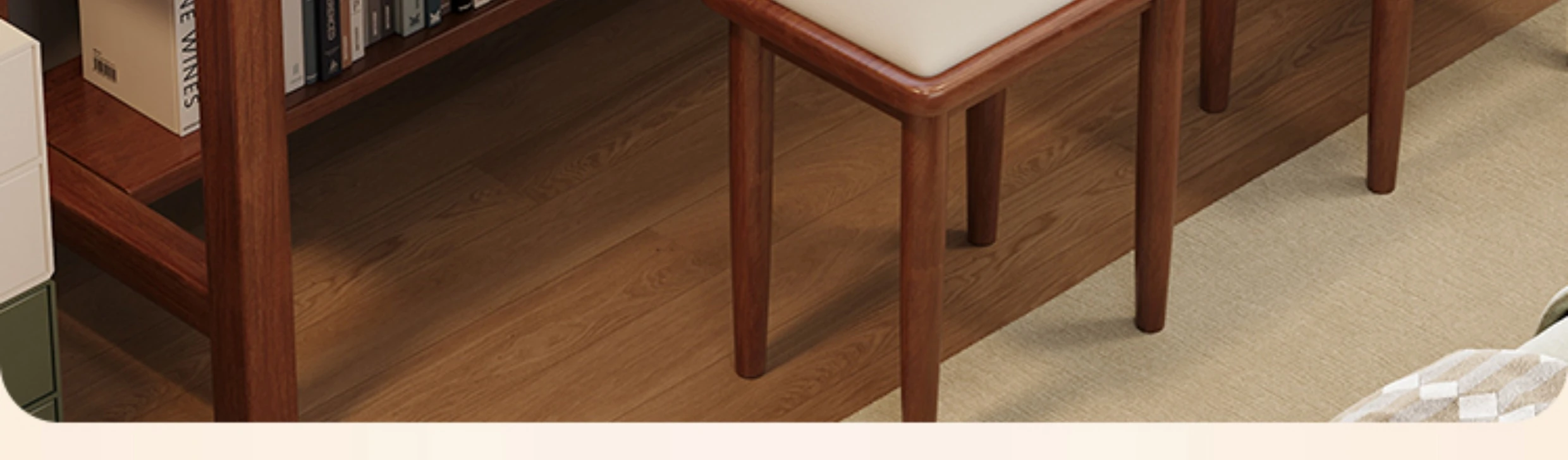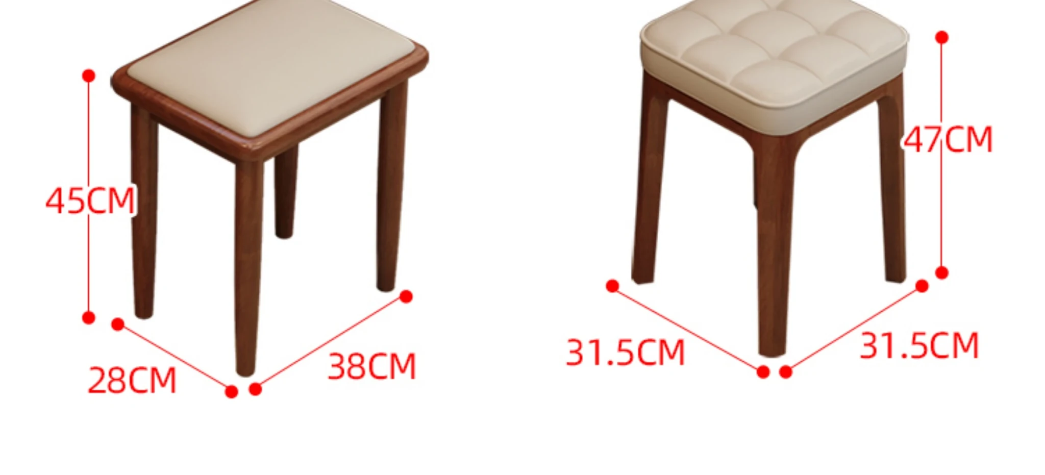 FJX908#ウォールナットカラーのテーブル+無垢材の化粧スツール*2