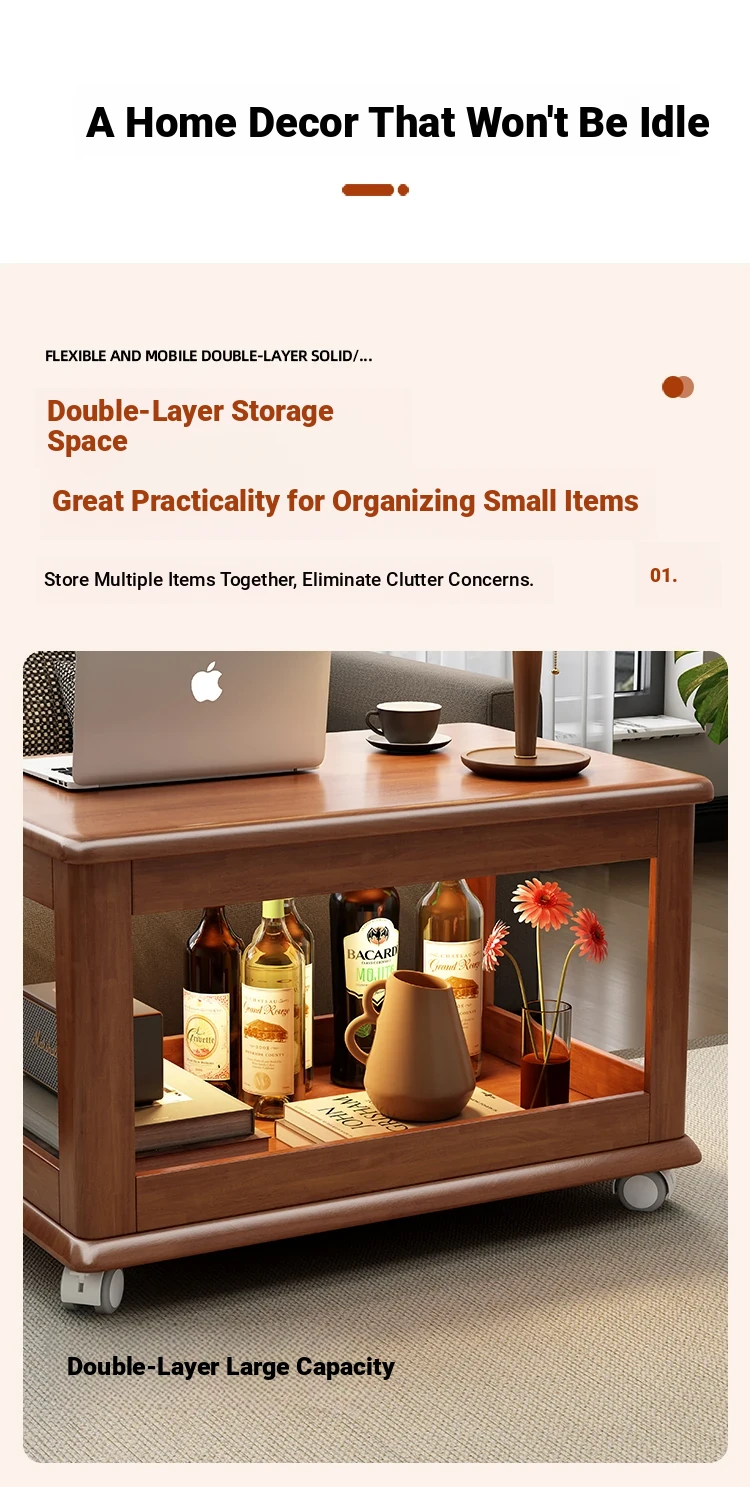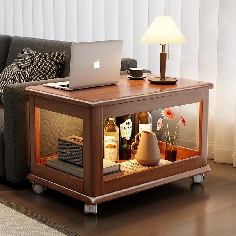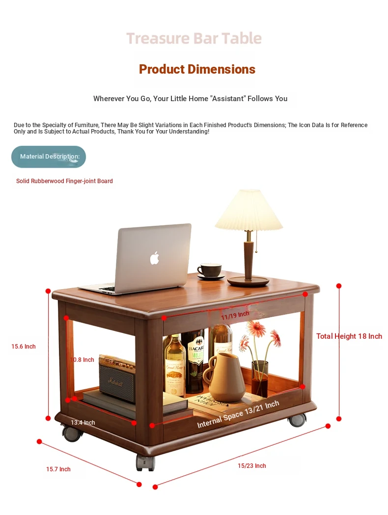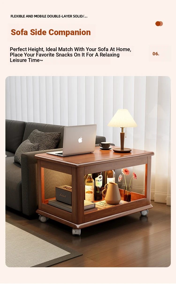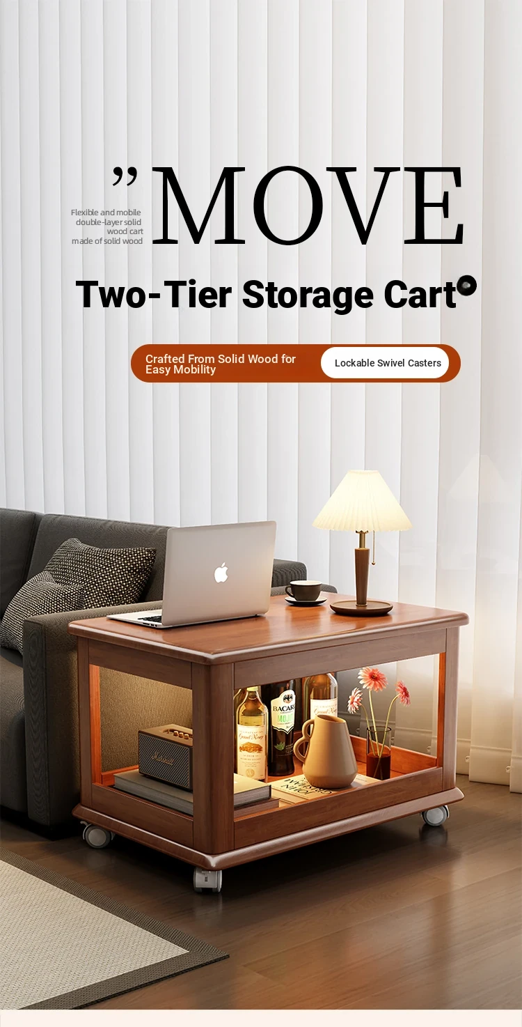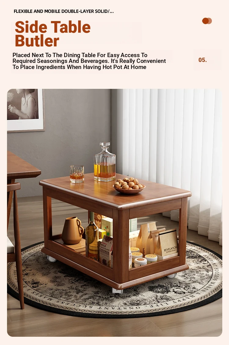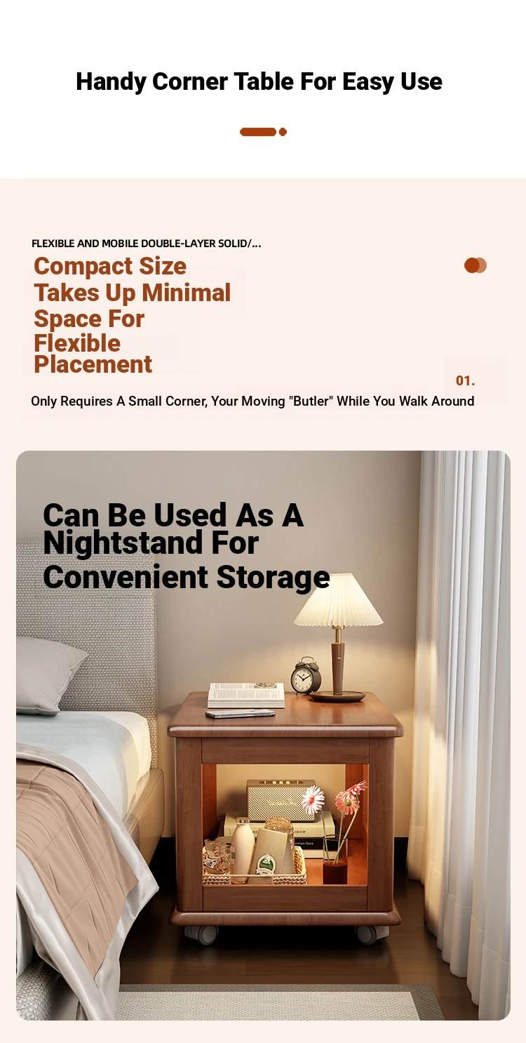 Title: Versatile Solid Wood Side Table - Mobile Snack Cart and Nightstand for Living Room, Perfect for Drinks, Snacks, or Decorative Storage, Compact Design for Any Space