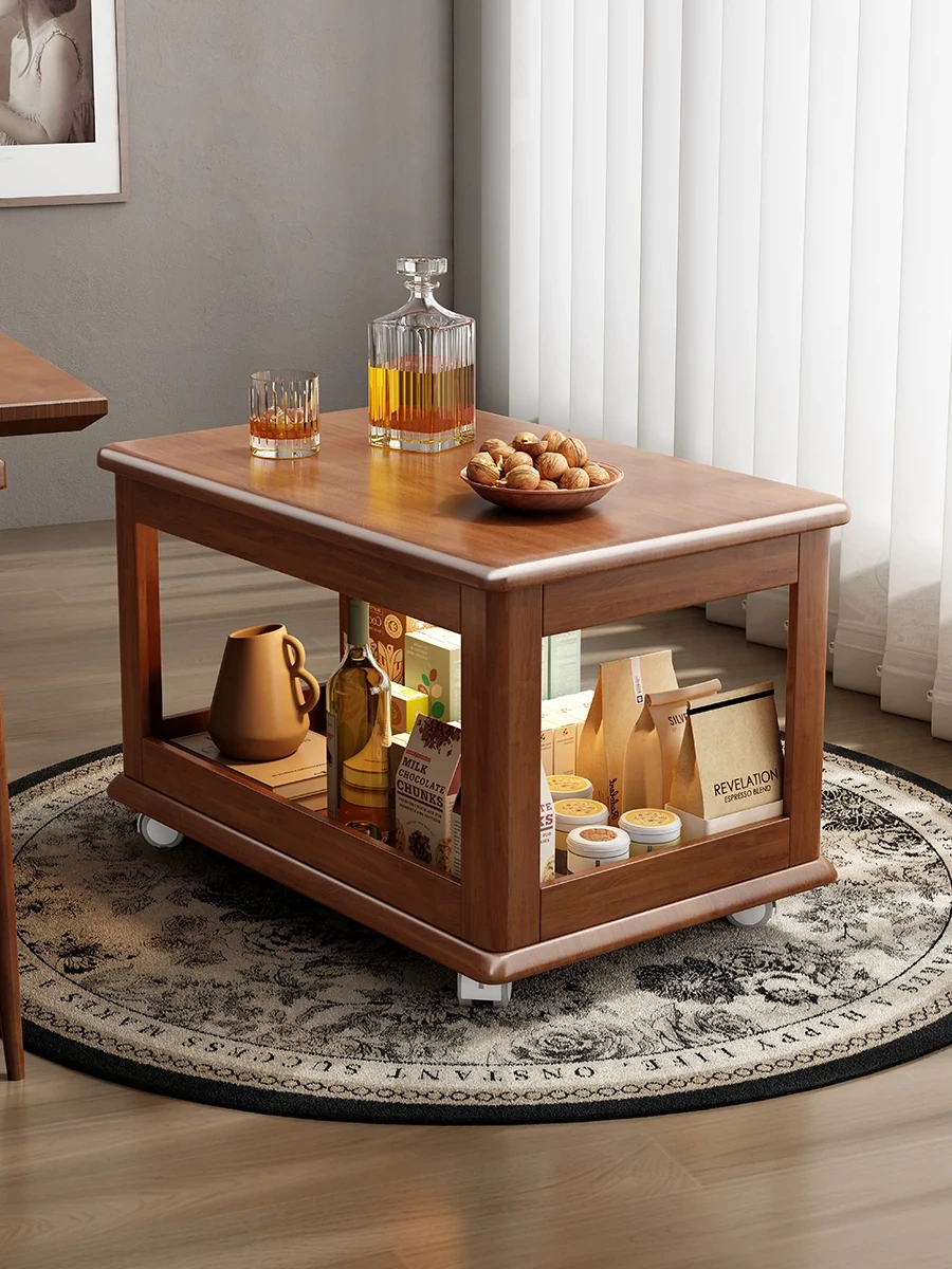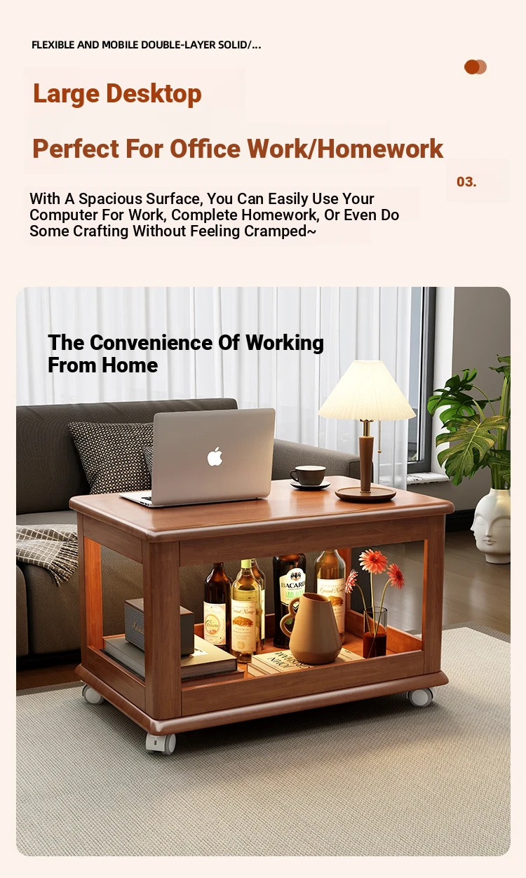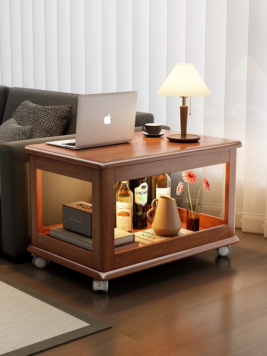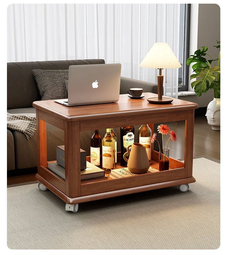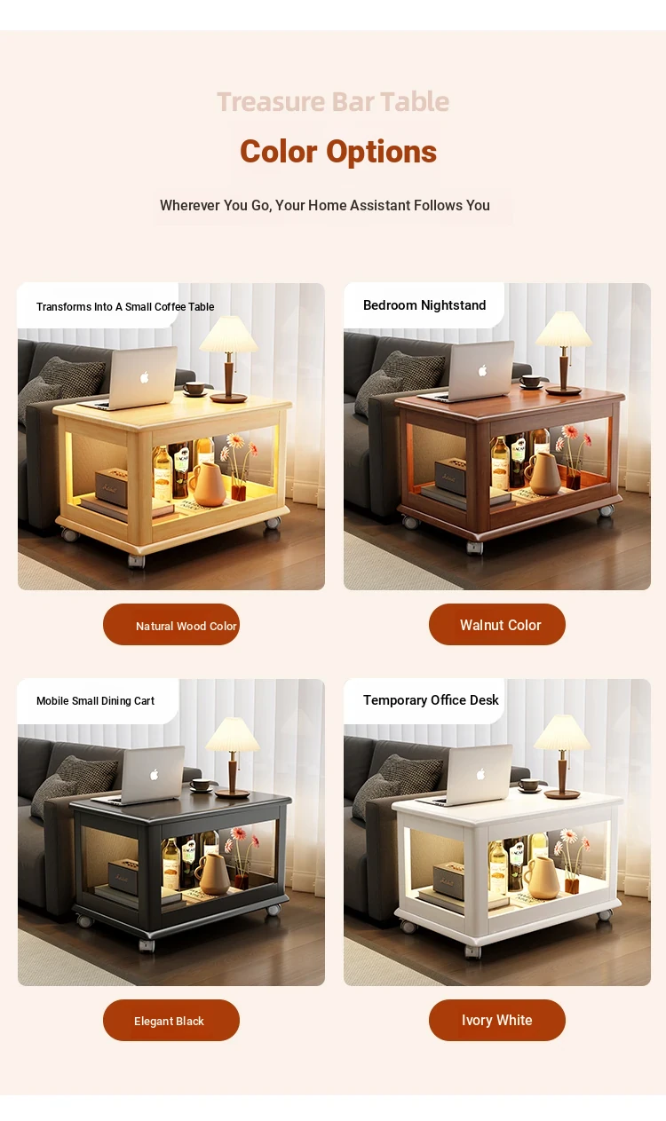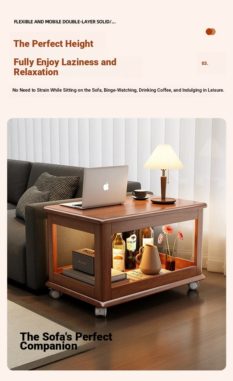 Title: Versatile Solid Wood Side Table - Mobile Snack Cart and Nightstand for Living Room, Perfect for Drinks, Snacks, or Decorative Storage, Compact Design for Any Space