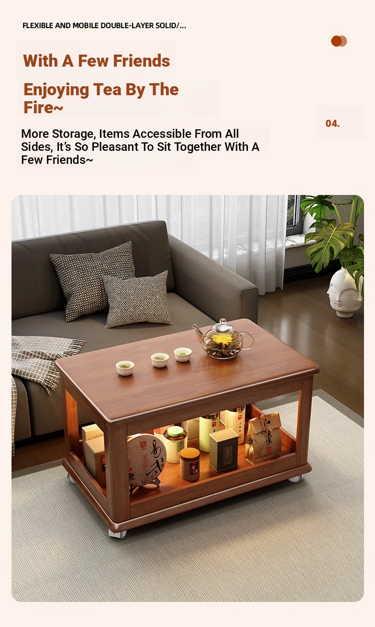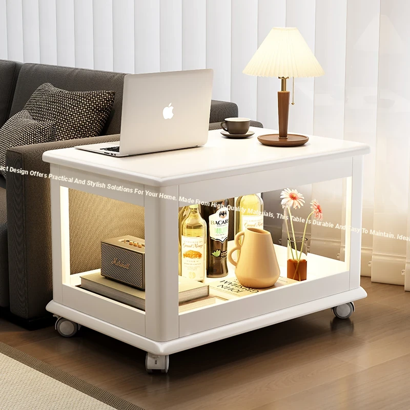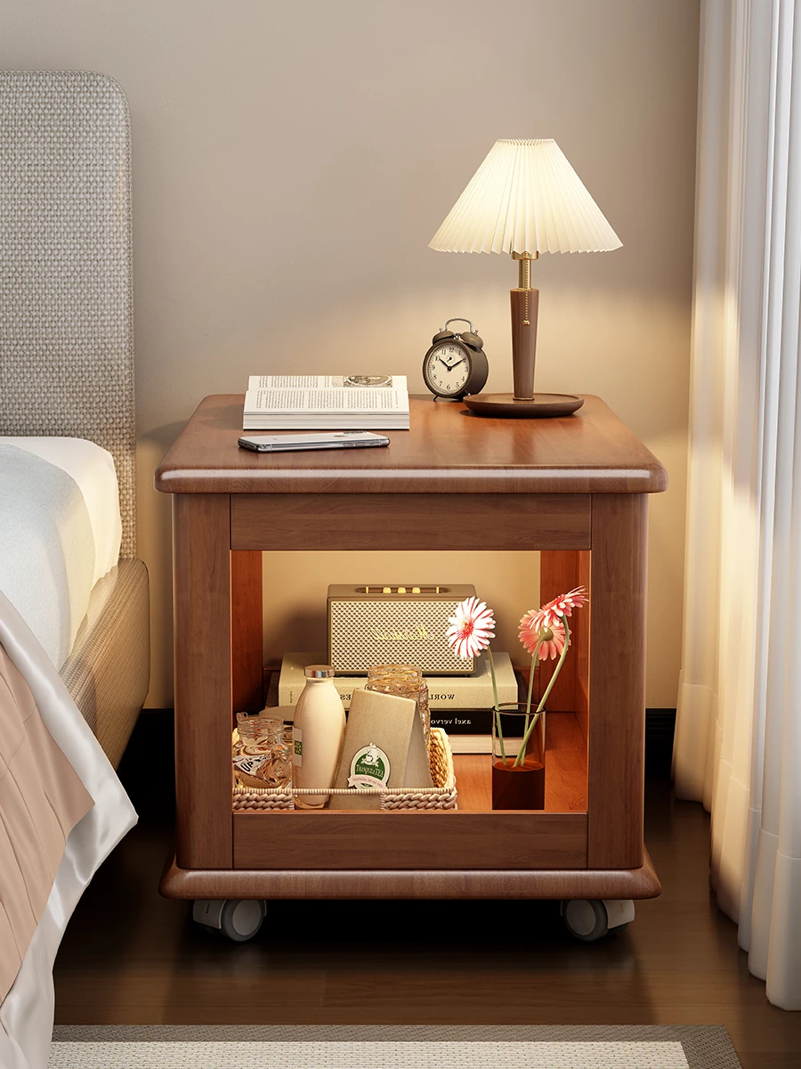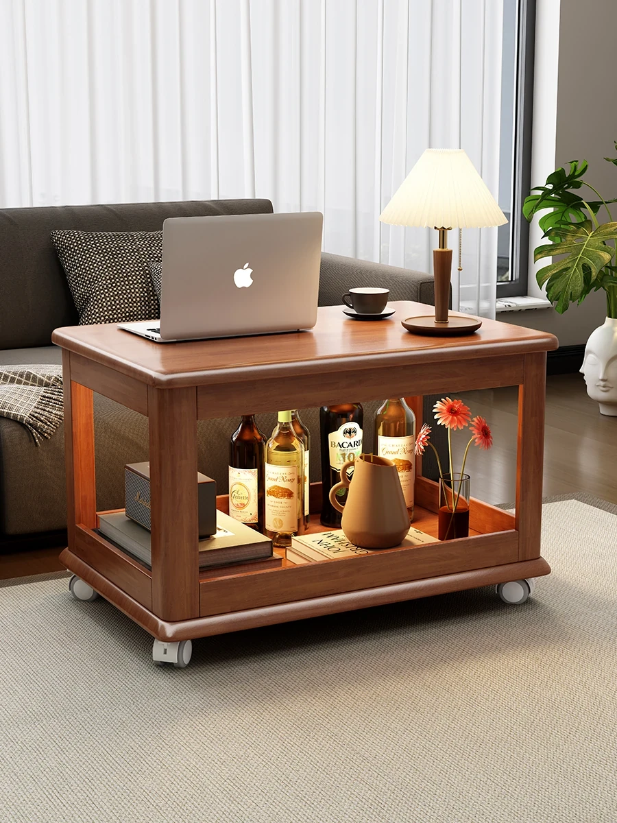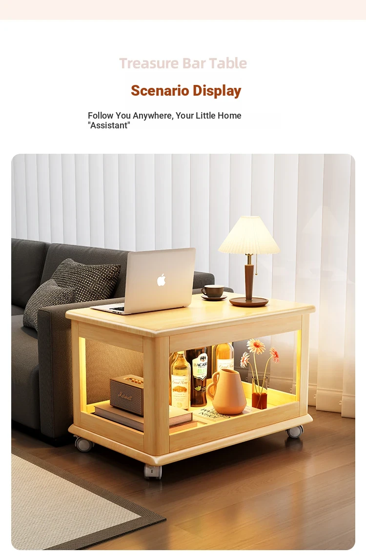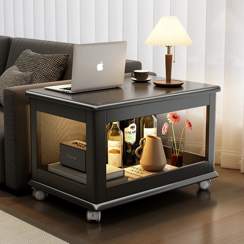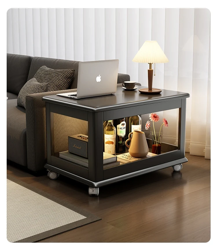 Title: Versatile Solid Wood Side Table - Mobile Snack Cart and Nightstand for Living Room, Perfect for Drinks, Snacks, or Decorative Storage, Compact Design for Any Space