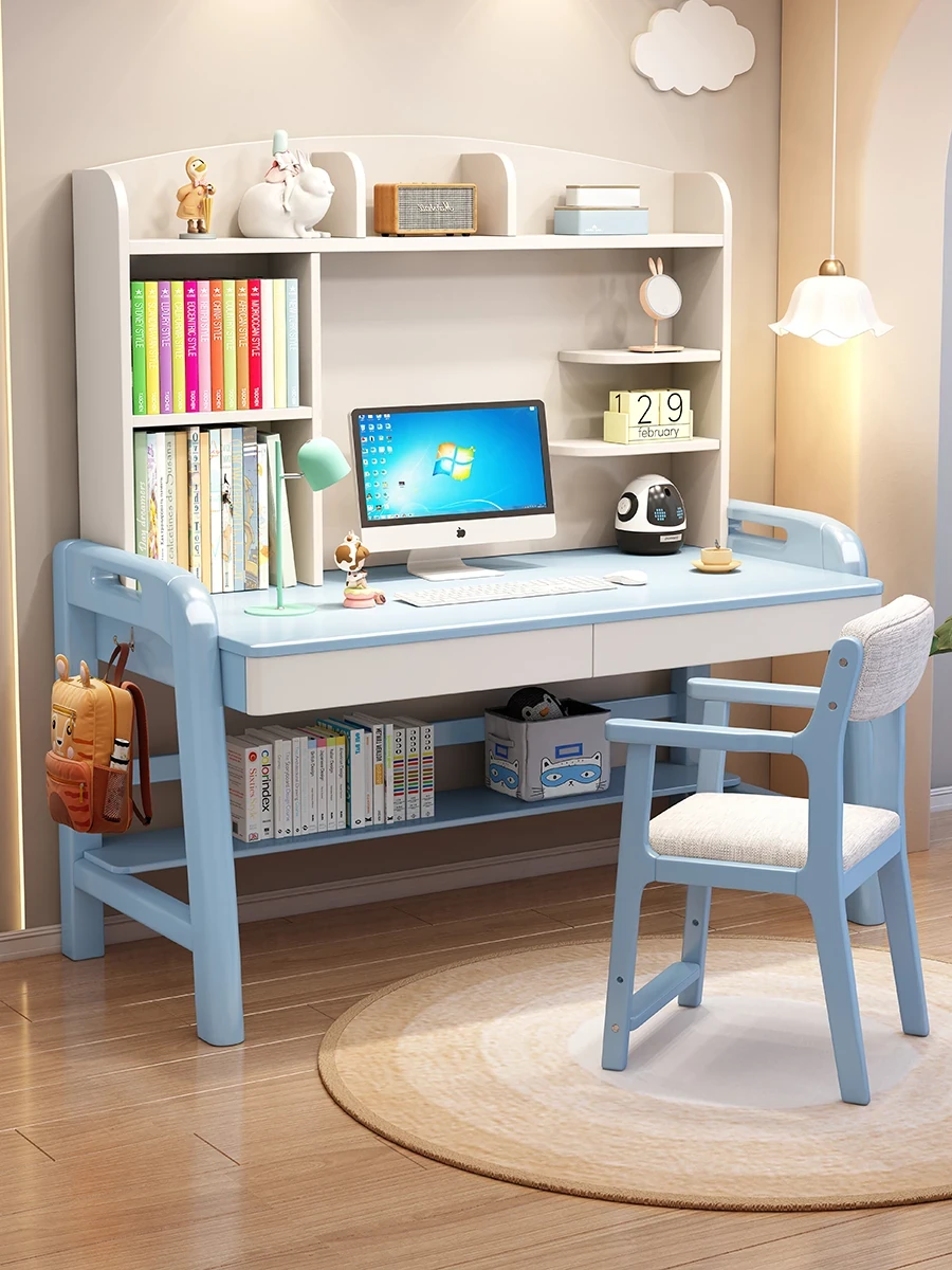 モダンでシンプルなデザイン!実木製子供用学習デスク&本棚一体型スタディテーブル - おしゃれで機能的な書斎机、学生のための理想的なPCデスク