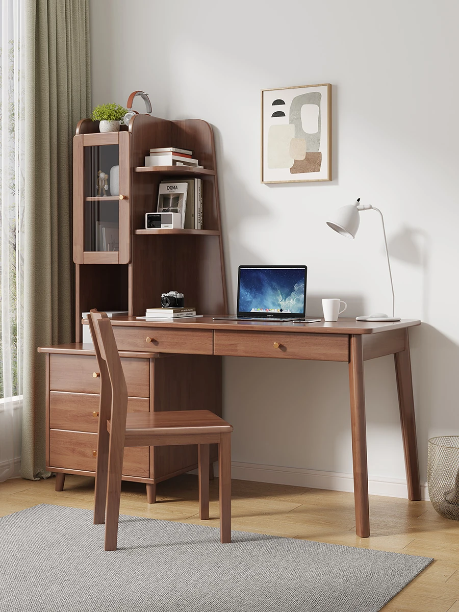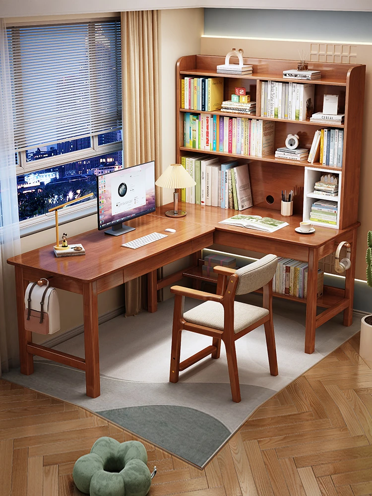 天然木材のシンプルなデザイン!子供の学習に最適な多機能デスクセット:書棚・パソコンデスク一体型、コーナー配置可能なスタイリッシュホームオフィスデスク